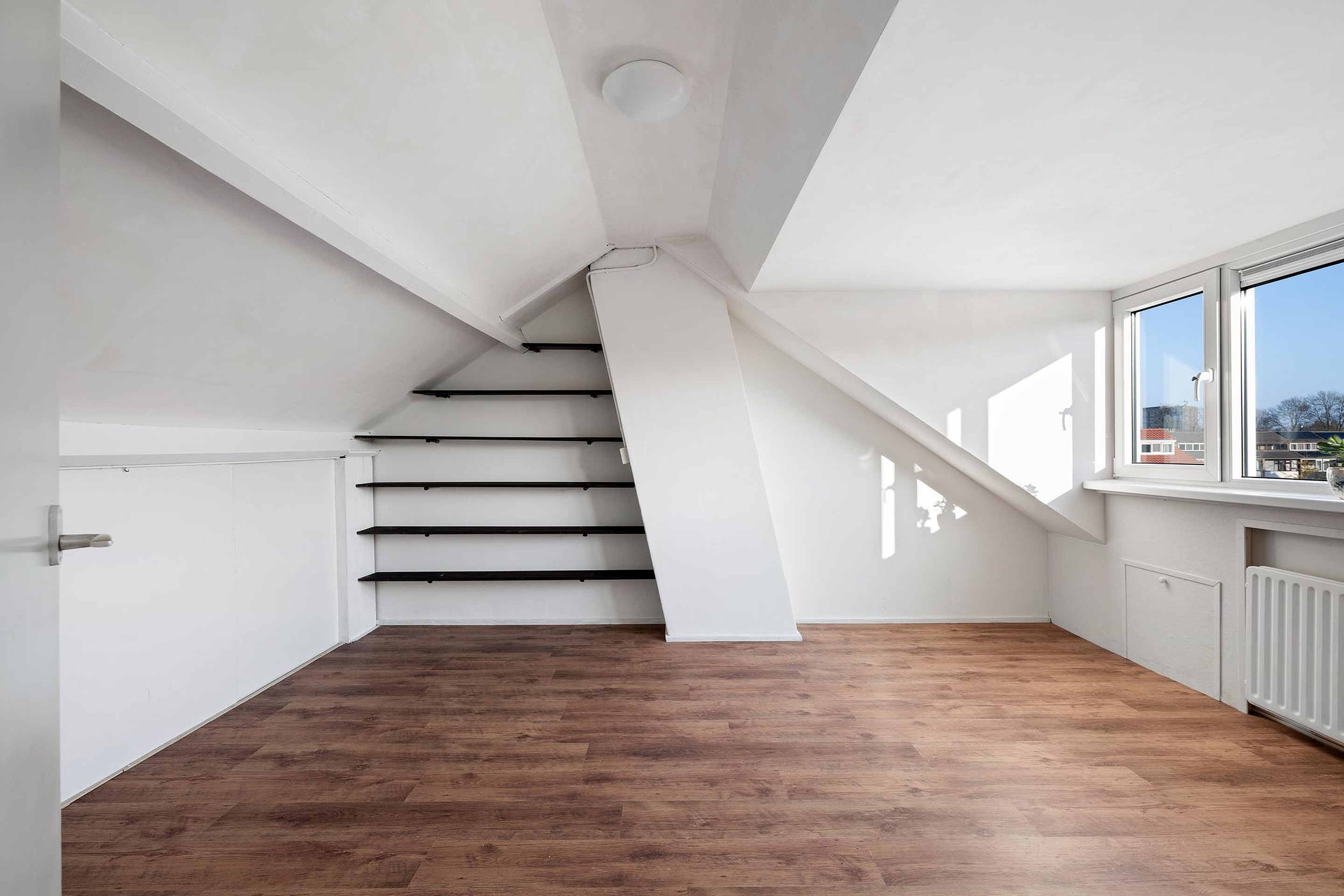 Gezellige zolderkamer. Bergruimte onder het 'schuine dak'.