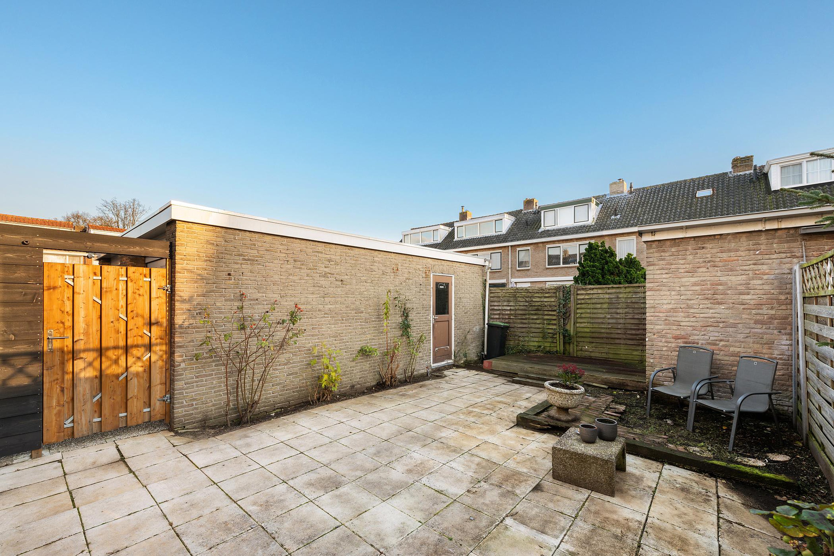 Tuin De achtertuin is betegeld en heeft een gunstige zonligging.