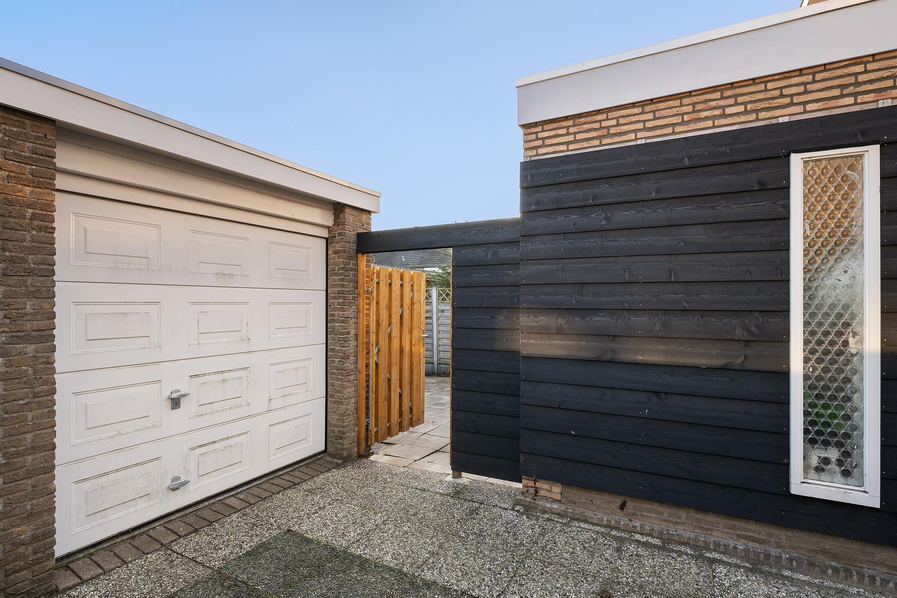 Vanuit de tuin is de garage via een 'gewone deur' te bereiken.