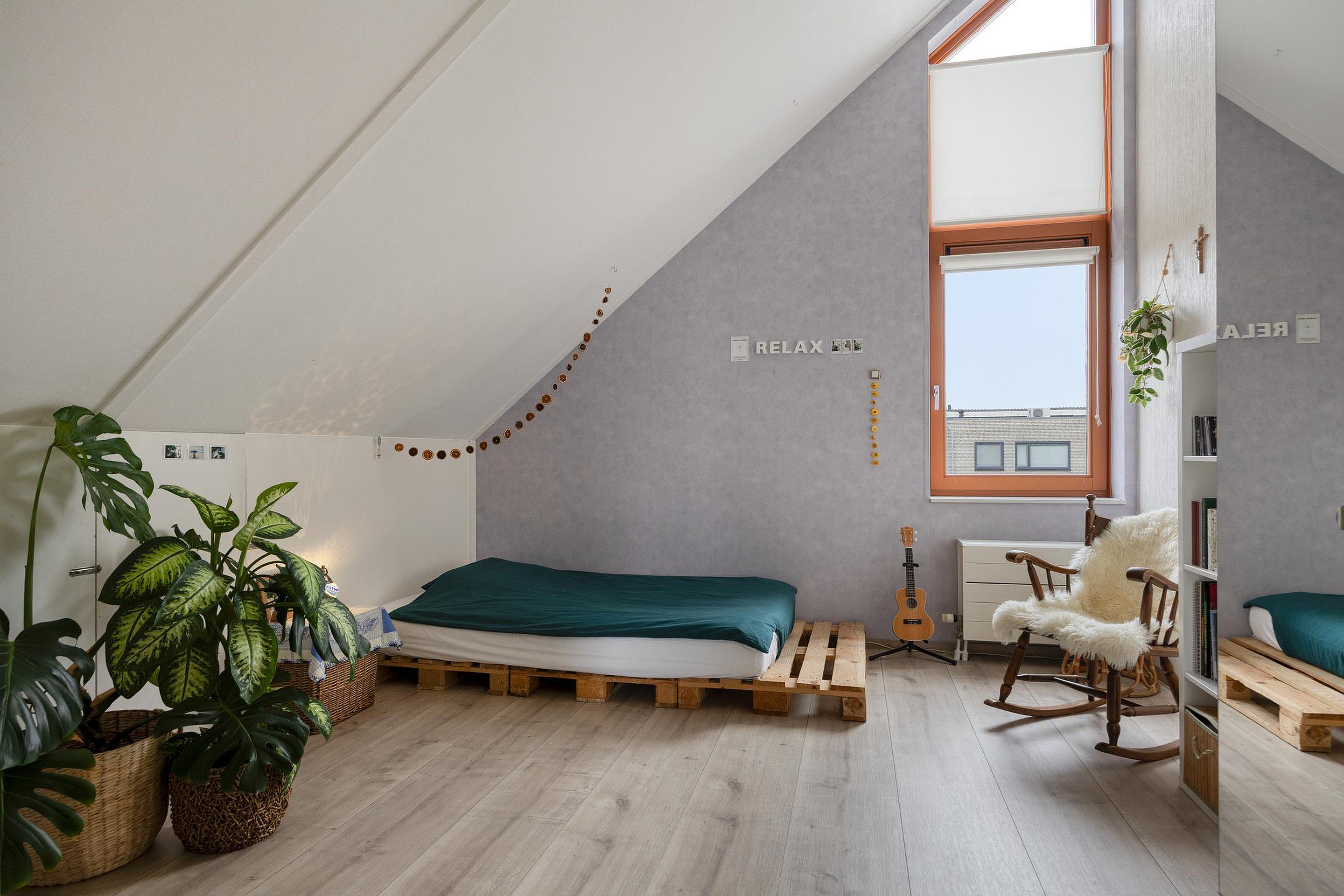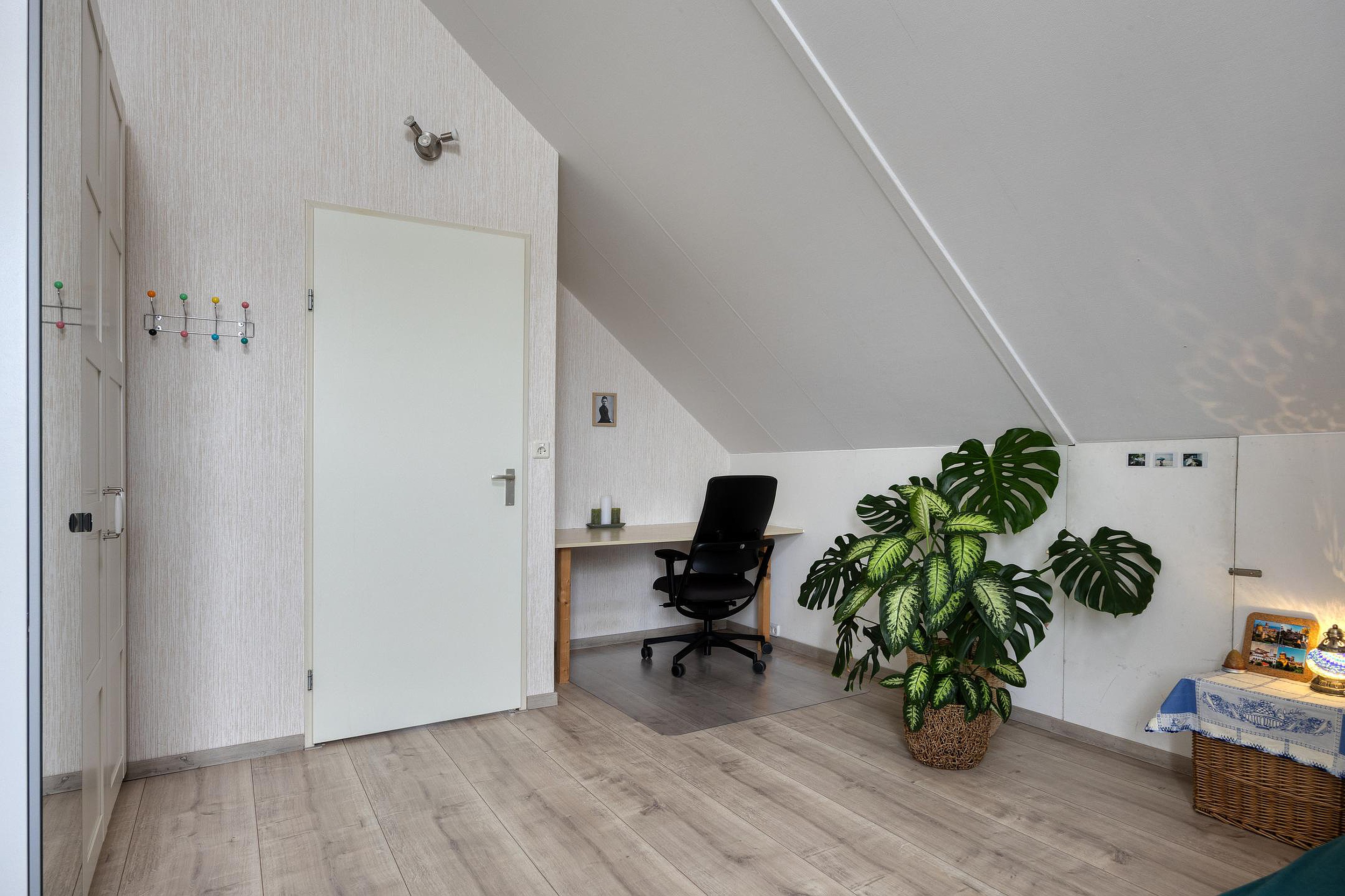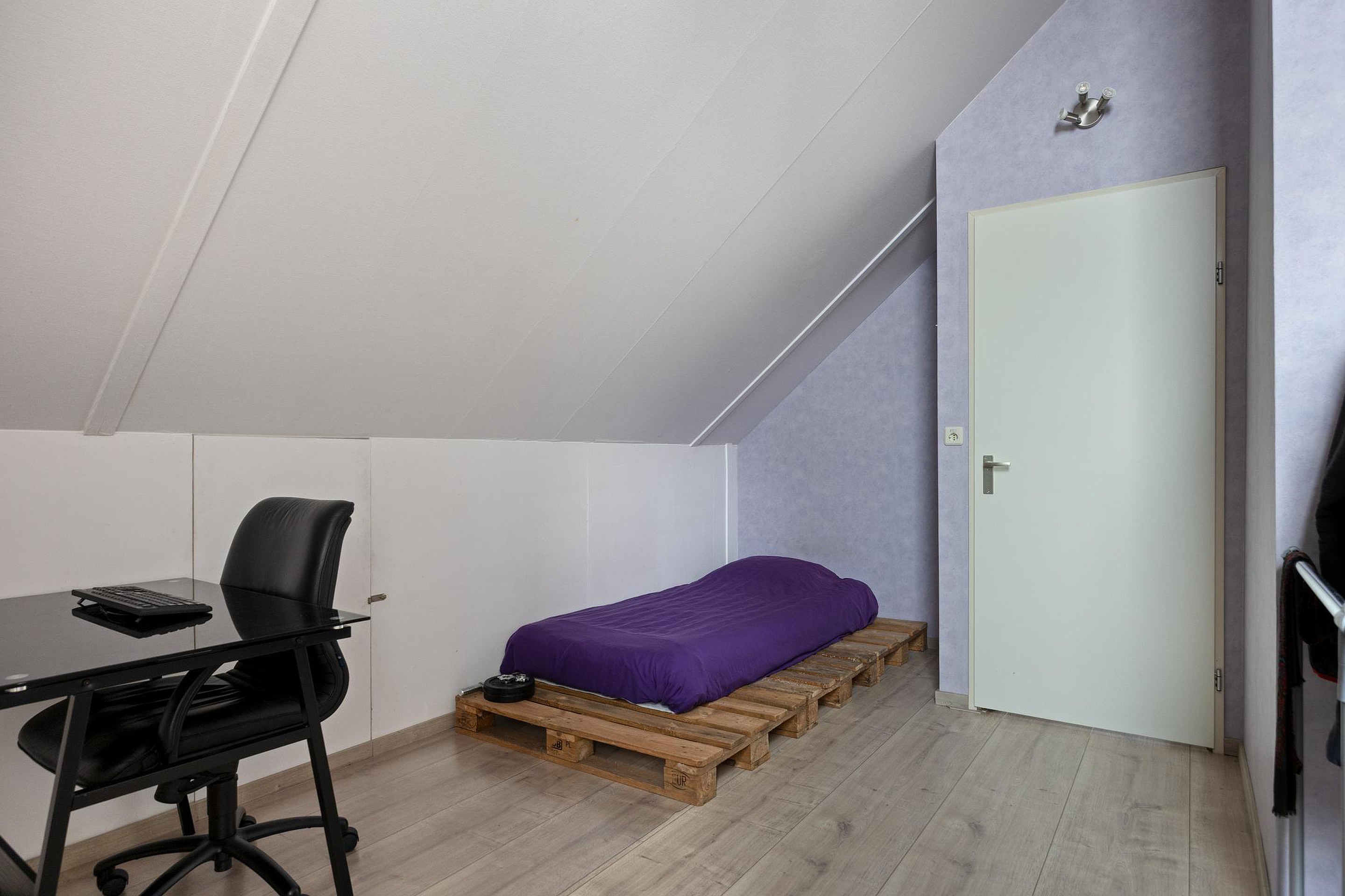 Slaapkamer 5, gelegen aan de voorzijde en voorzien van bergruimte achter de knieschotten en een vaste kast met opstelling cv-ketel.