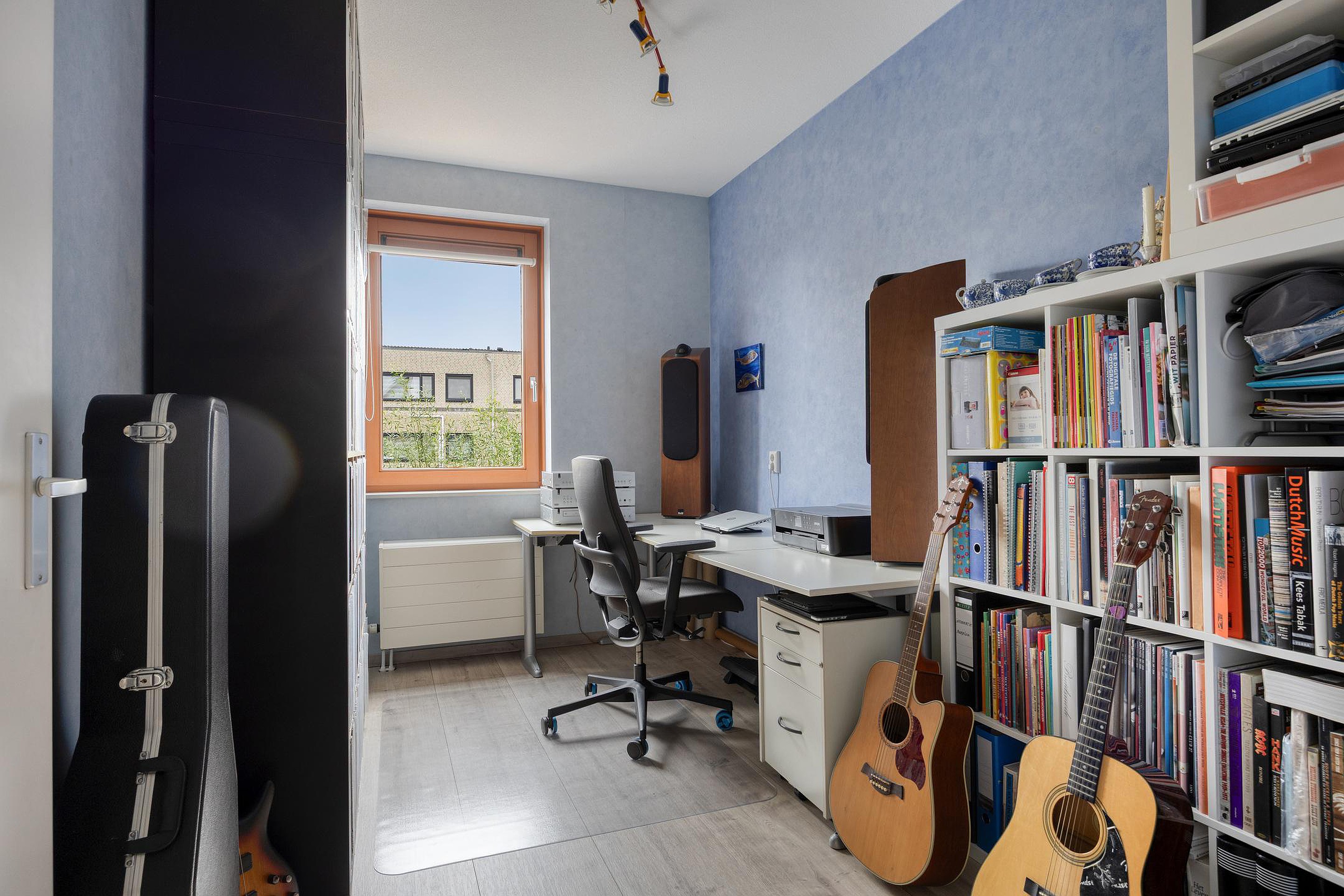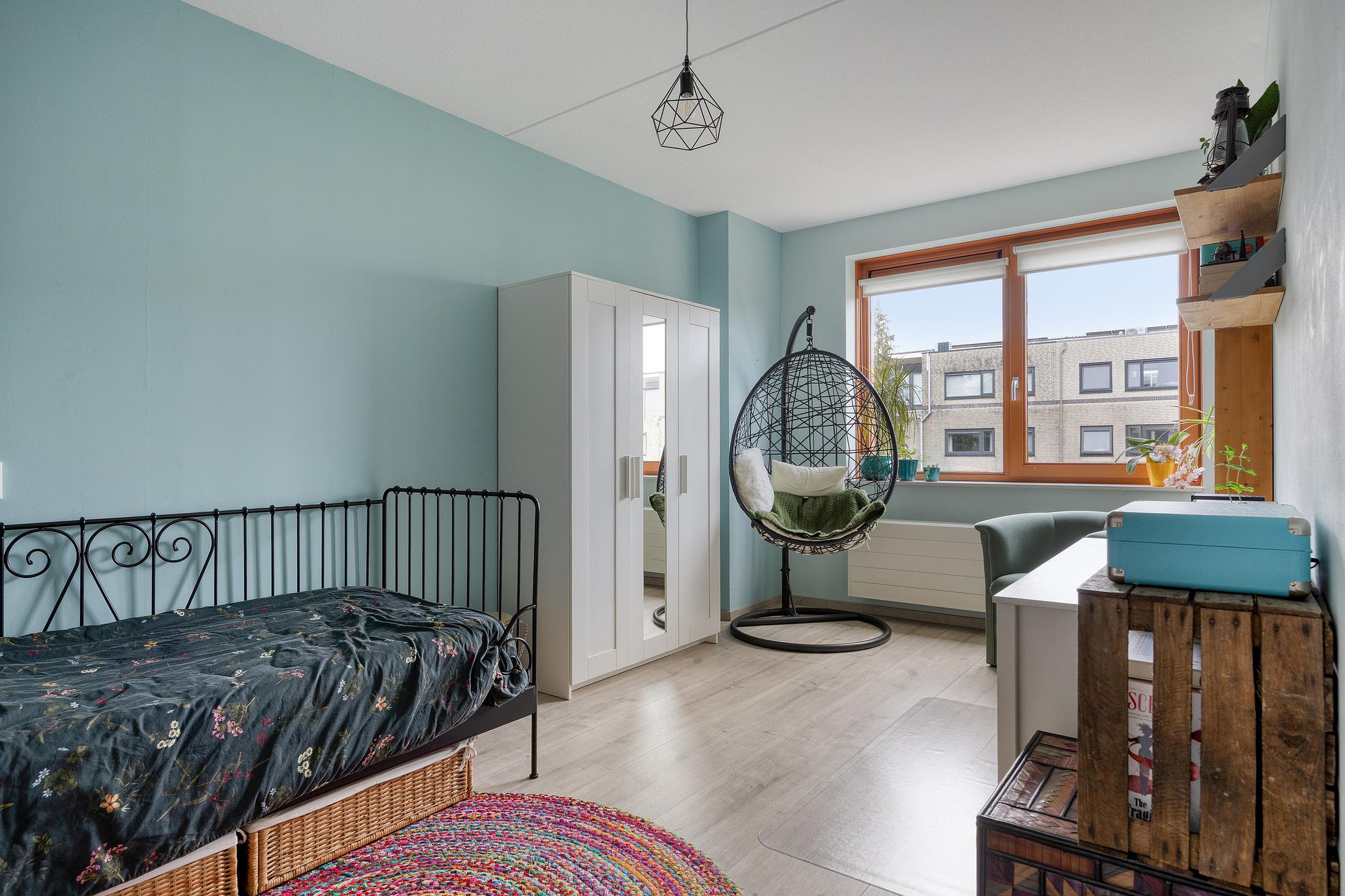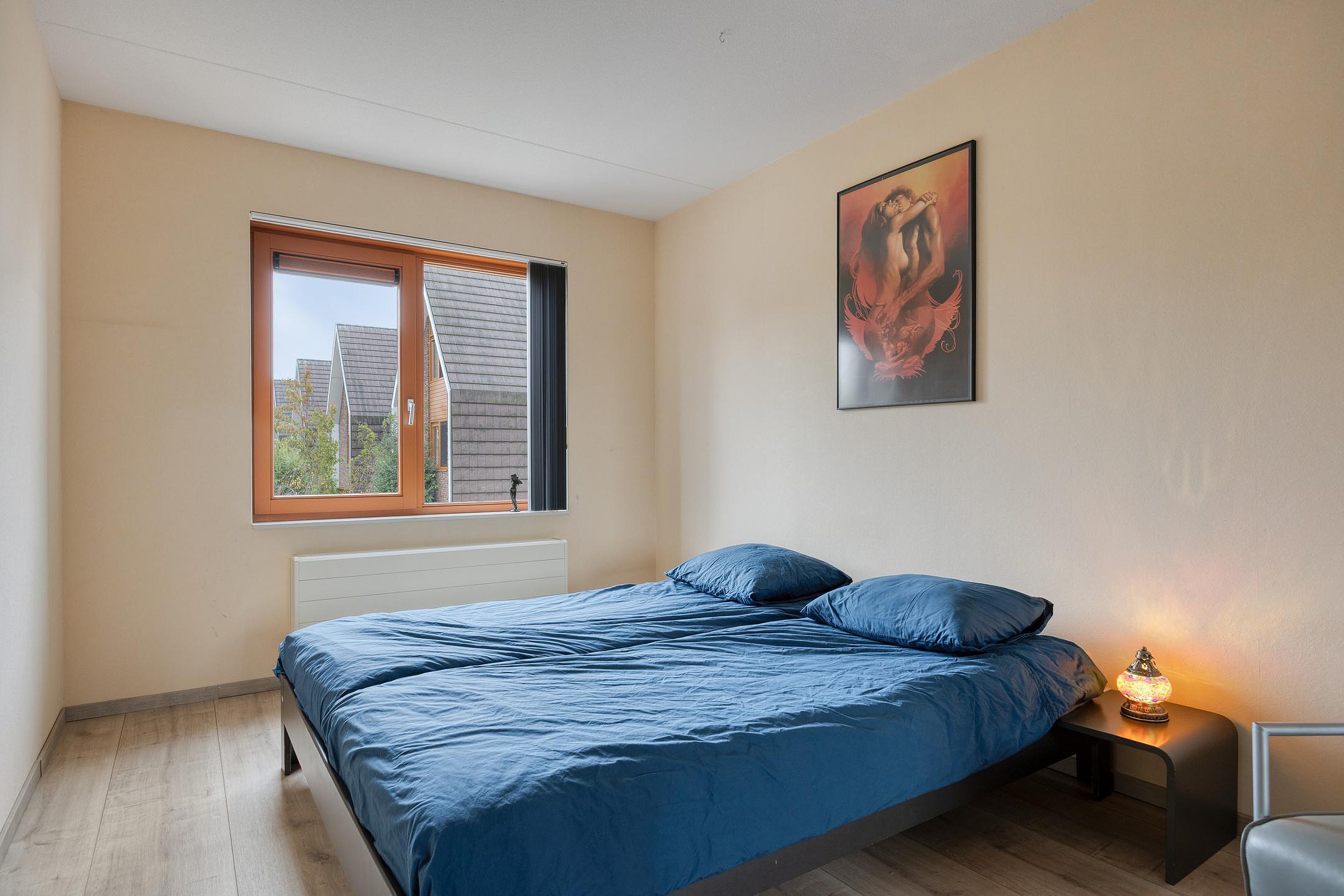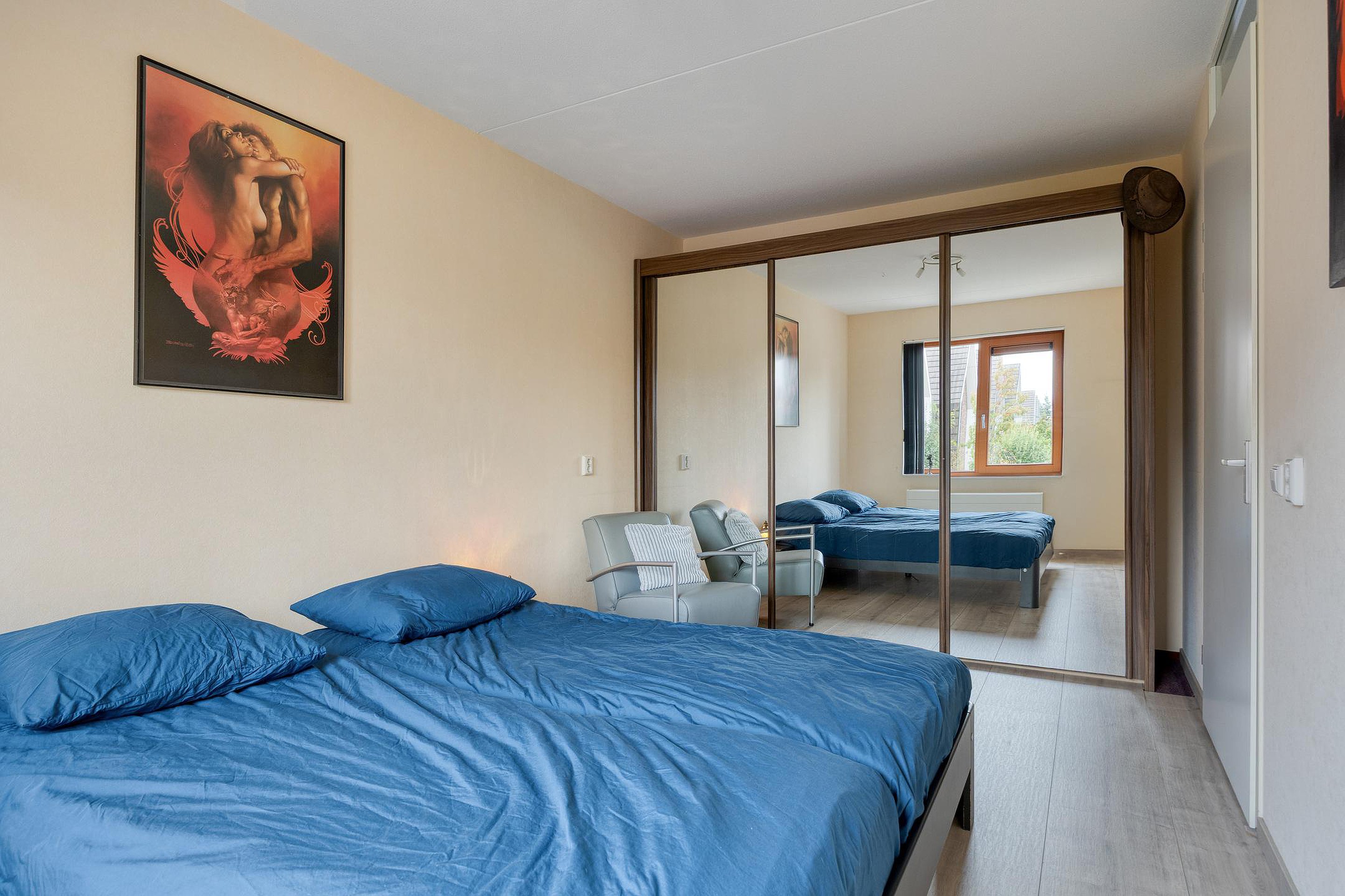 Slaapkamer 5, gelegen aan de voorzijde en voorzien van bergruimte achter de knieschotten en een vaste kast met opstelling cv-ketel.