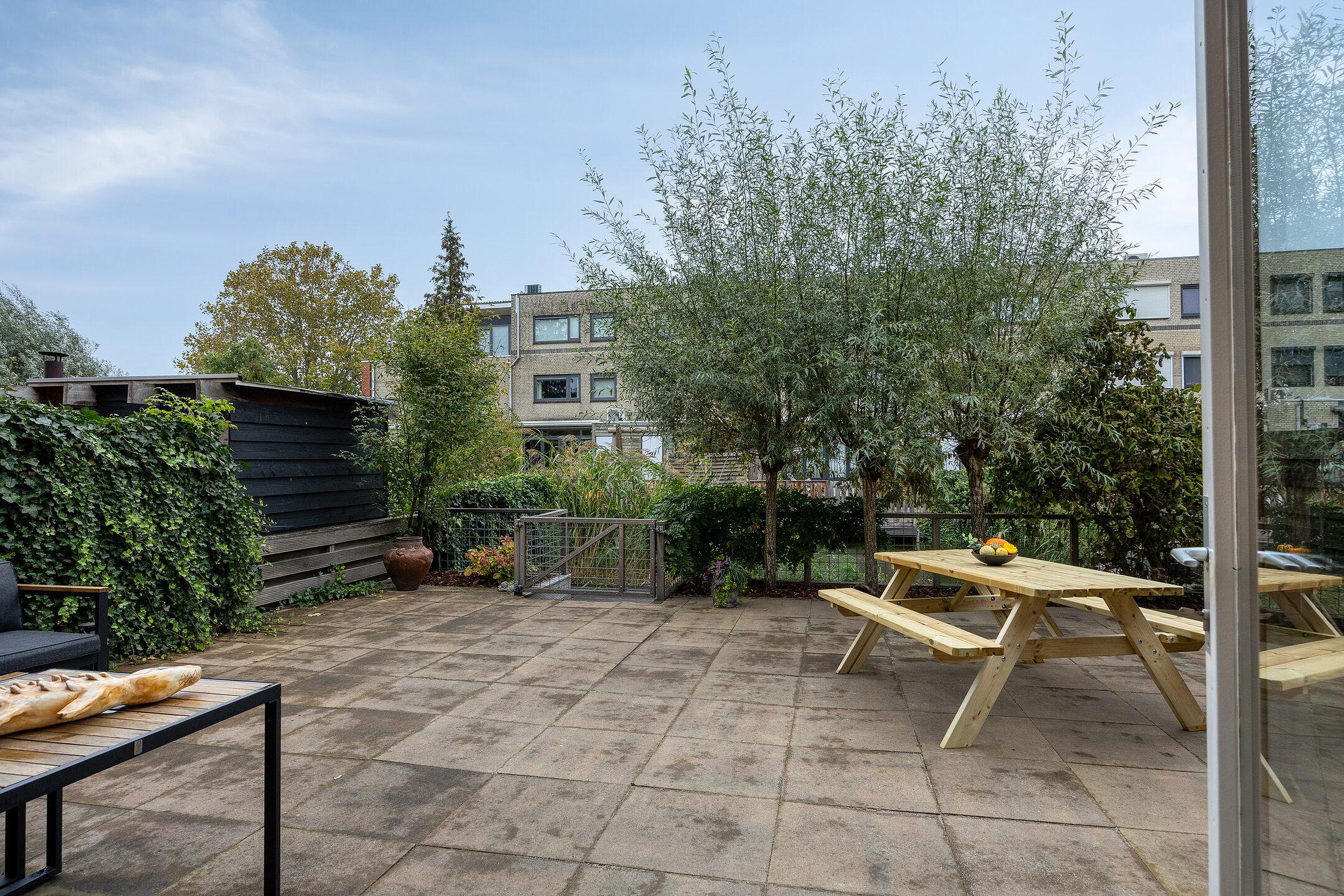 Achtertuin (ca. 10.60 x 8.90), een heerlijk ruime tuin, gelegen aan een singel en voorzien van een houten vlonder grenzend aan de singel, sierbestrating, houten tuinberging en een buitenkraan.