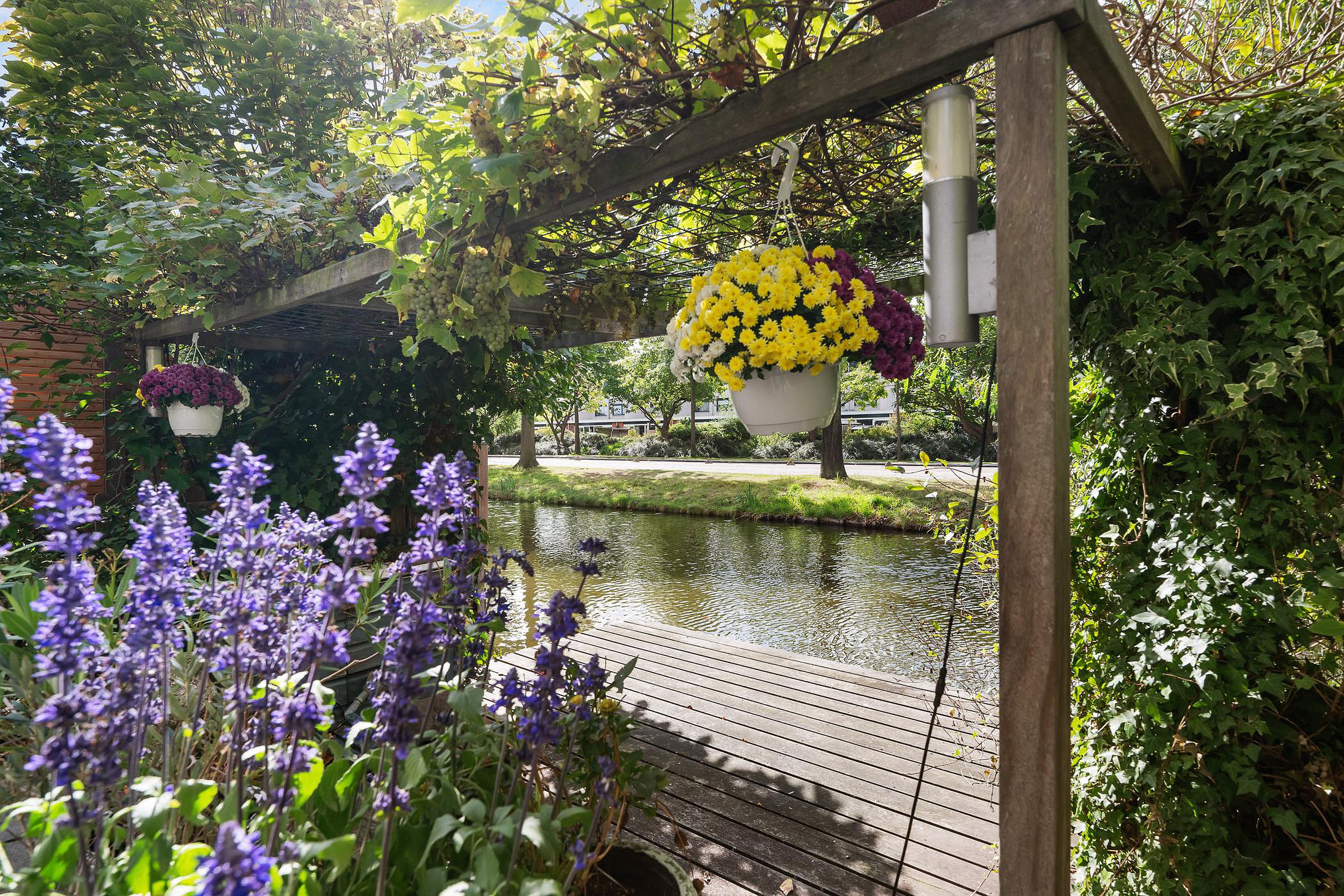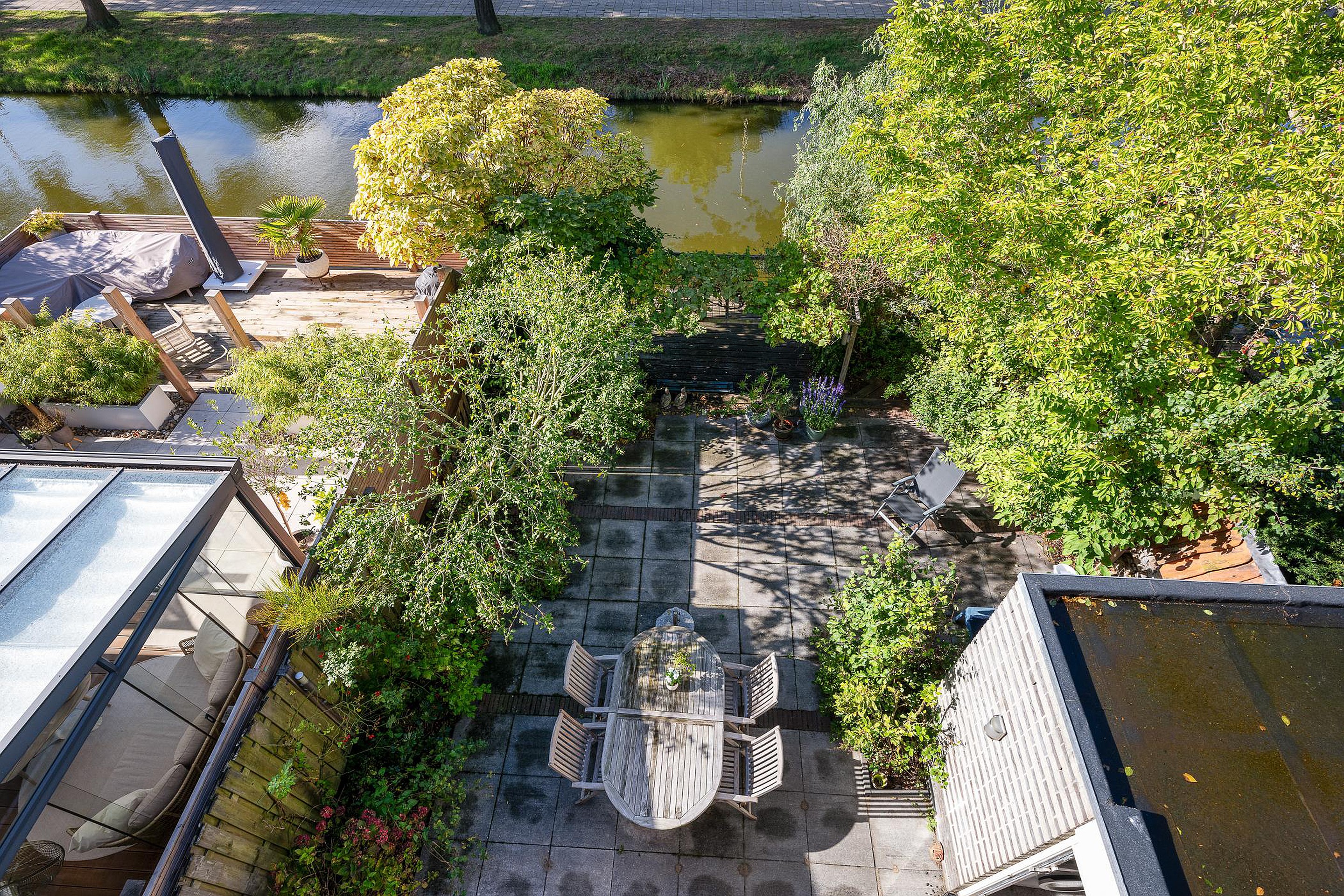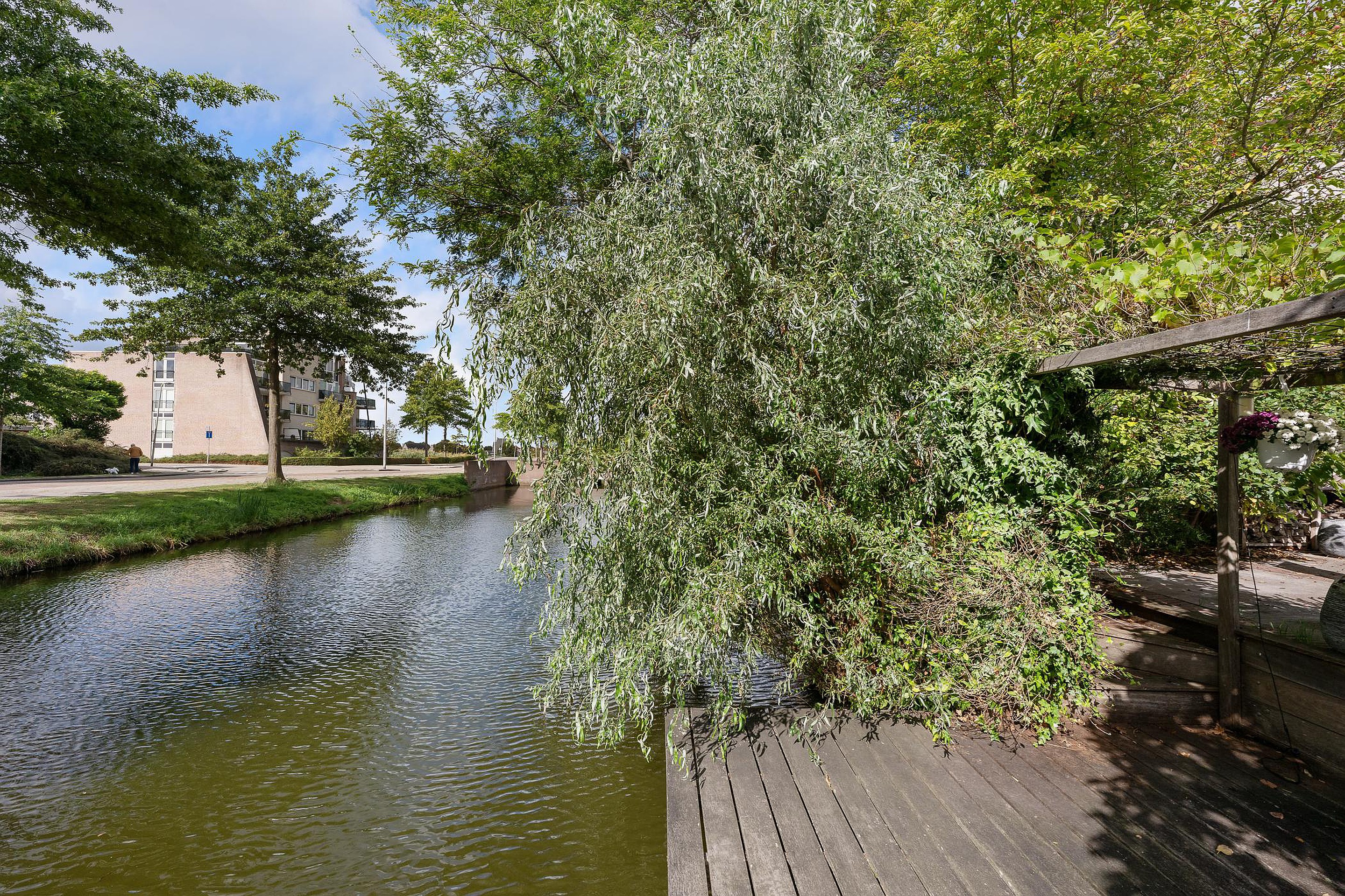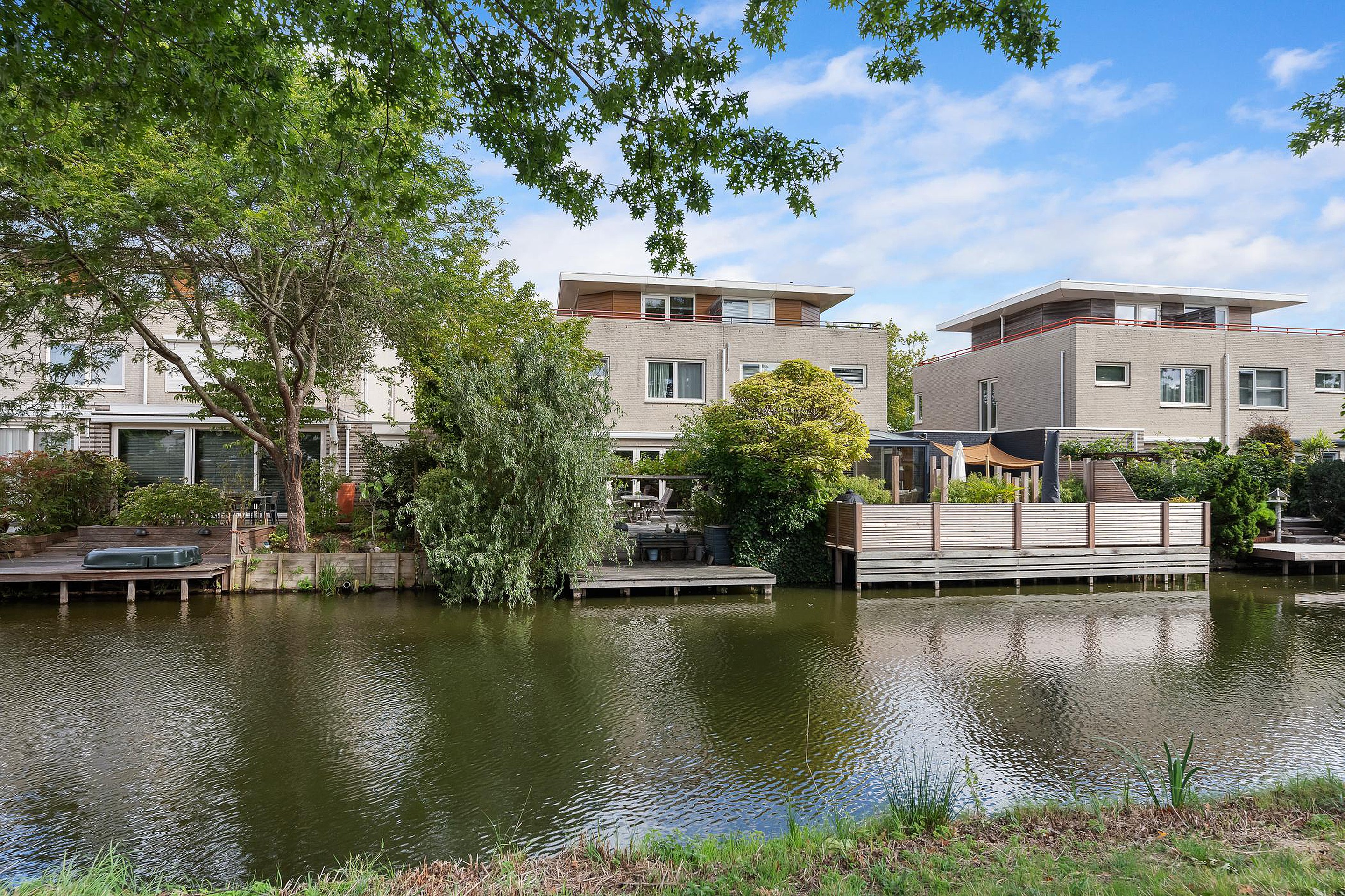 Tuin In de fraai aangelegde achtertuin op het zuidwesten geniet u de hele middag en avond van de zon. Het terras aan het water nodigt uit tot lange zomeravonden, terwijl het elektrische zonnescherm zorgt voor comfort op warme dagen. Vanuit de tuin is er toegang tot de garage.