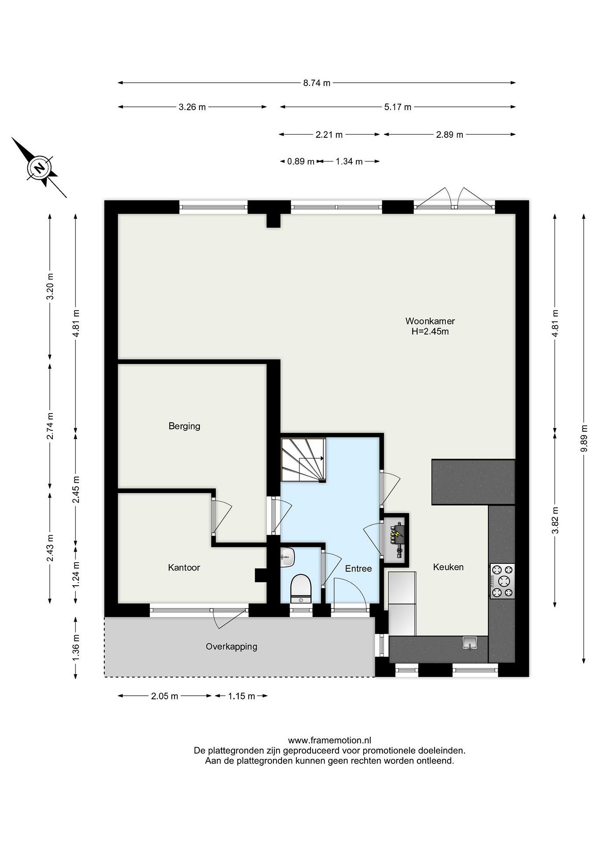 Afmeting van woonkamer en keuken samen is circa 50m2.