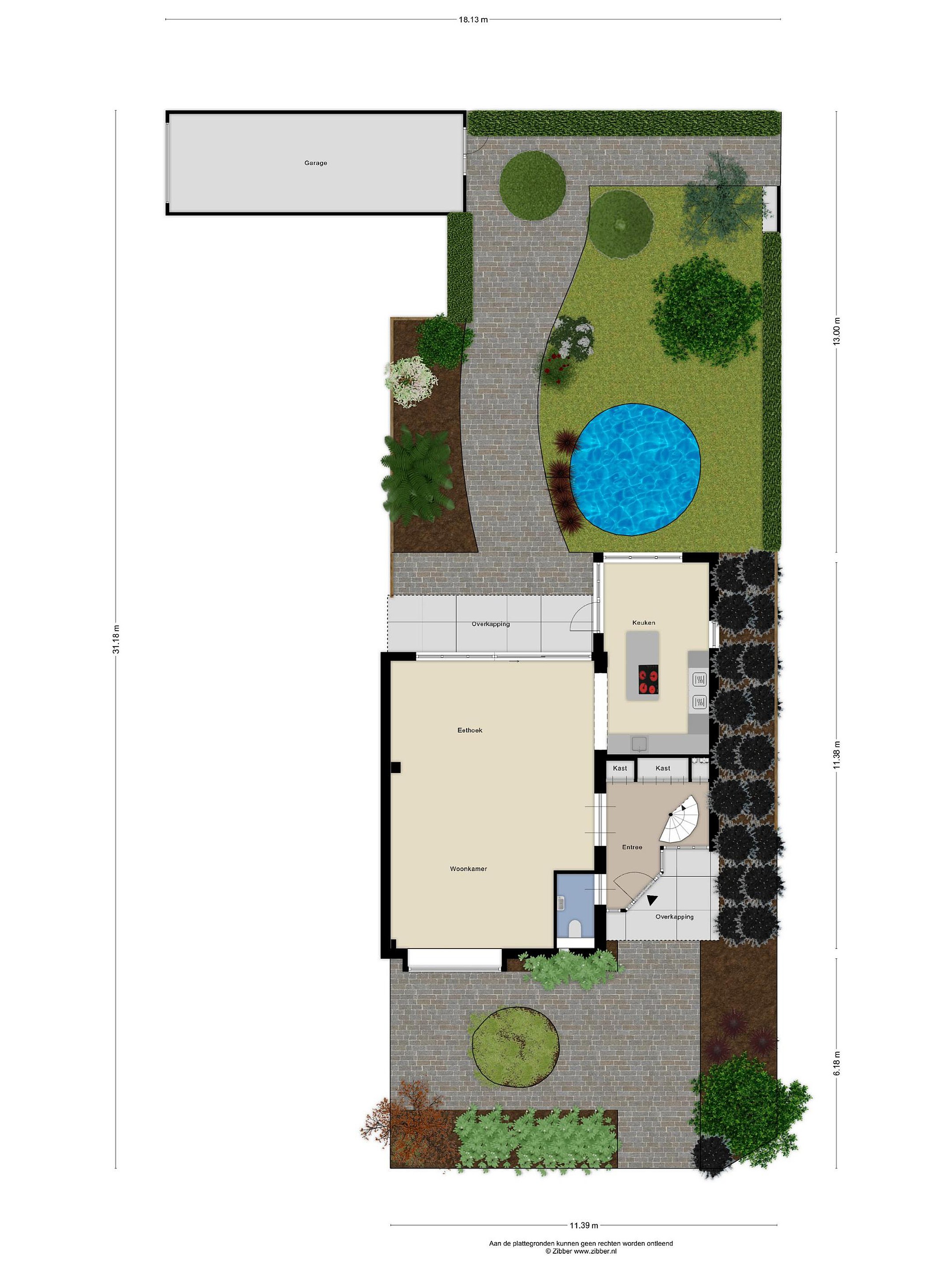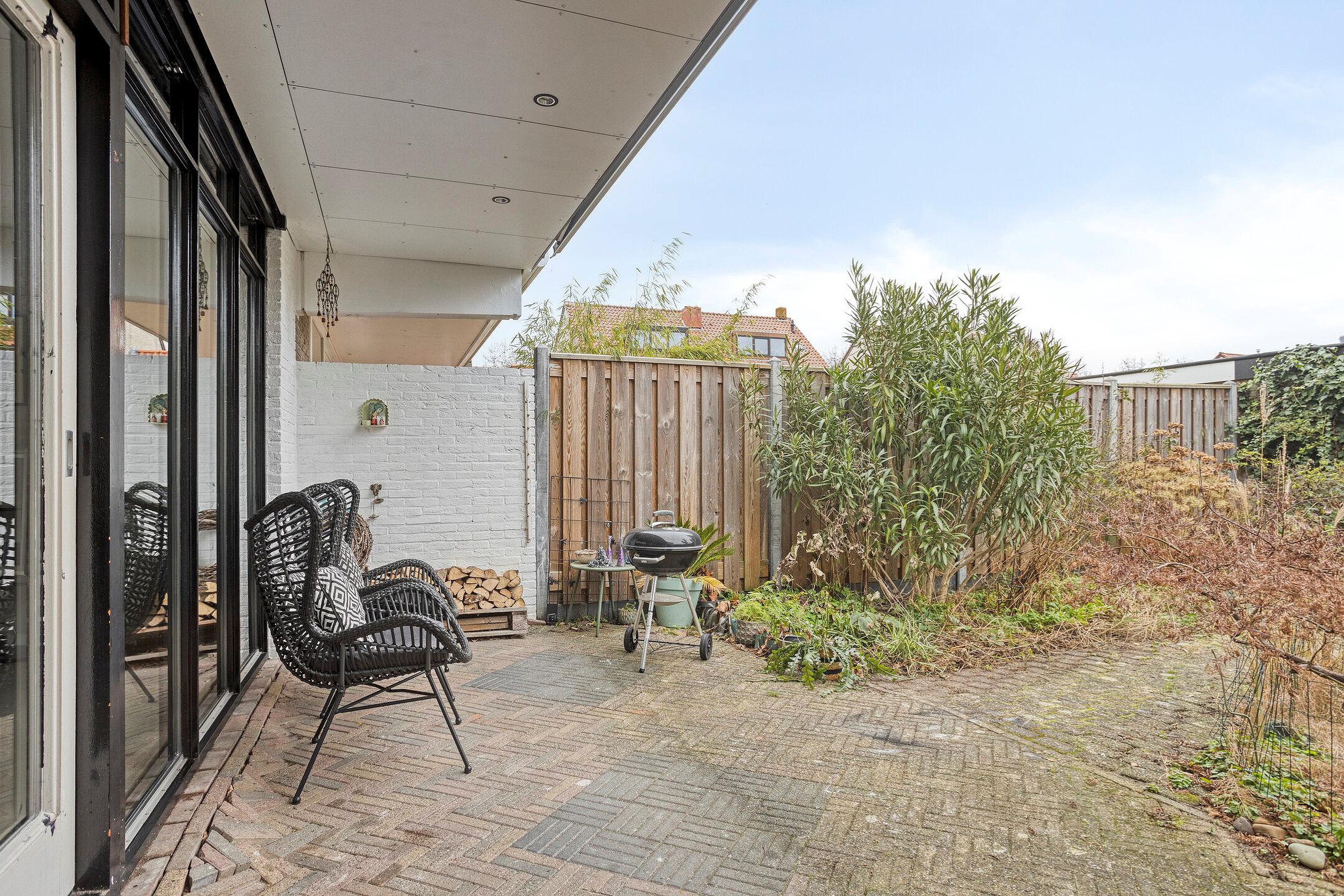 Buiten kun je genieten van een heerlijke tuin met vrijheid en privacy. De tuin is 13 meter lang en 11 meter breed een heeft een goede zonligging op het zuidoosten. Vanuit de achtertuin is de garage (ca. 8.67 x 2.90m) bereikbaar.