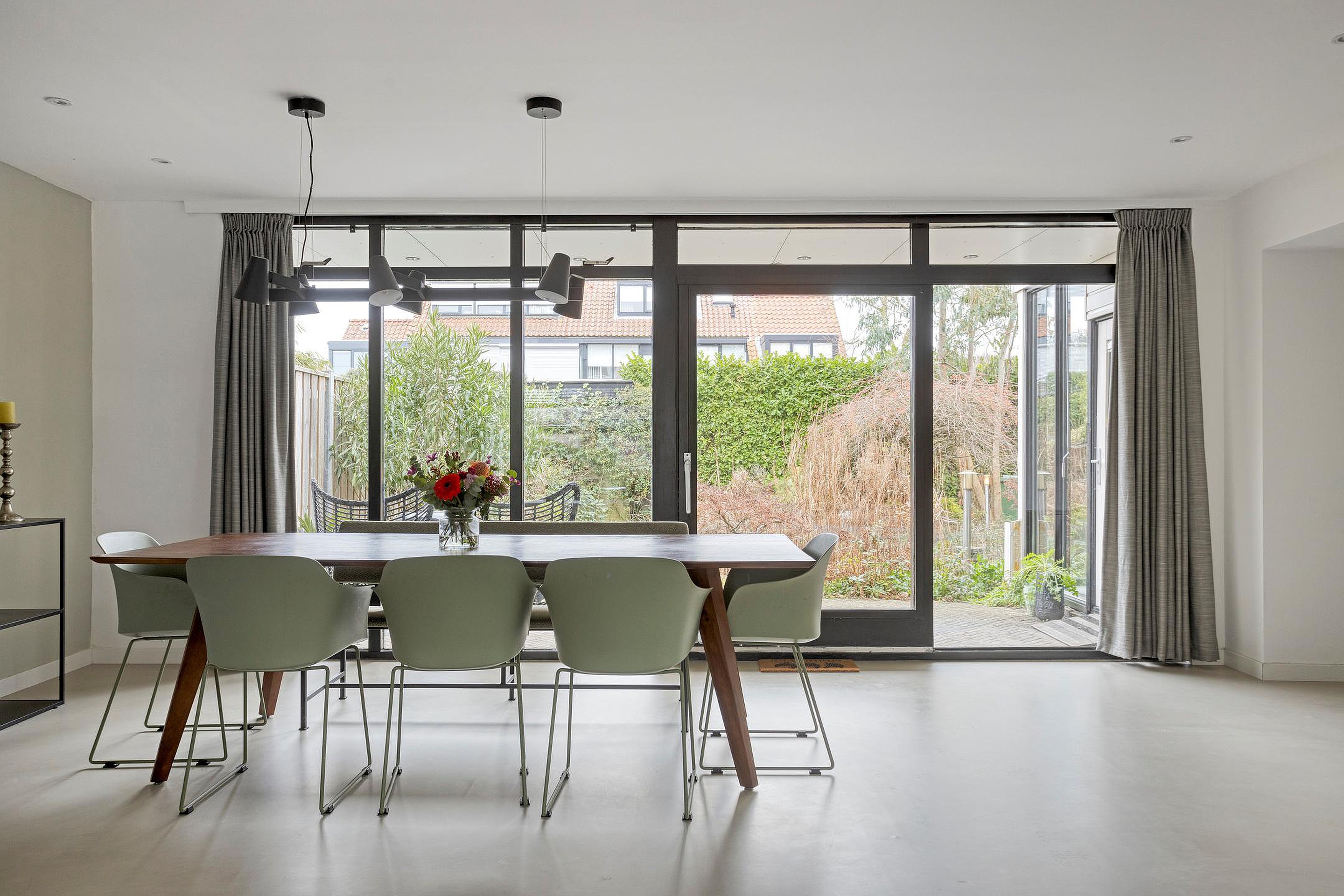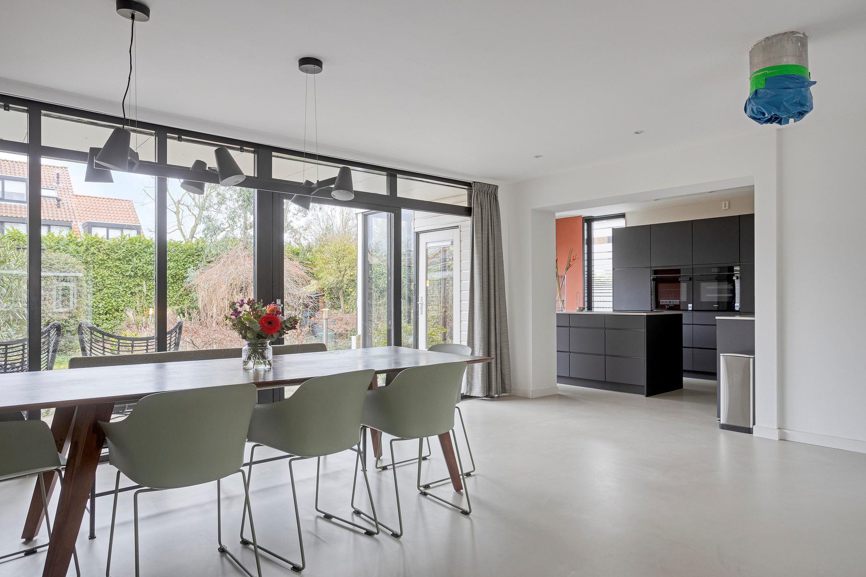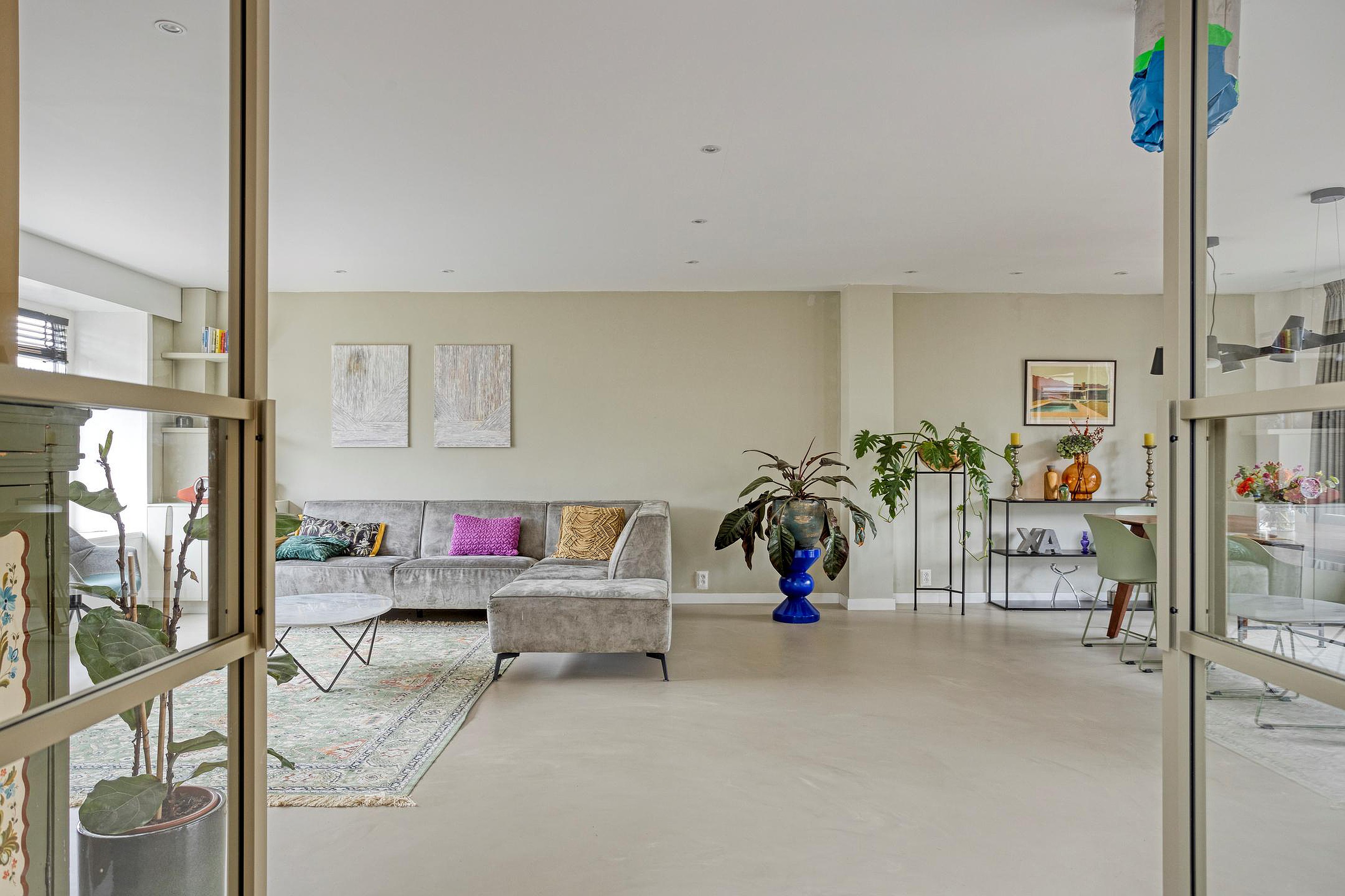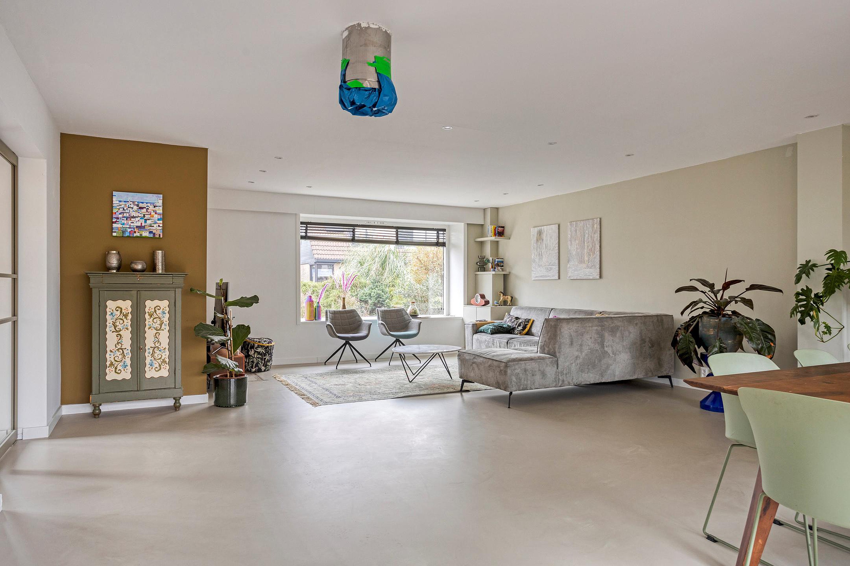 De hele begane grond is afgewerkt met een naadloze gietvloer met vloerverwarming.