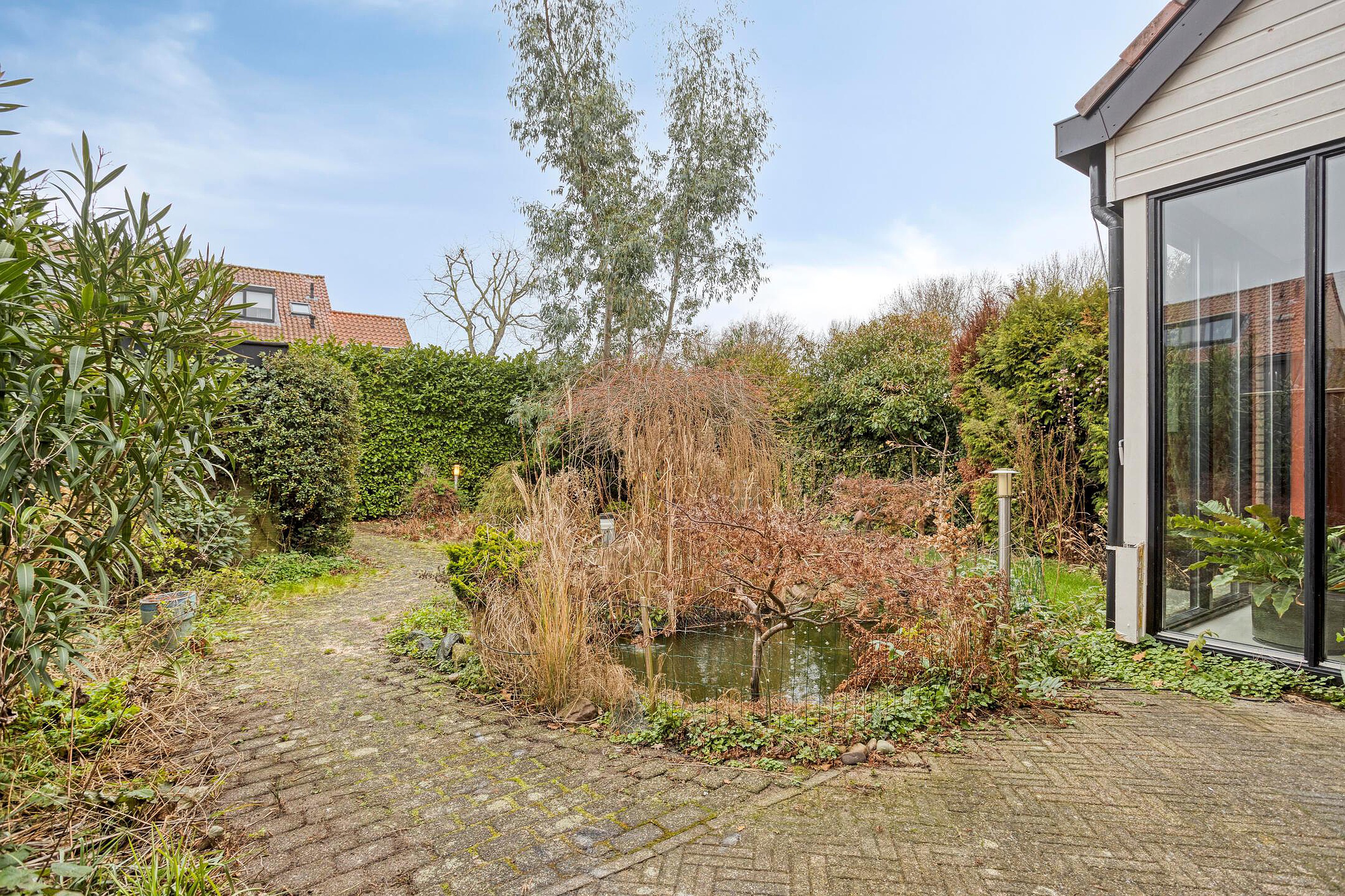 De brede en lange achtertuin zal ook zeker aan je woonplezier bijdragen. De tuin is ingericht met gevarieerde planten, struiken, gezellige klinkerpaadjes en een vijver.
