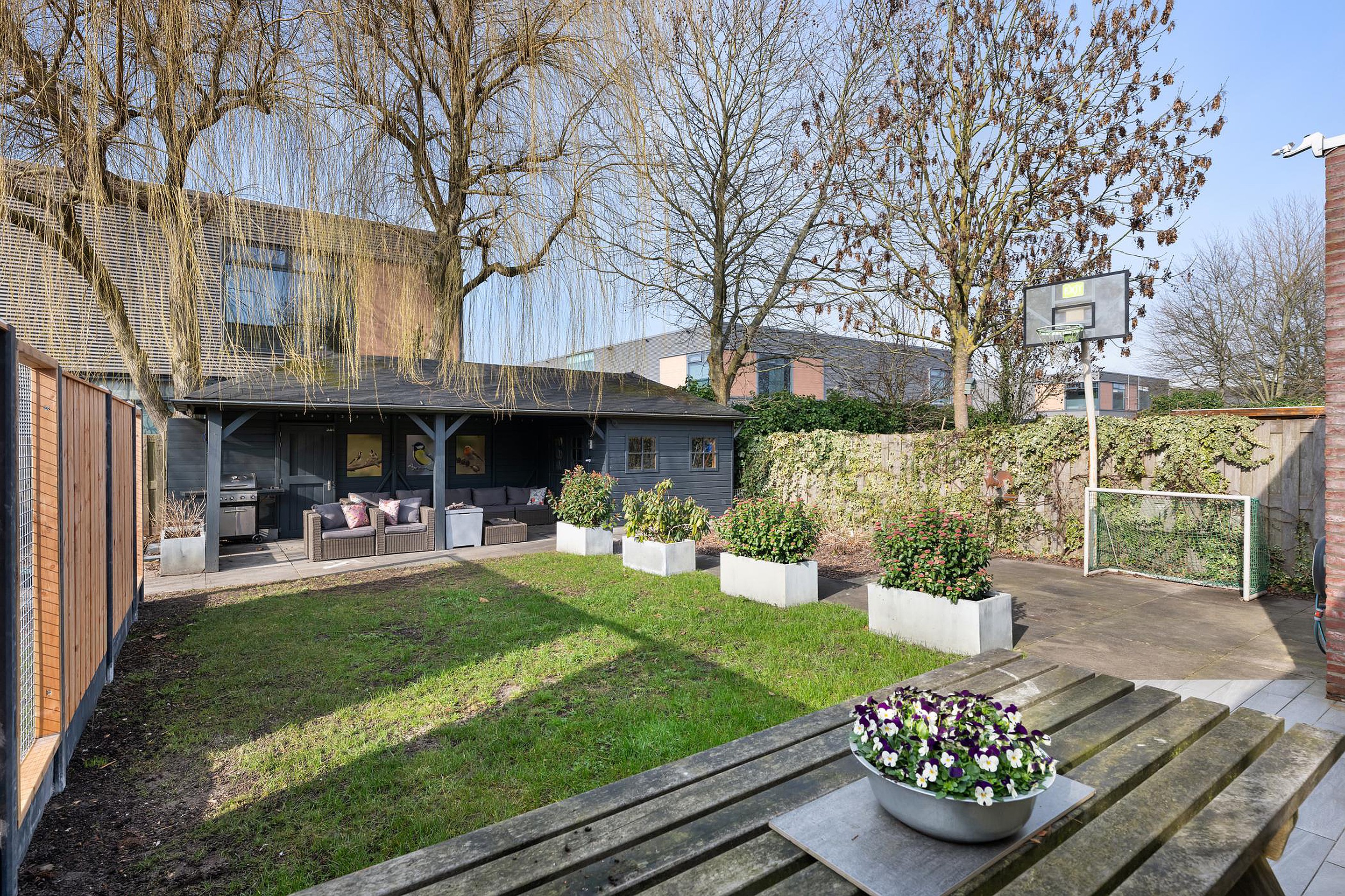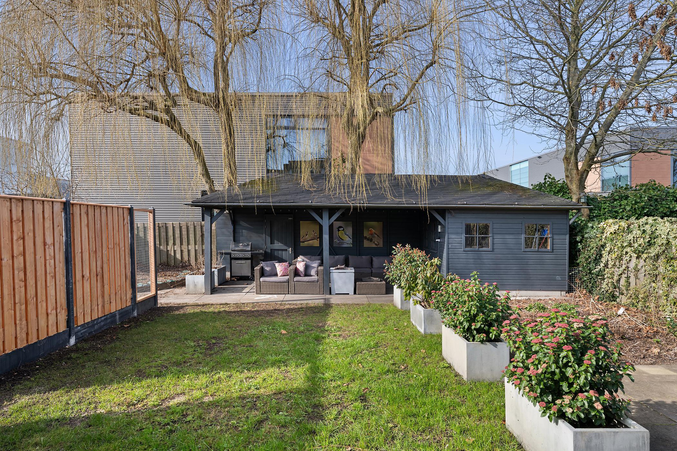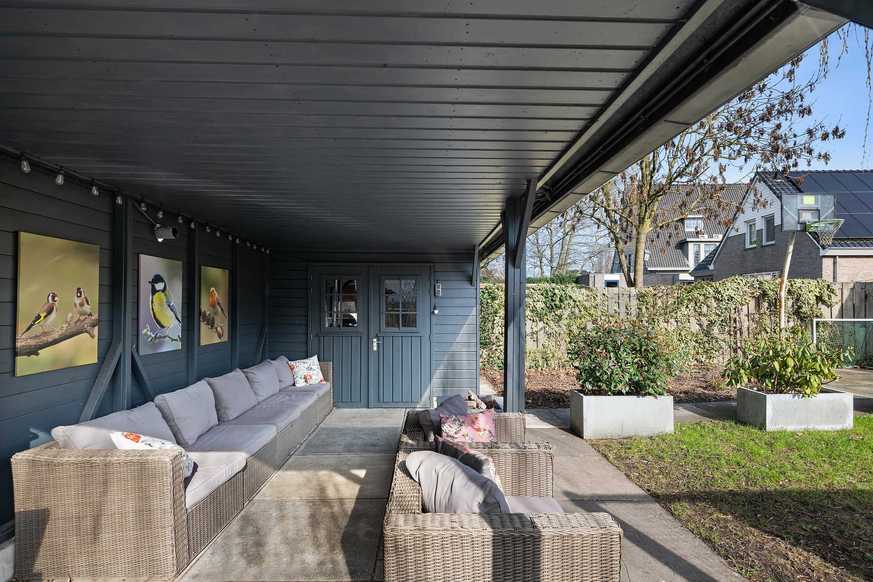 Tuin, schuur/berging, buitenzonwering, rookkanaal, schuifpui