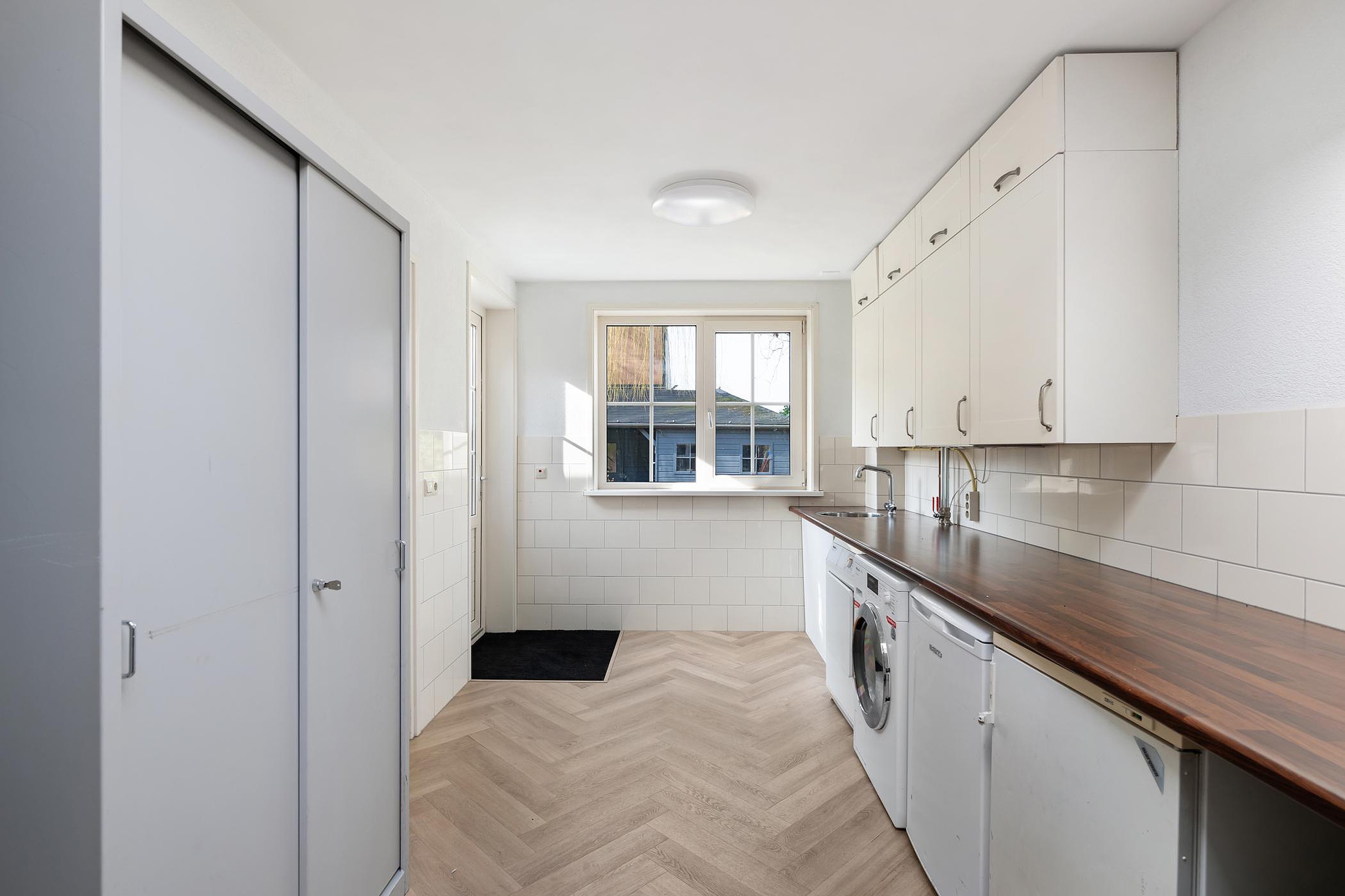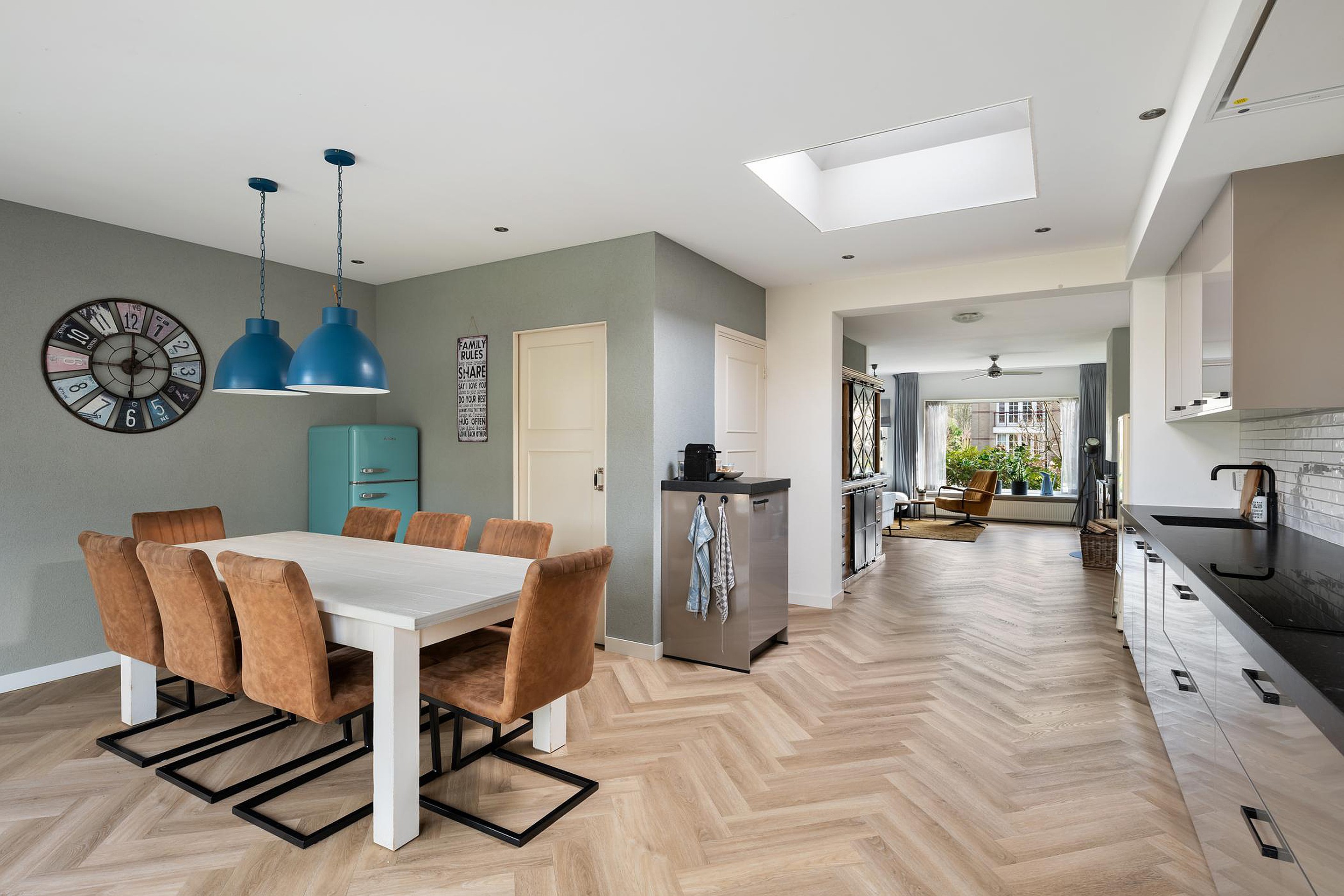 In de woonkeuken is ruim voldoende plaats voor een grote eettafel.