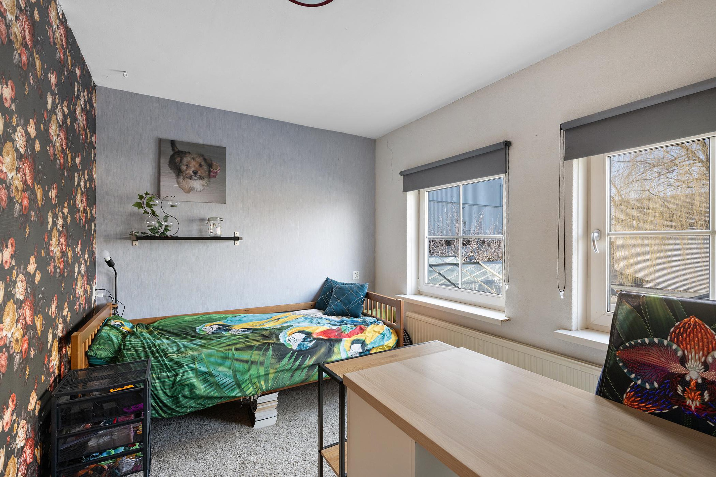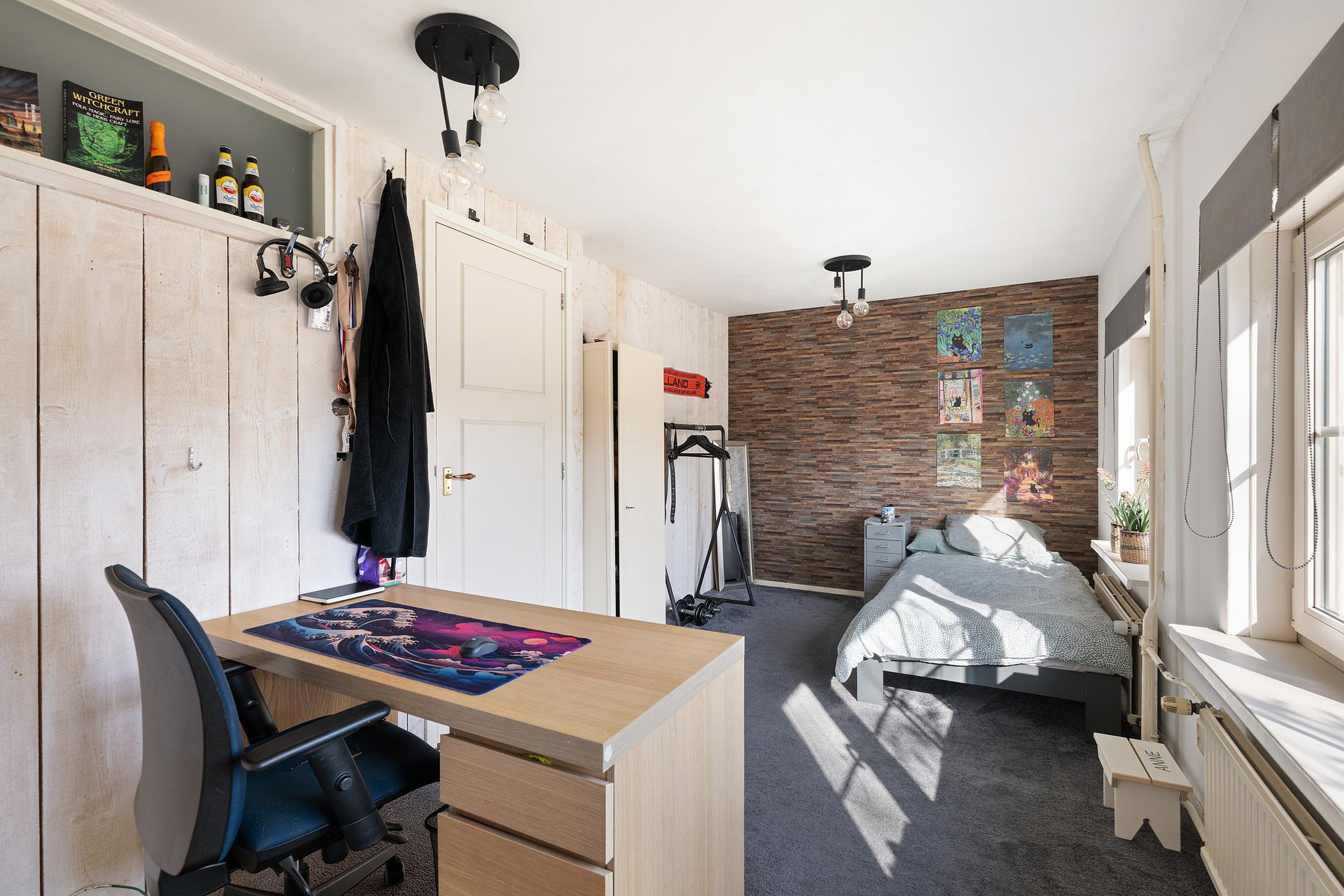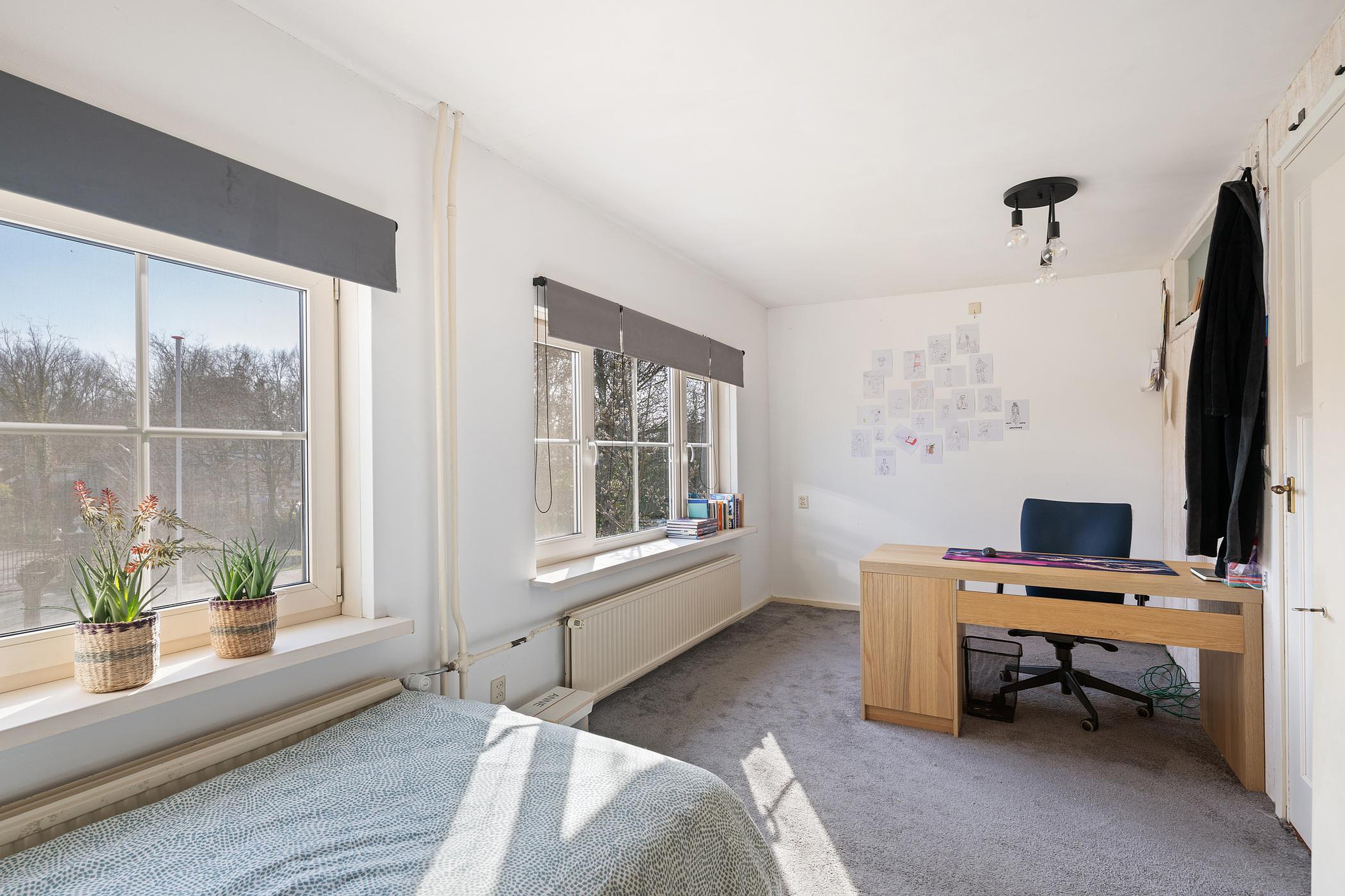 In de kamer is ruimte voor een grote zithoek.