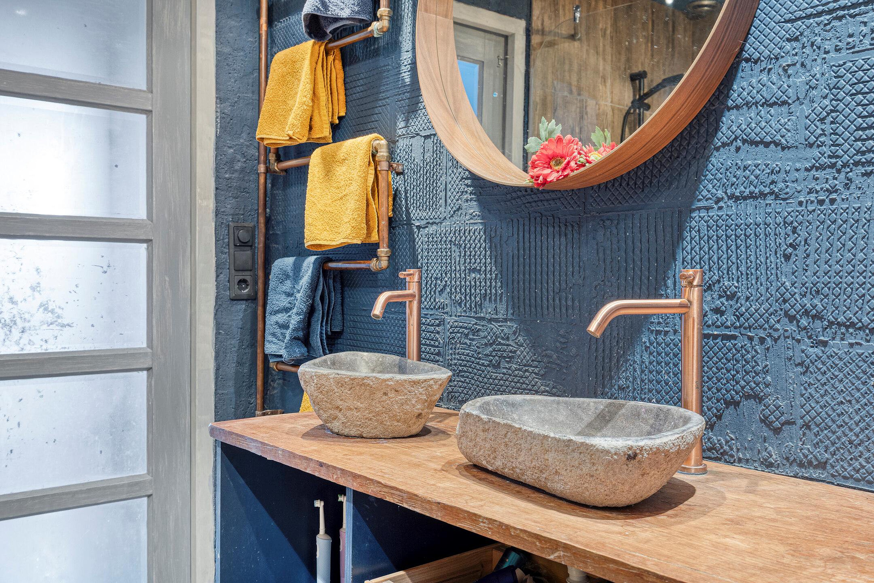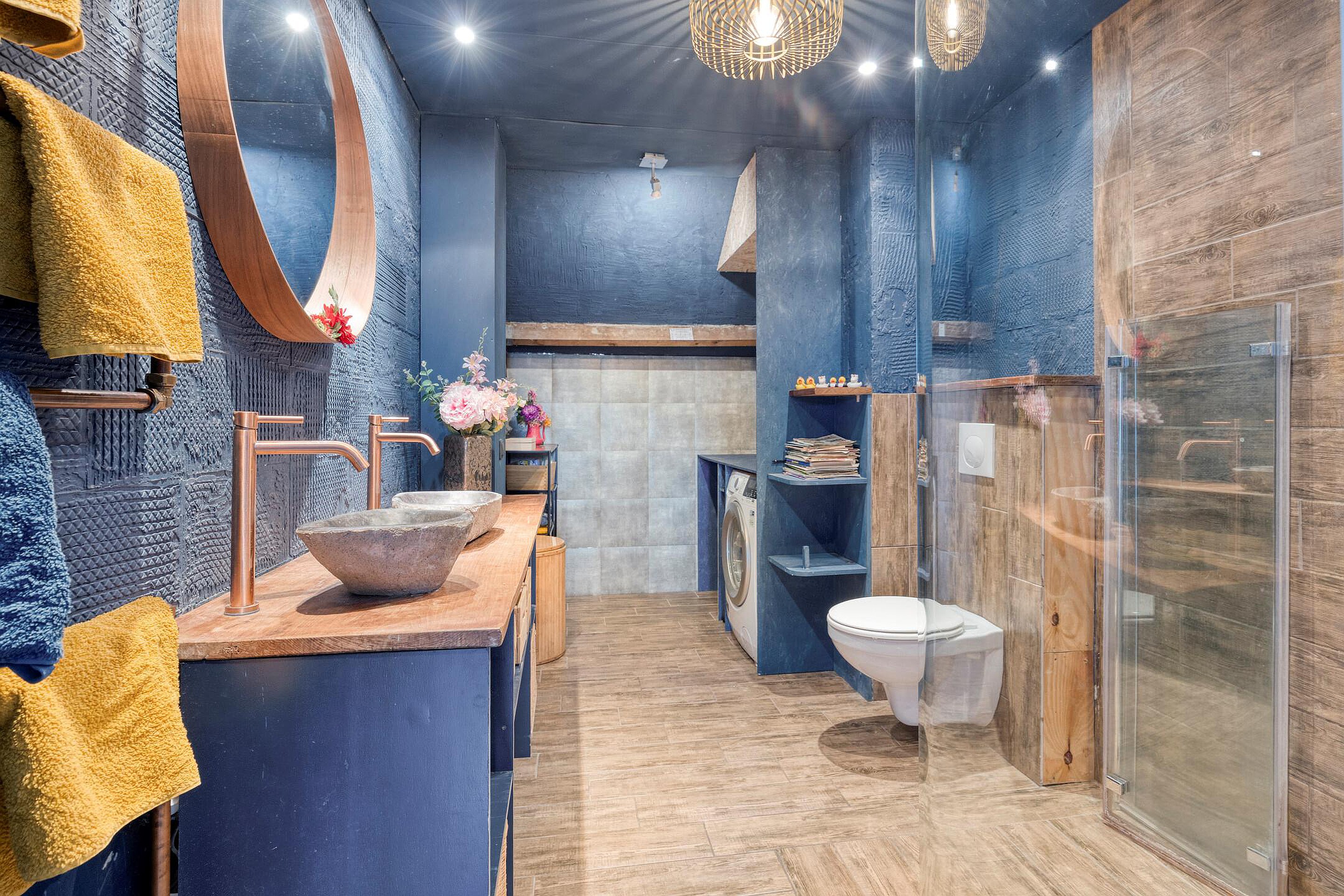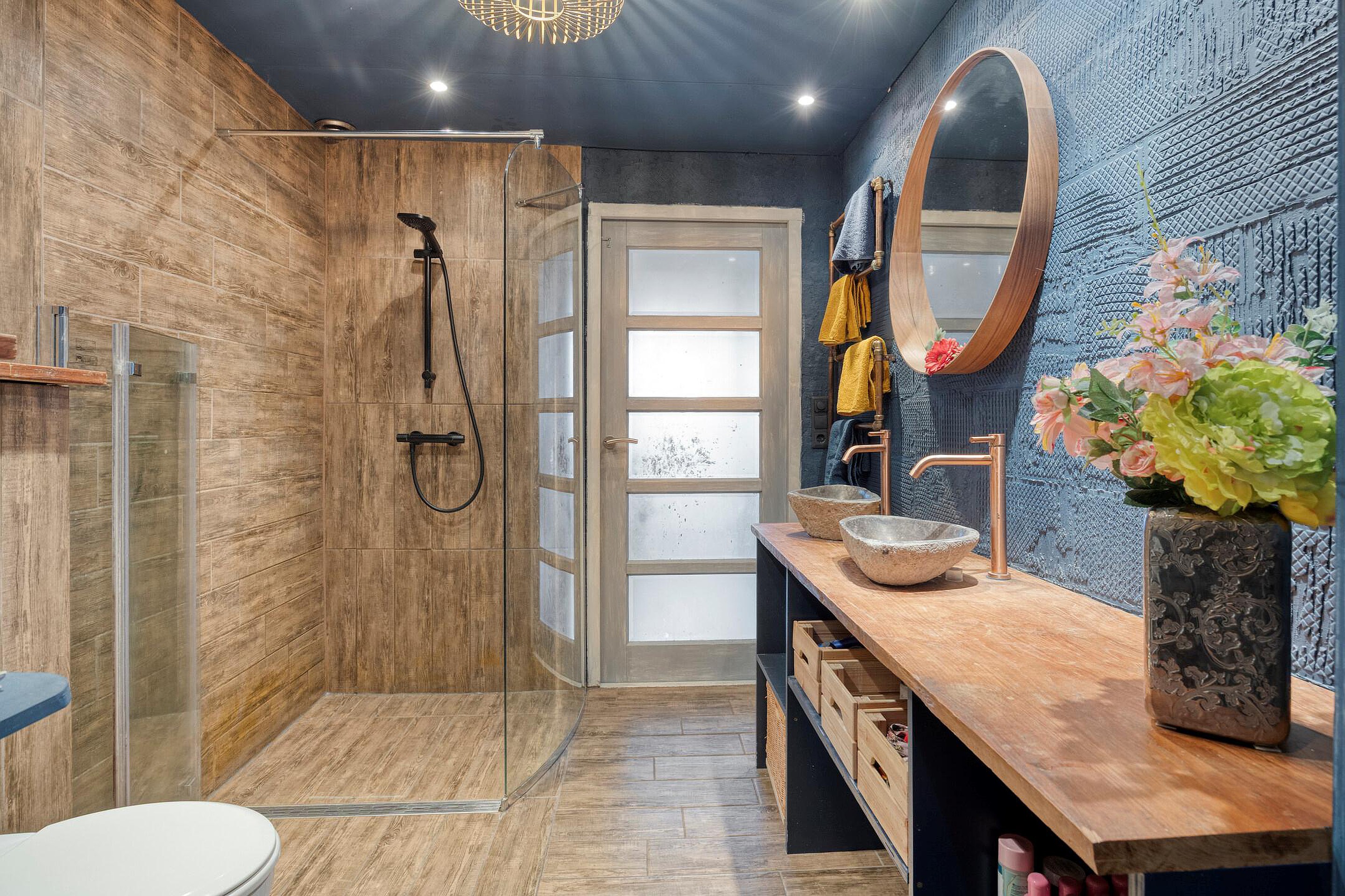 De badkamer is in 2020 vergroot en deels vernieuwd met een inloopdouche, dubbele wastafel, tweede toilet, designradiator en aansluiting voor de wasmachine.