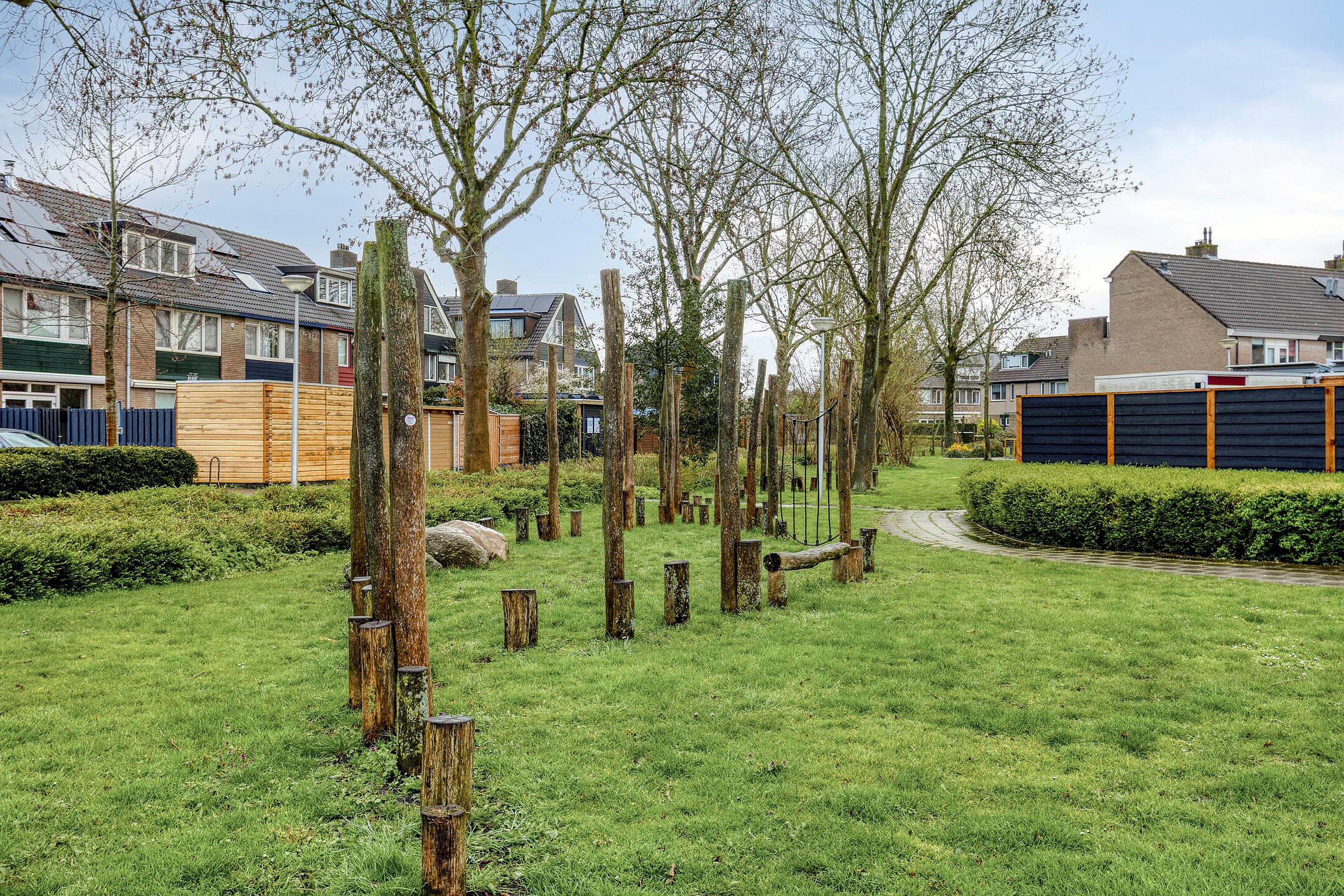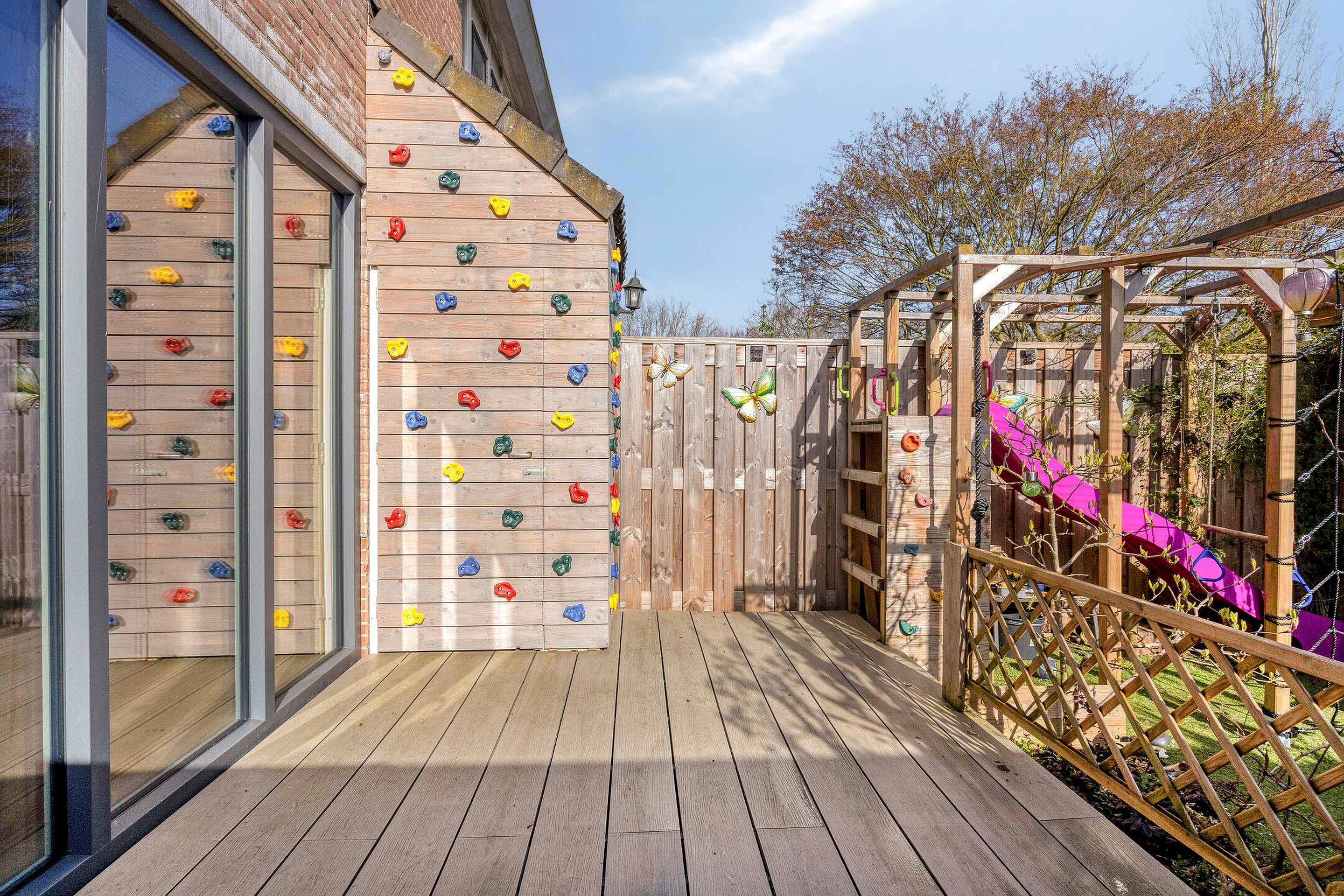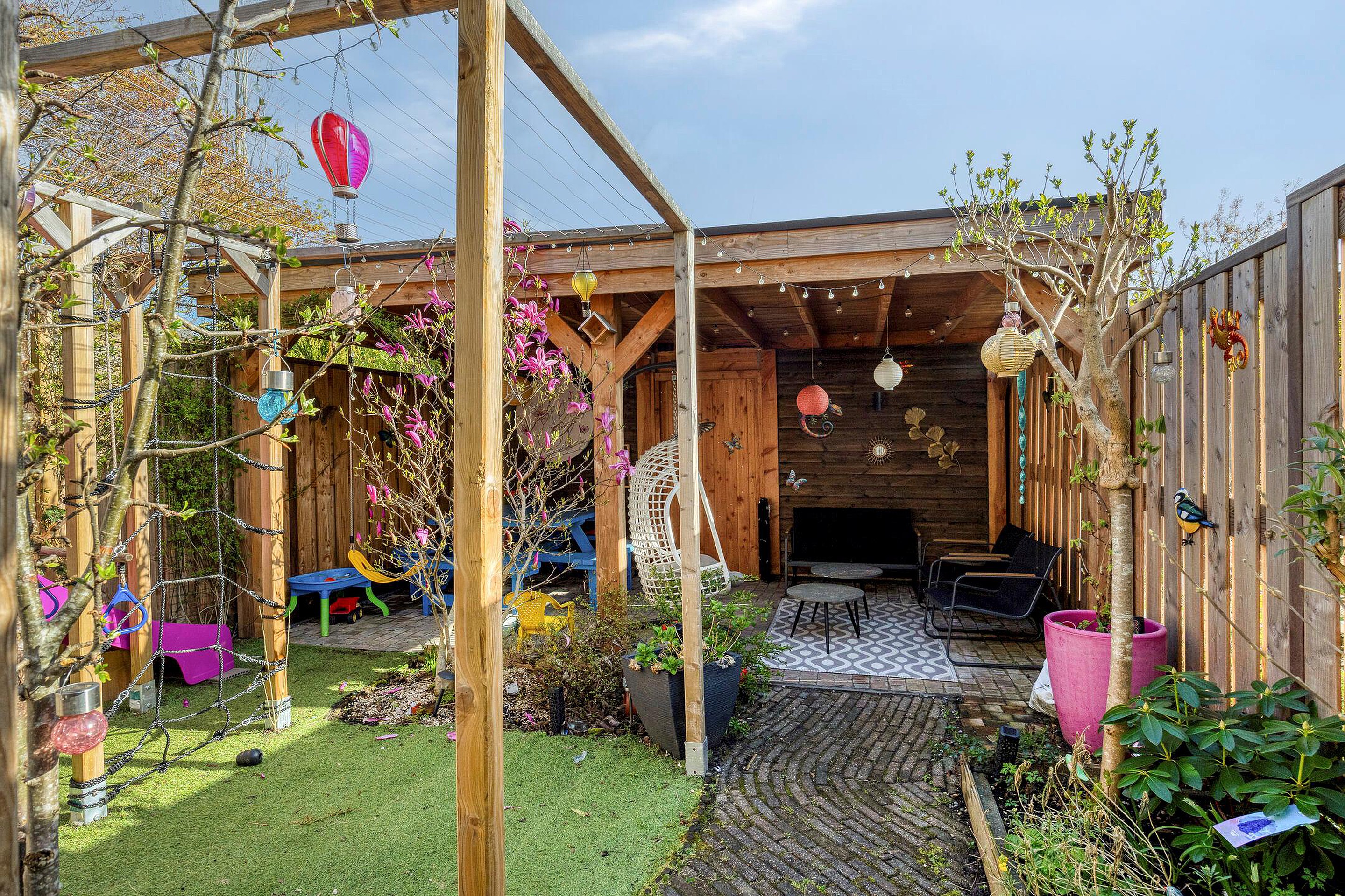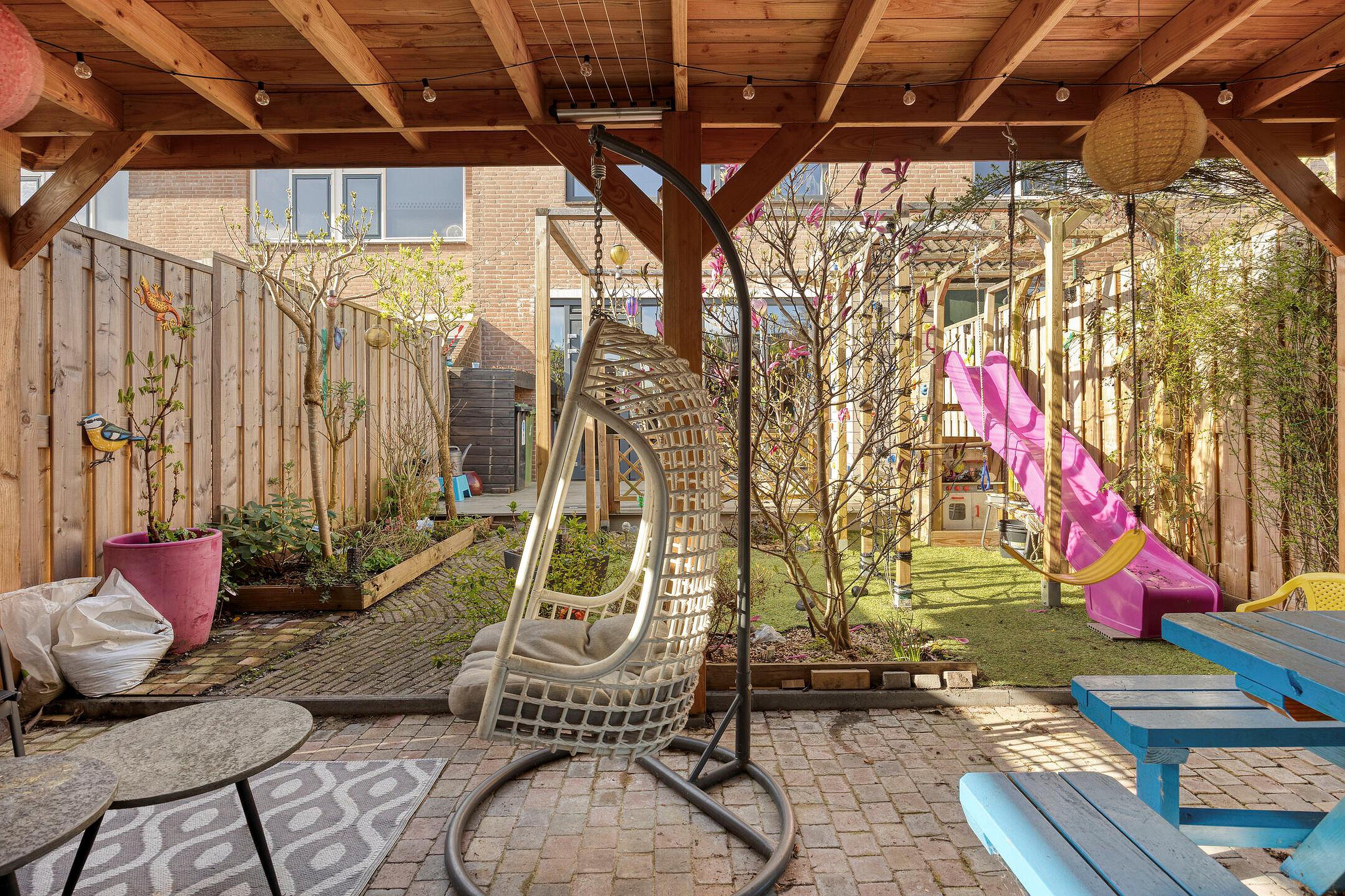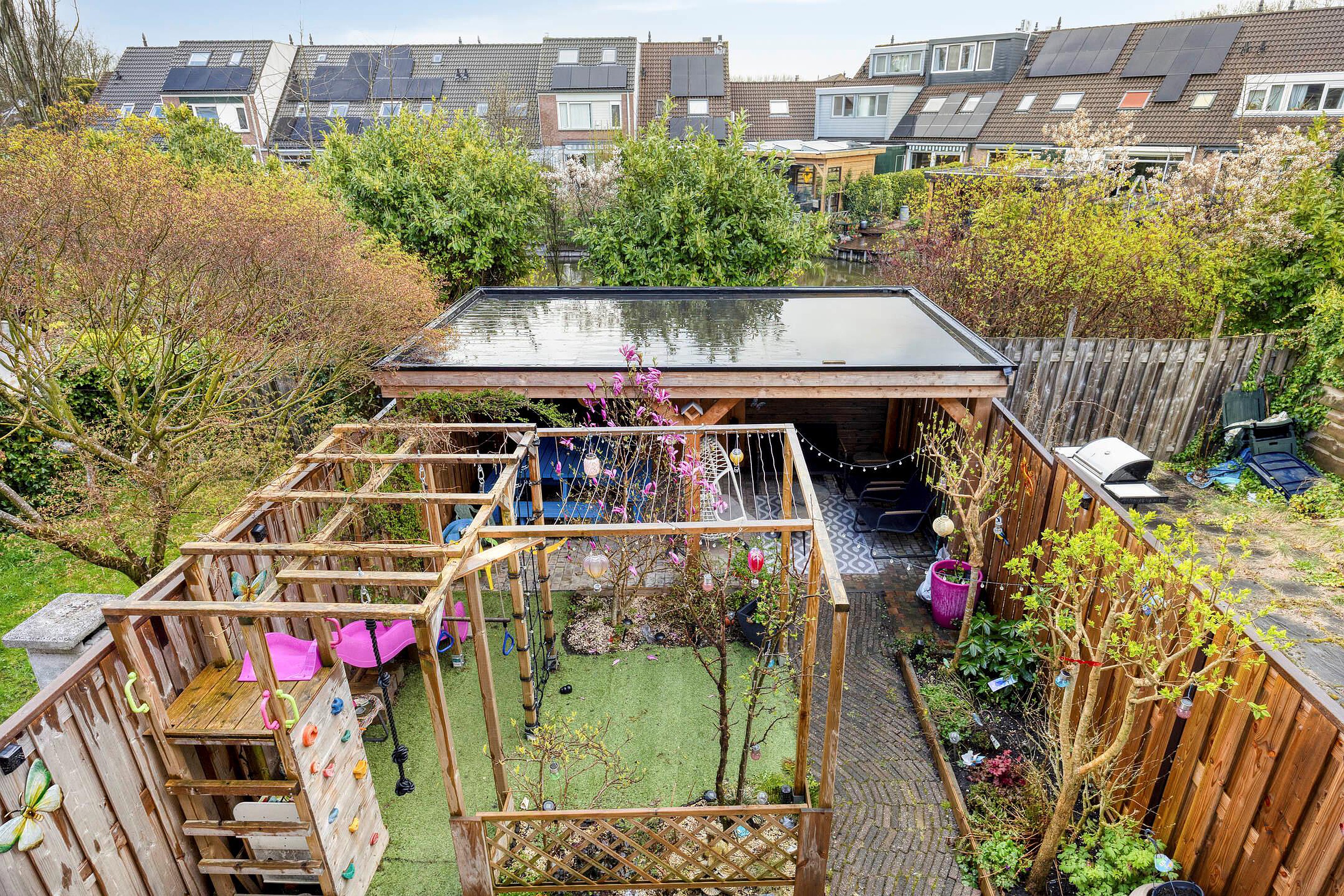 Tuin De achtertuin ligt op het noordoosten en is verzorgd aangelegd. Hier vind je een overkapping waar je beschut kunt zitten, een handige achterom en een speelse klimwand, perfect voor kinderen. Een fijne buitenruimte met diverse mogelijkheden.