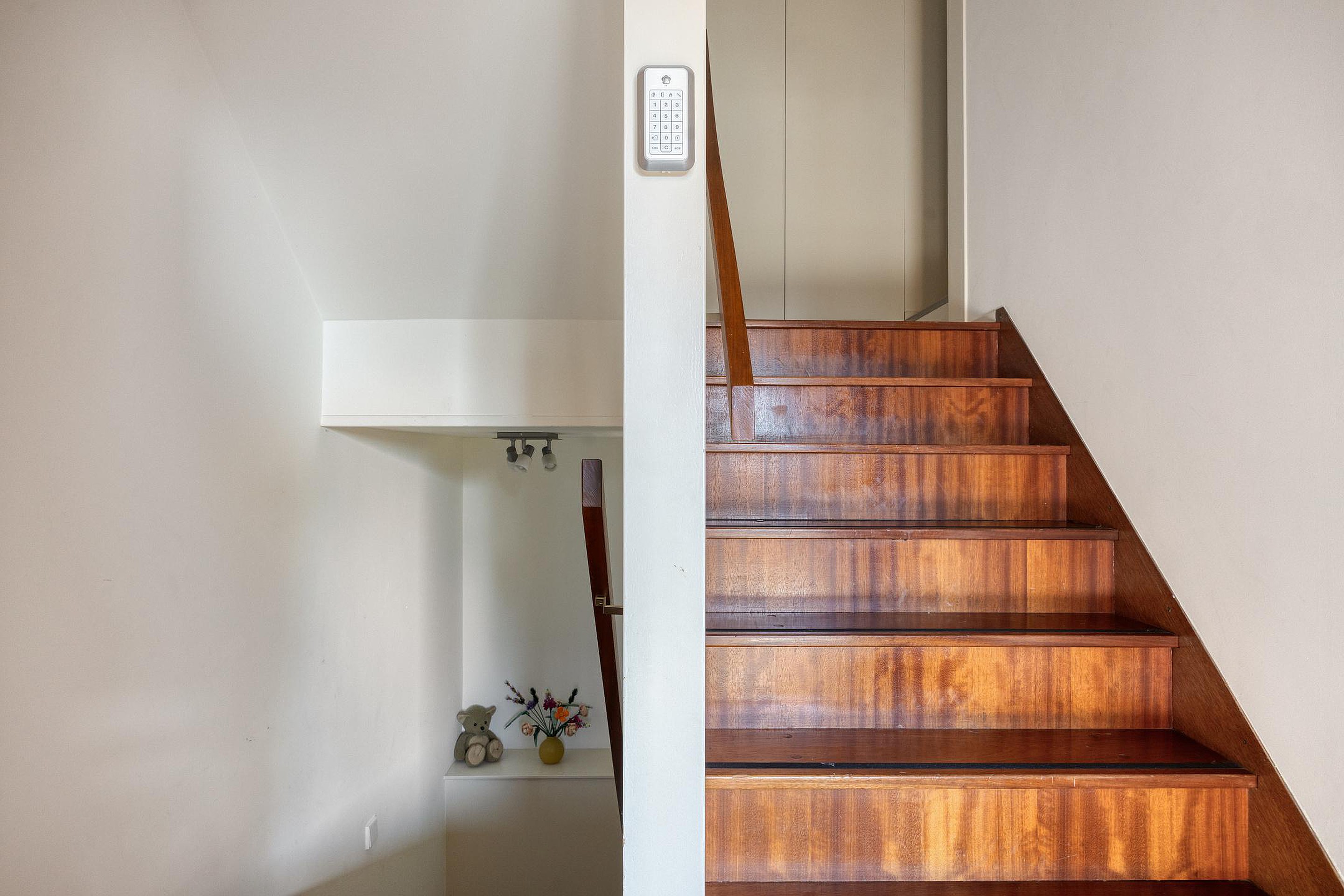 Deur naar tweede hal met een praktische trapkast/luik naar de kelder en de Cv-installatie (2015).