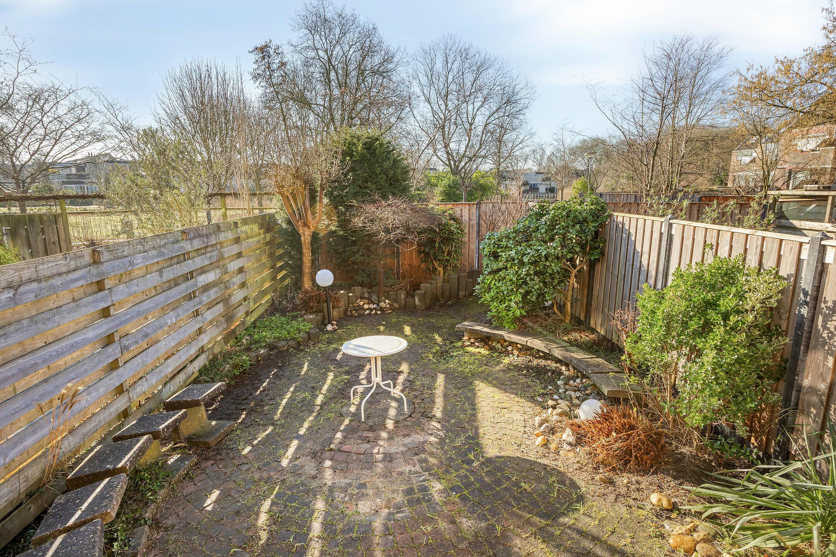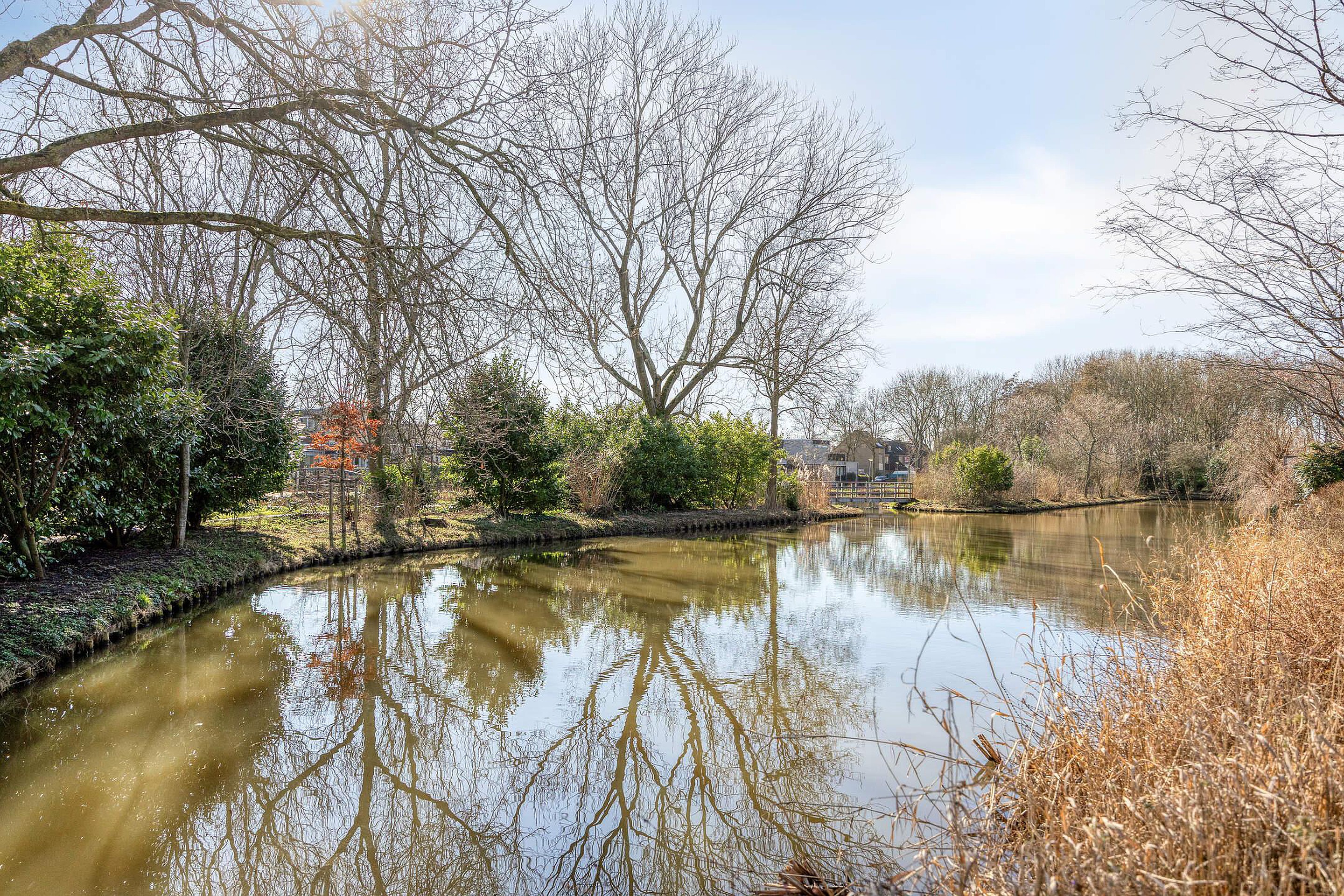 Tuin Vanuit de woonkamer stapt u op het terras en via de trap bereikt u de achtertuin. De tuin is gelegen op het zuiden en grenst direct aan water en park. Door de vrije ligging geniet u hier van privacy, rust en een groen uitzicht. Een heerlijke plek om te ontspannen of om met vrienden en familie te genieten van lange zomeravonden.