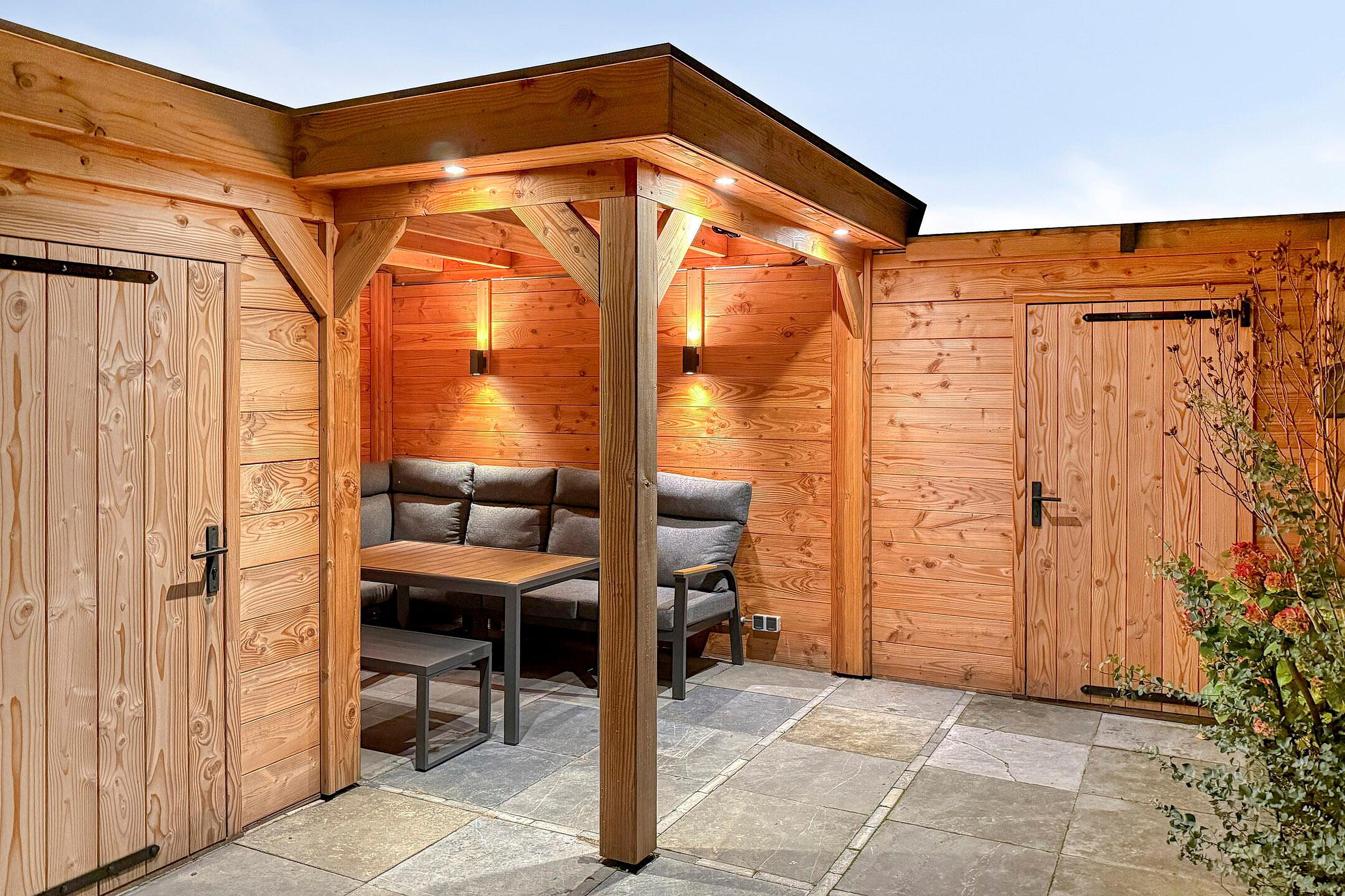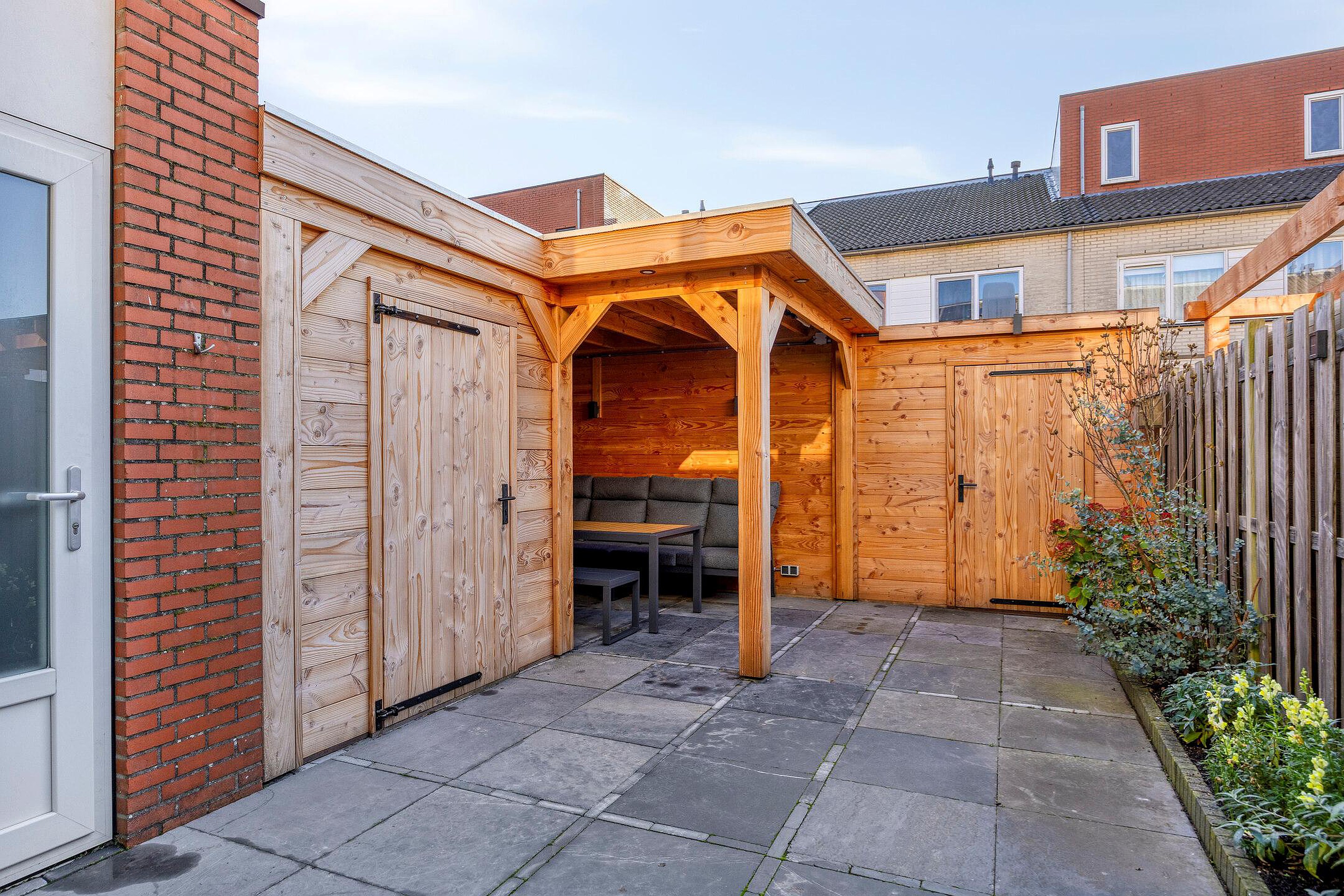 - Achtertuin op het zuidoosten met overkapping, berging en achterom