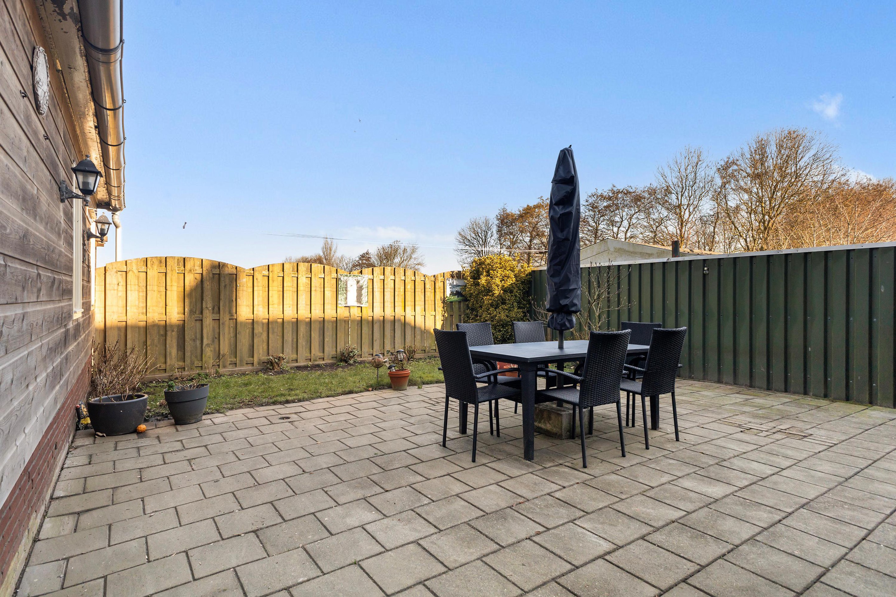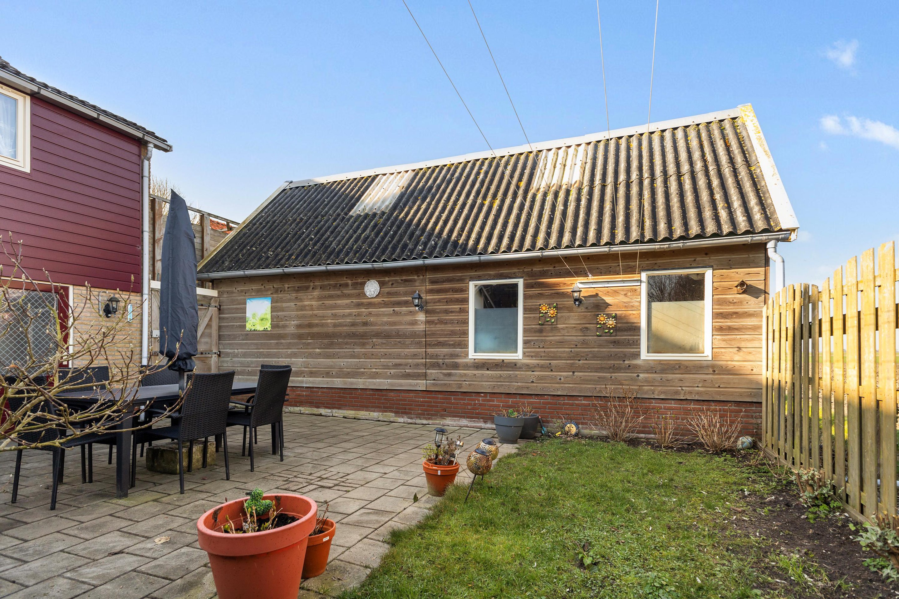 De achtertuin ligt beschut en biedt een fijne plek om buiten te zitten. Hier ervaar je echt de rust en ruimte waar het Bildt om bekend staat. In de tuin staat een ruime vrijstaande garage van circa 37 m2 met een eigen zolder. De garage is ideaal voor hobby, opslag of werkruimte en is voorzien van krachtstroom. Hier is bovendien vloerverwarming en water aanwezig.