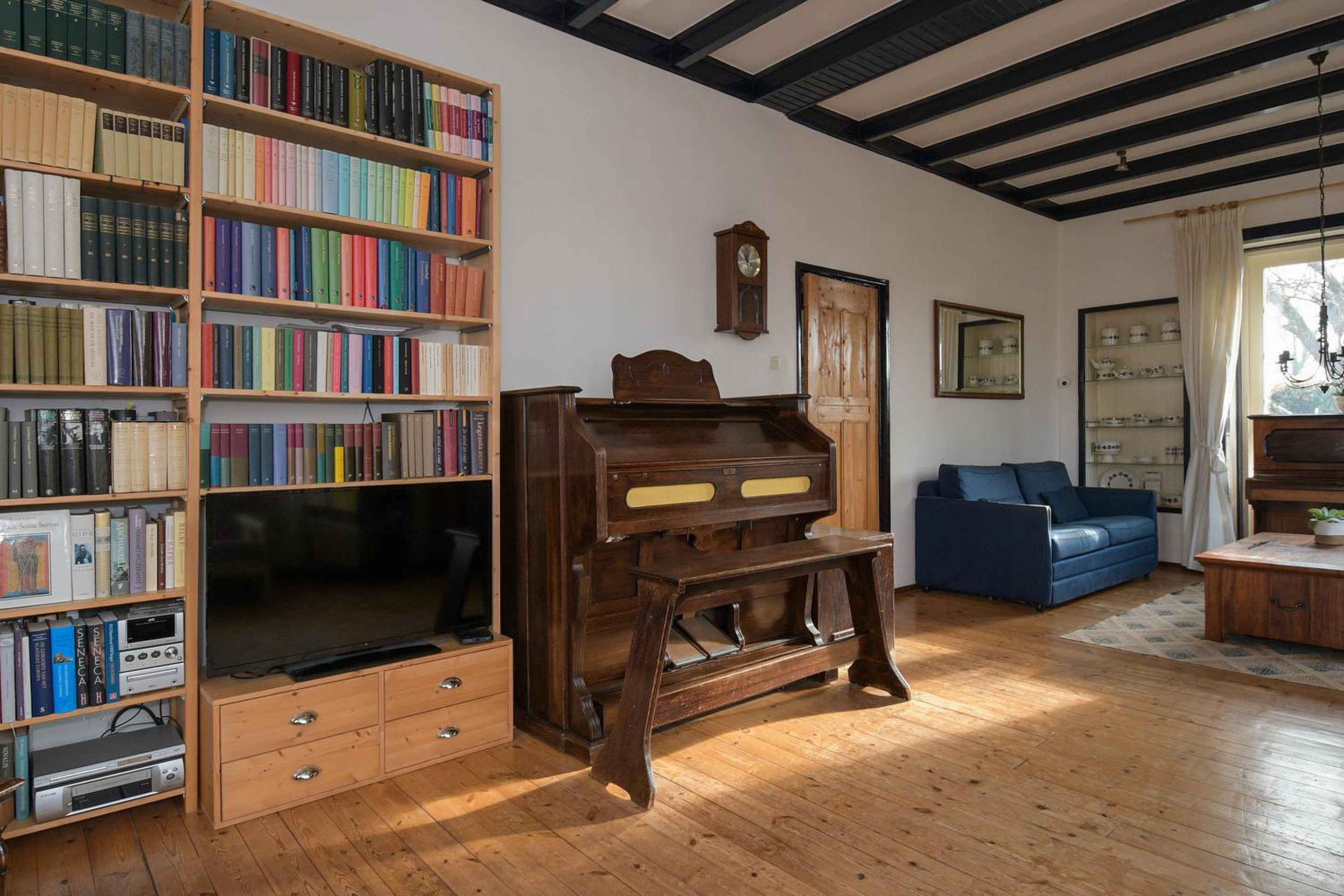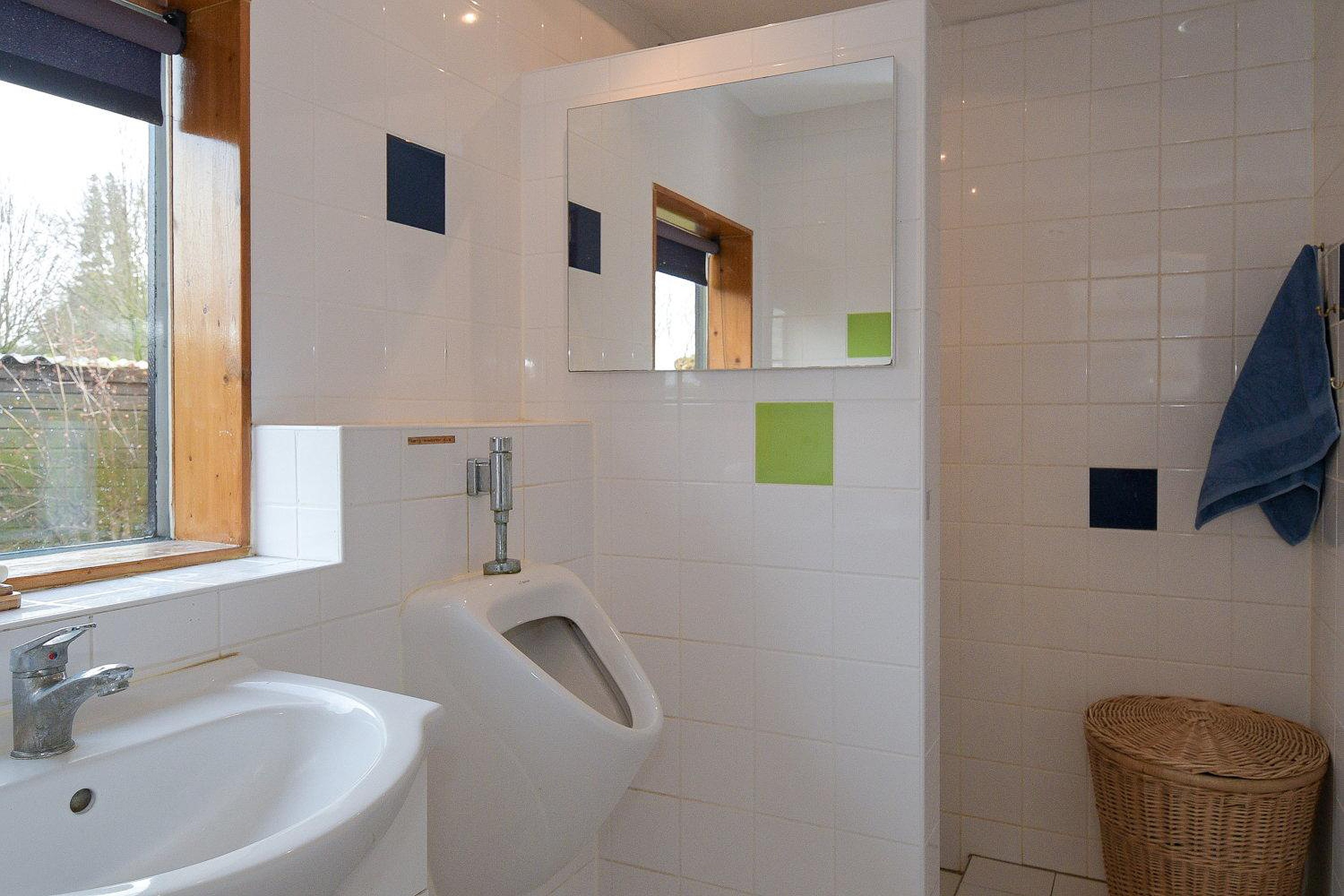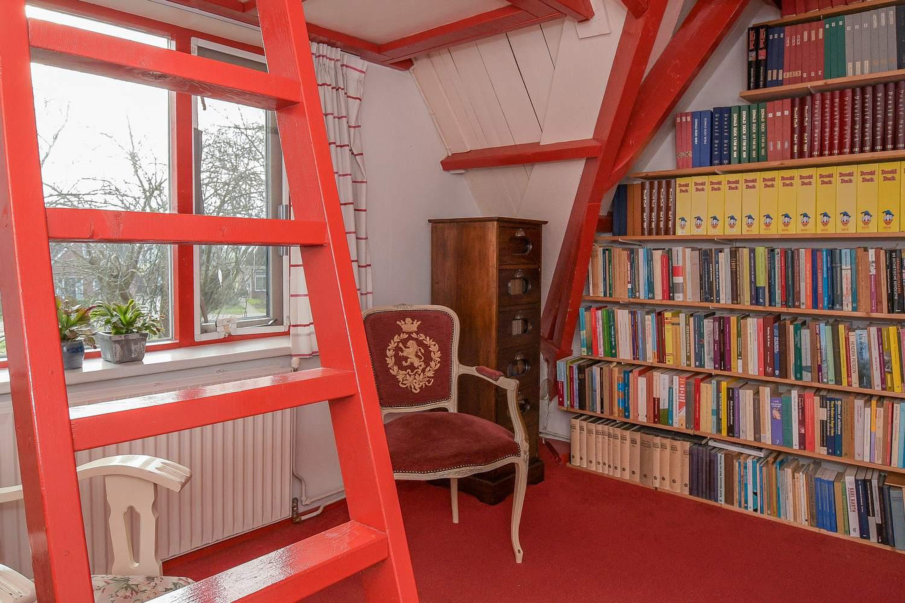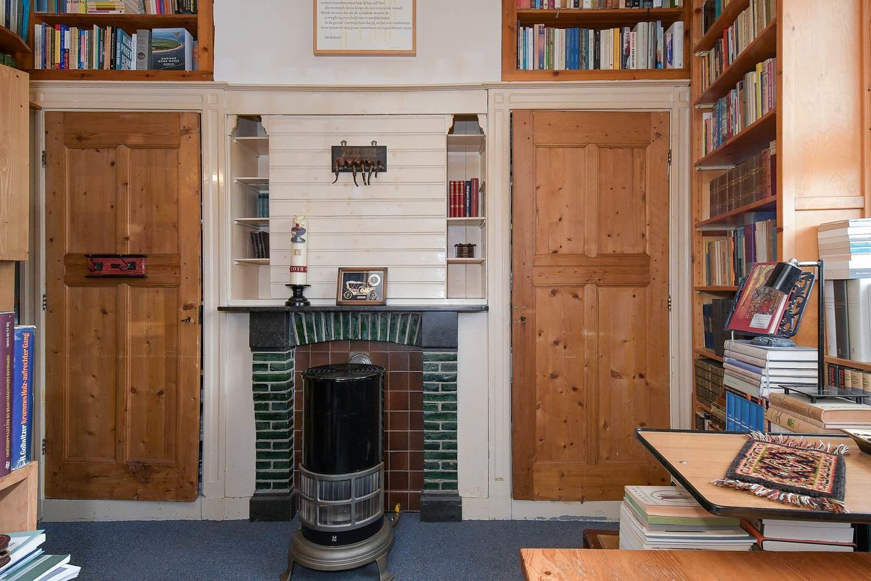 Er zijn twee badkamers met doucheruimte en wastafel, waarvan de één met een extra toilet en de ander met een urinoir. Beide badkamers beschikken over vloerverwarming. De woonkamer heeft een oppervlakte van 34 m2. Het hoge plafond met balken in het zicht, de glas-in-lood ramen en de schouw geven deze leefruimte een fijne sfeer en statige uitstraling. Aan de voorzijde van de woning bevindt zich een extra ruimte die momenteel in gebruik is als kantoor/werkruimte. Hier hield vroeger het polderbestuur van de Groote Veenpolder in Opsterland kantoor. De werkruimte beschikt over een infraroodpaneel.