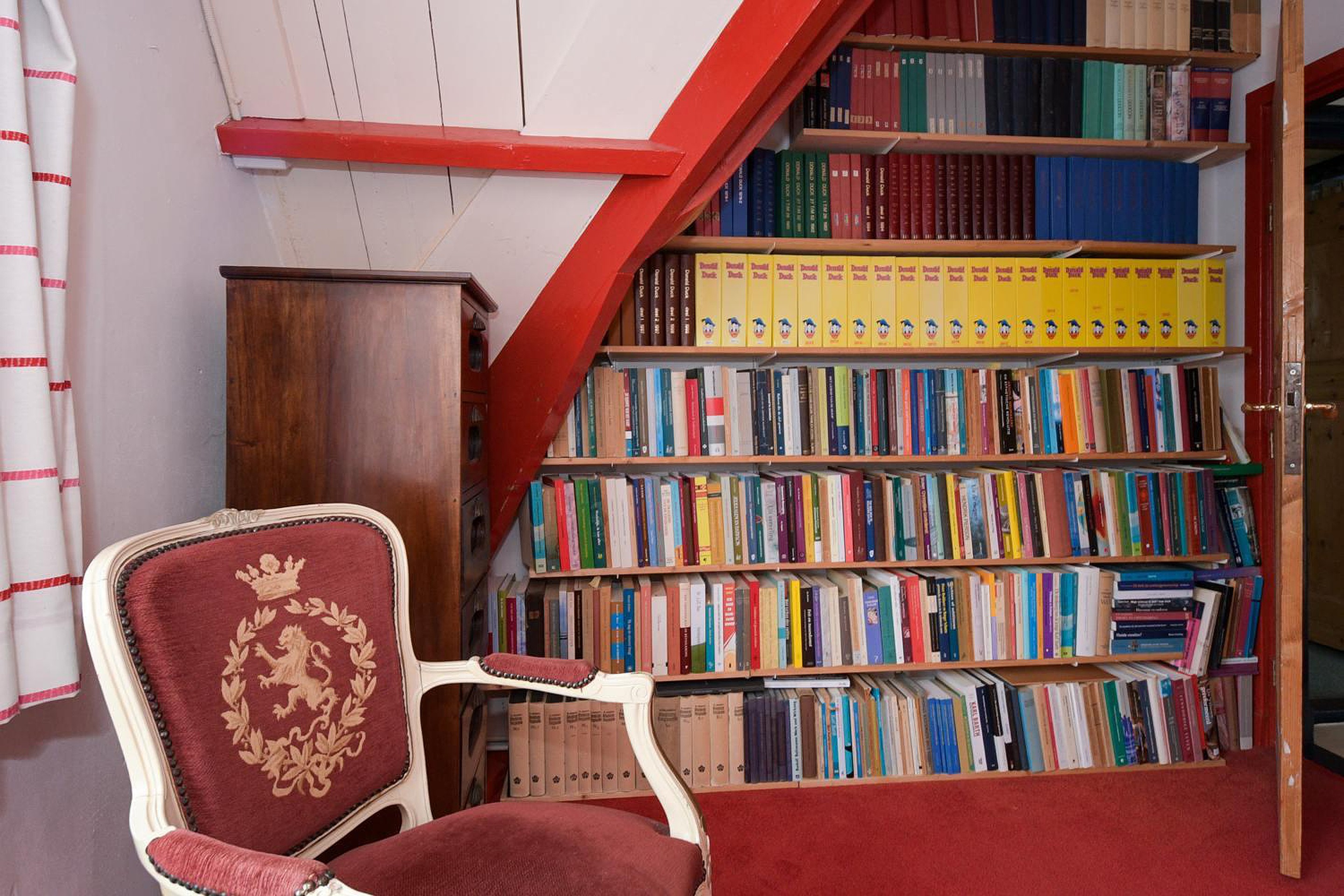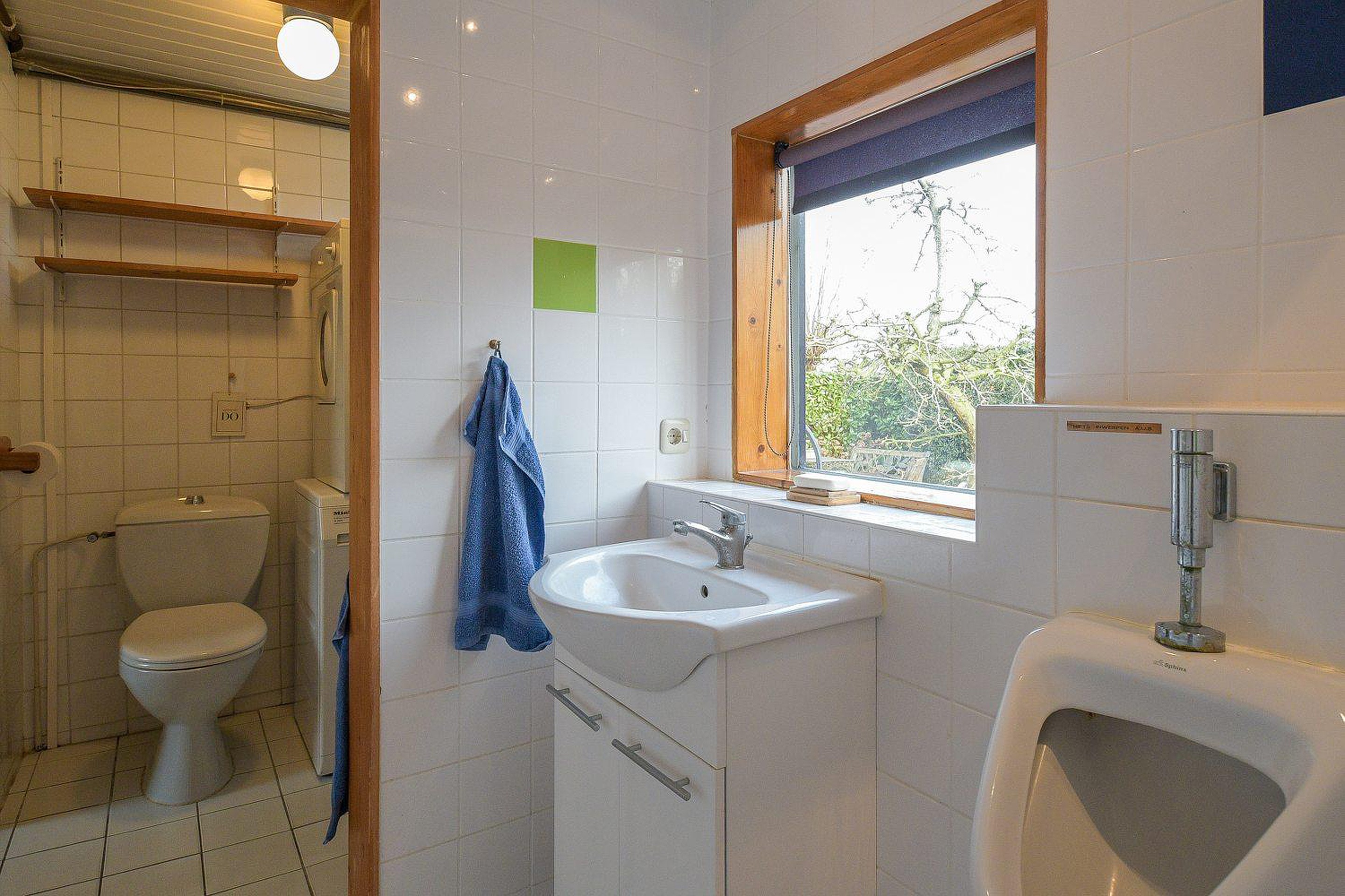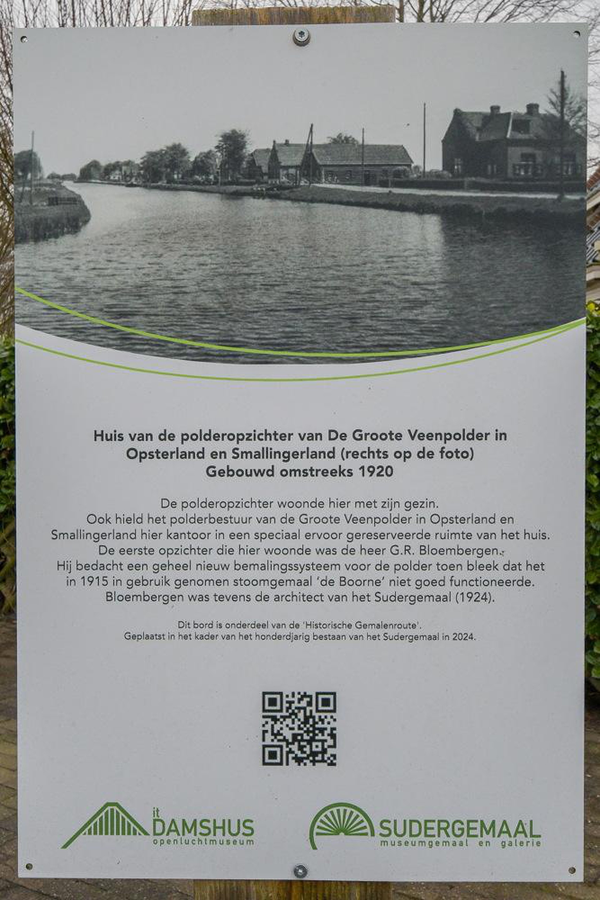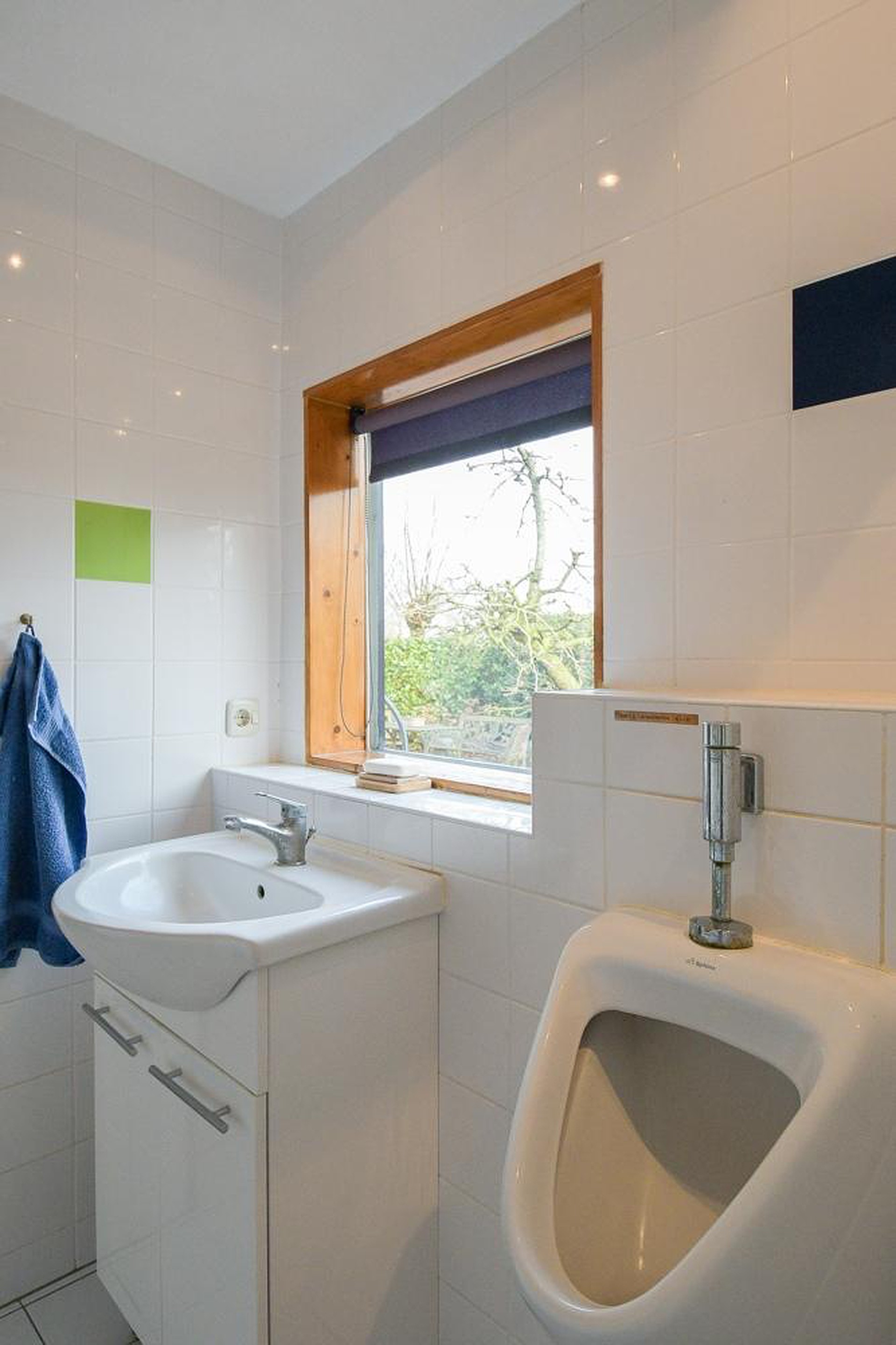 Er zijn twee badkamers met doucheruimte en wastafel, waarvan de één met een extra toilet en de ander met een urinoir. Beide badkamers beschikken over vloerverwarming. De woonkamer heeft een oppervlakte van 34 m2. Het hoge plafond met balken in het zicht, de glas-in-lood ramen en de schouw geven deze leefruimte een fijne sfeer en statige uitstraling. Aan de voorzijde van de woning bevindt zich een extra ruimte die momenteel in gebruik is als kantoor/werkruimte. Hier hield vroeger het polderbestuur van de Groote Veenpolder in Opsterland kantoor. De werkruimte beschikt over een infraroodpaneel.