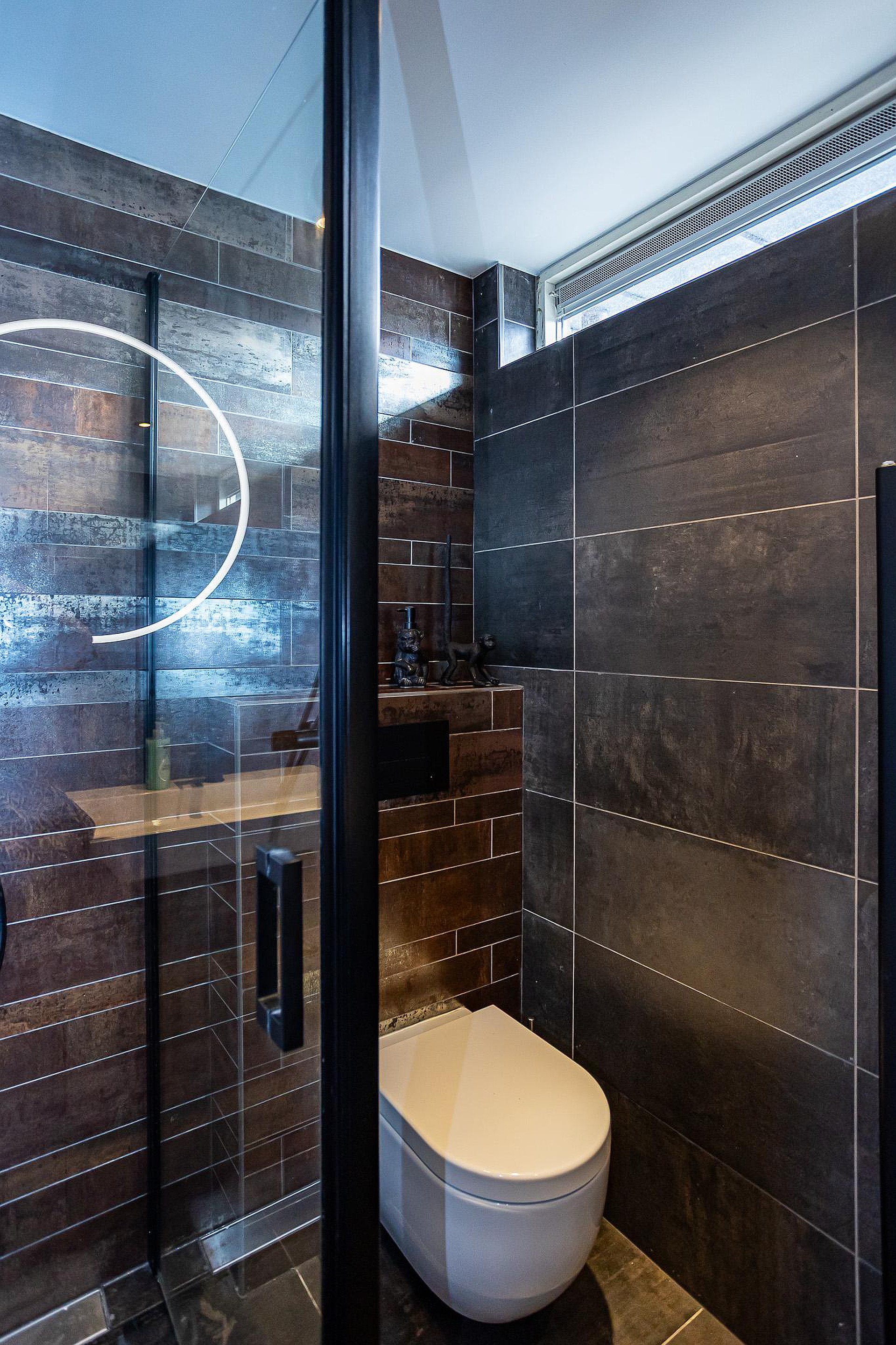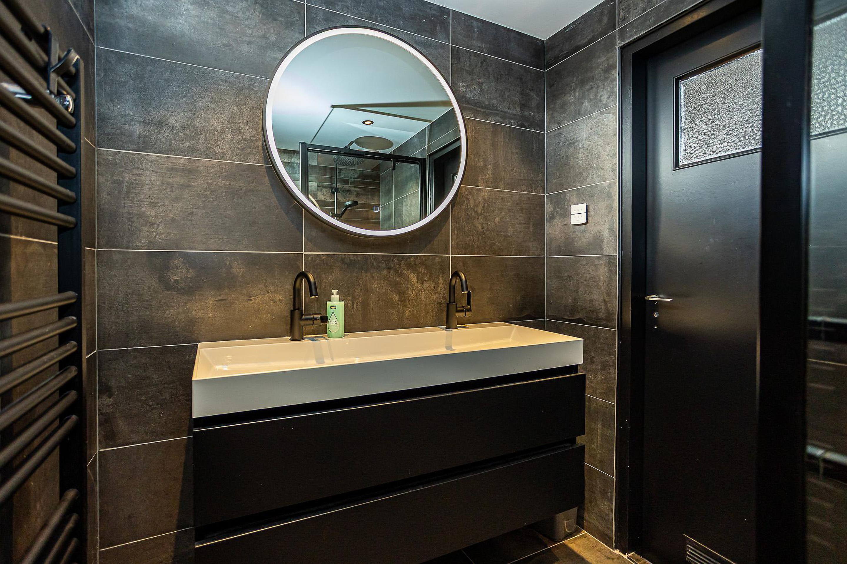 overloop met bergkast, 3 slaapkamers, luxe moderne badkamer (2021) met douchecabine, 2e toilet, vaste wastafel in badkamermeubel en designradiator.