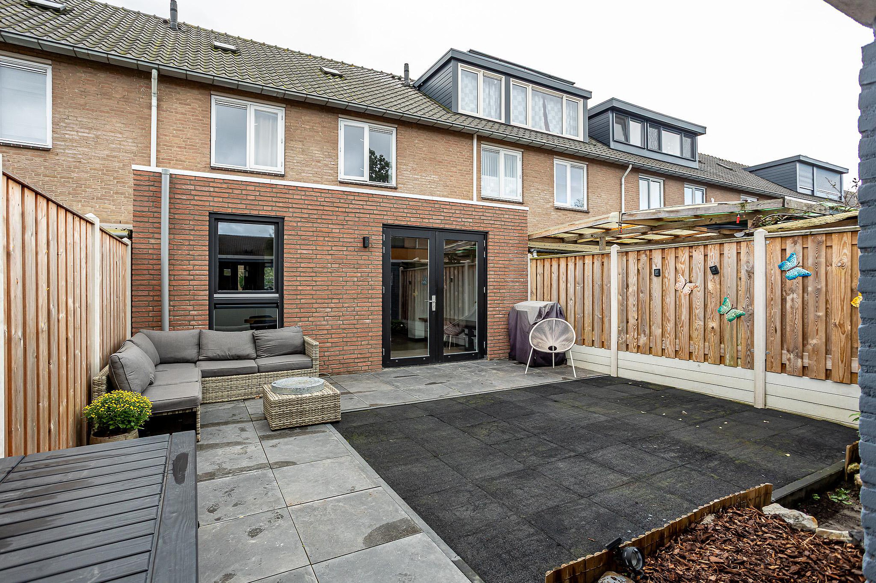 Aan rustige wijkstraat gelegen UITGEBOUWDE TUSSENWONING met TUINBERGING en onderhoudsvriendelijke tuin met achterom.