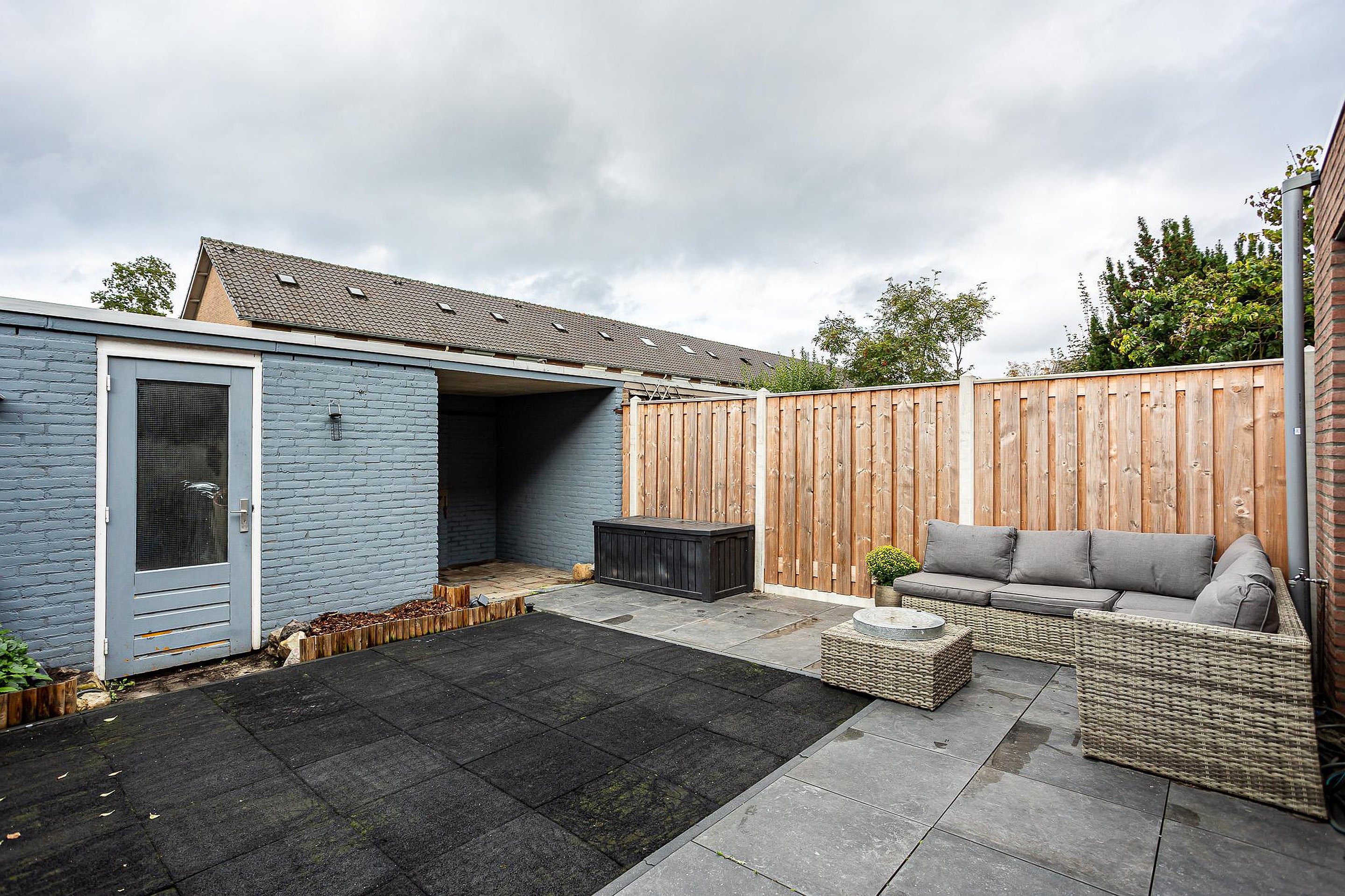 Onderhoudsvriendelijke achtertuin, stenen tuinberging met overkapping en achterom gelegen op het noordwesten.
