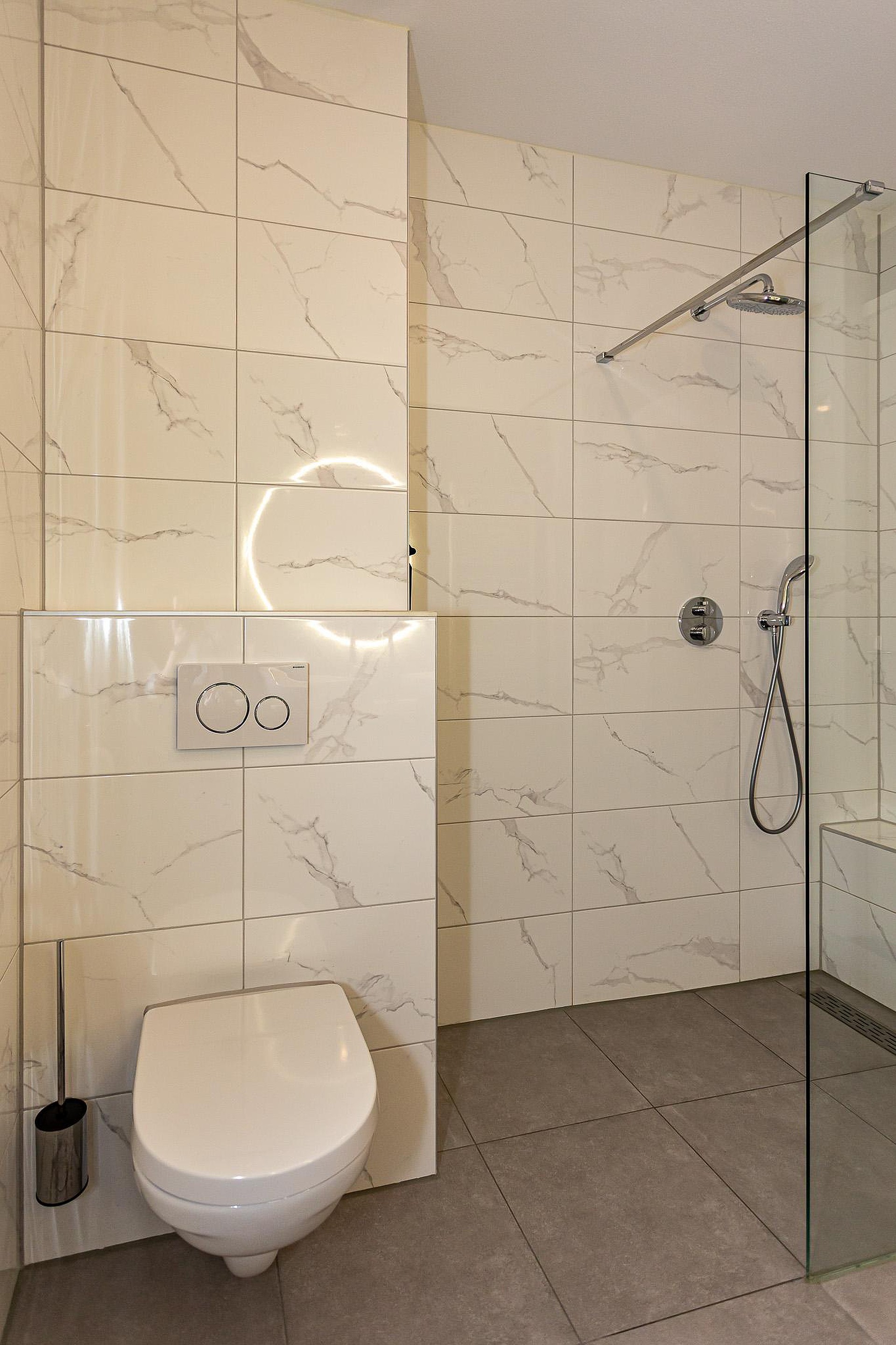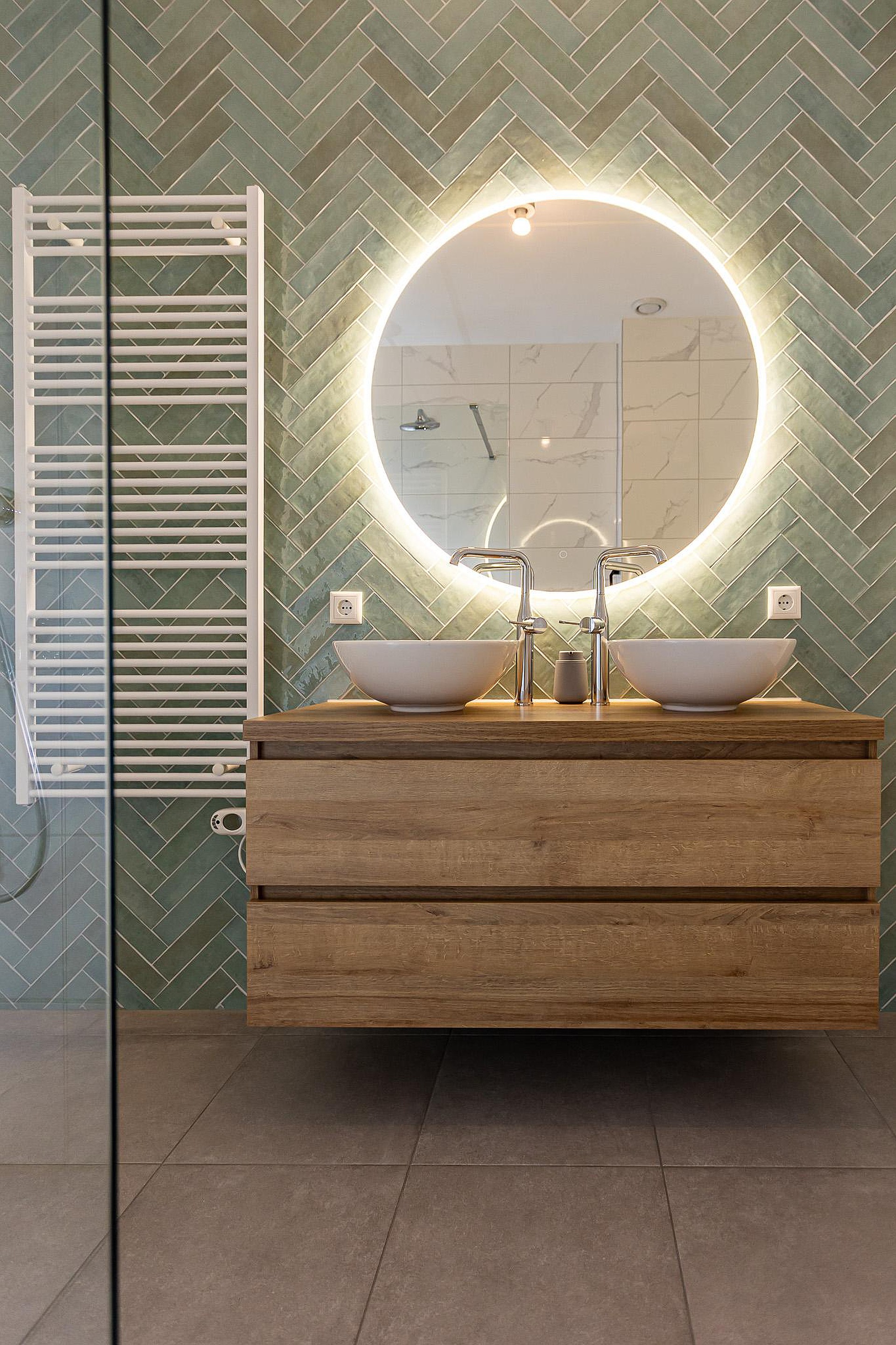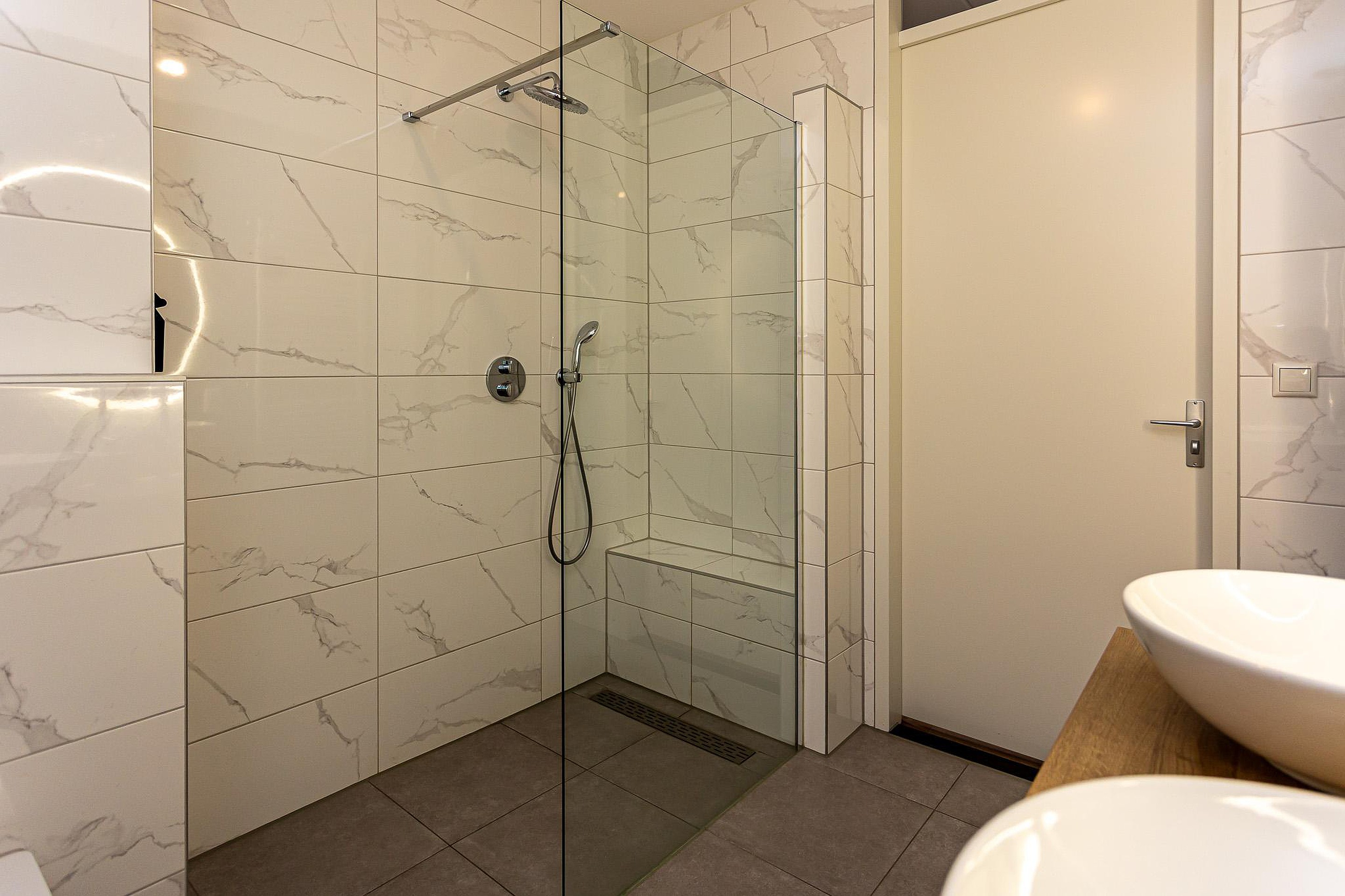 overloop, 3 slaapkamers (ouderslaapkamer met royale inloopkast), luxe moderne badkamer met inloopdouche, twee vaste wastafels in badkamermeubel, design-