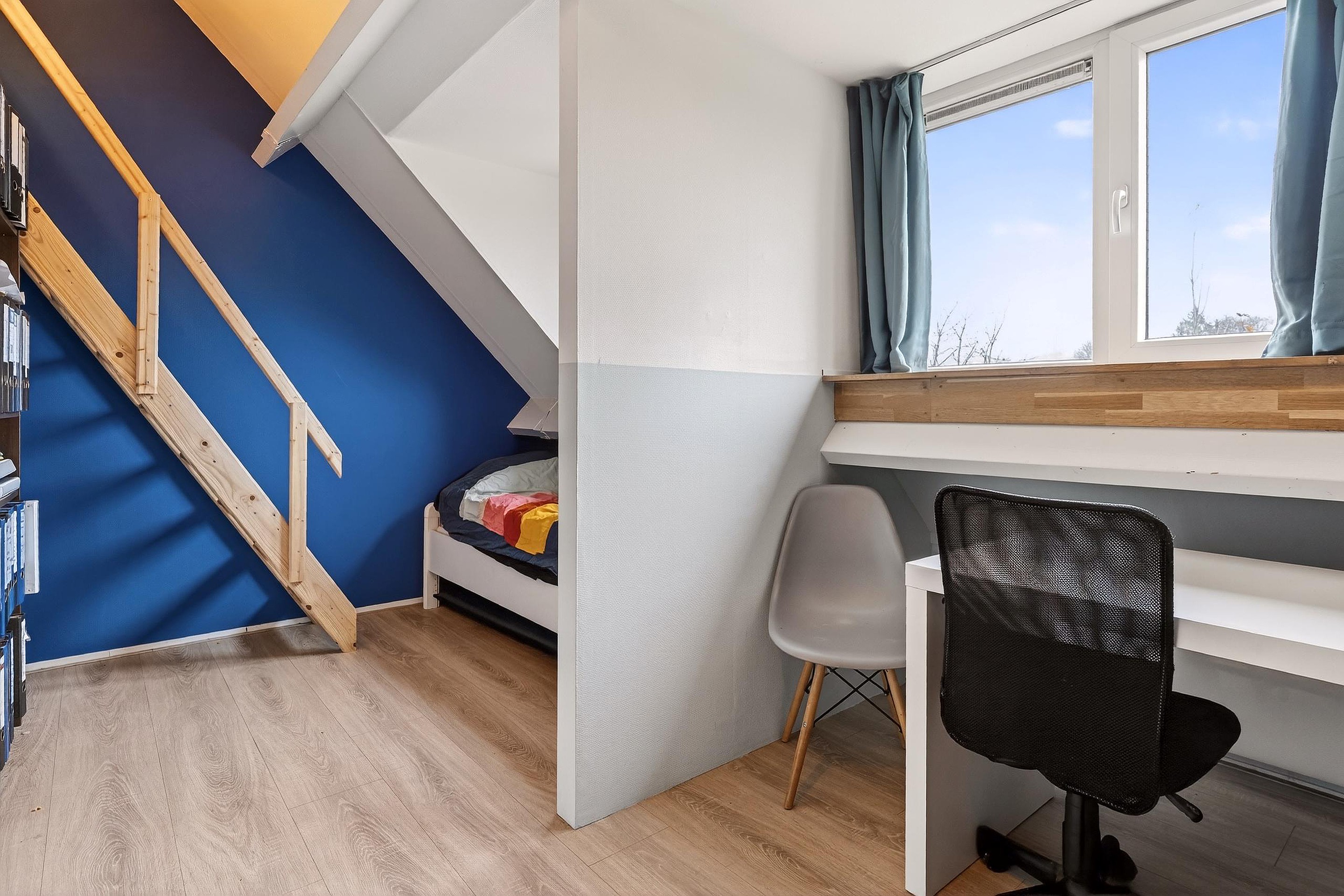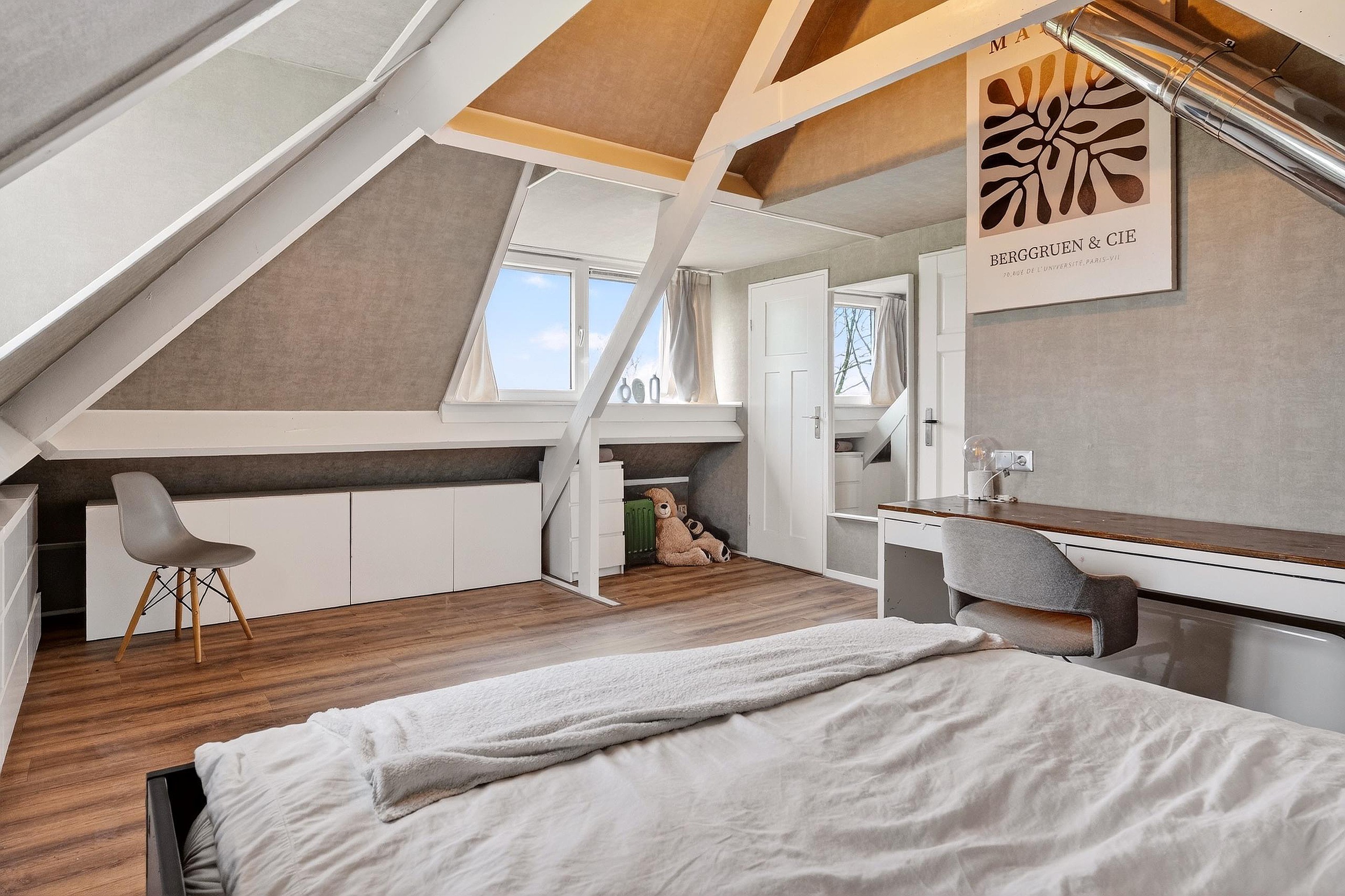 Eerste verdieping Overloop met technische ruimte/berging en een separaat toilet; 4 slaapkamers van ca. 17, 10 8.5 en 8.5 m2. De 2 slaapkamers aan de voorzijde kunnen eenvoudig worden samengevoegd tot één grote slaapkamer, de slaapkamer met grote dakkapel heeft nog een extra verdieping welke als speel of slaapzolder kan worden gebruikt; De grootste slaapkamer beschikt over een badkamer en suite, deze badkamer is voorzien van een inloopdouche en een wastafel.