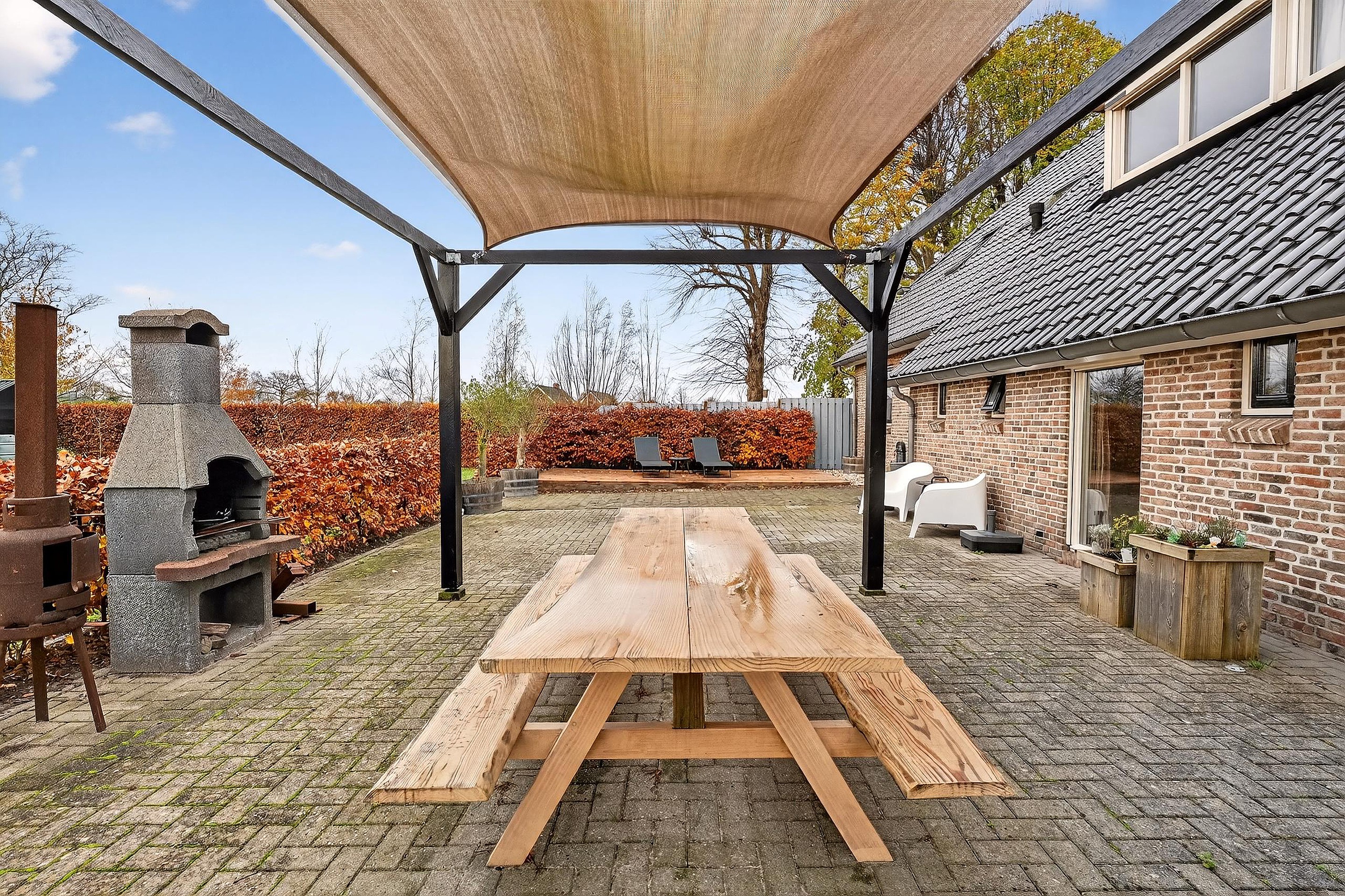 Tuin Aan de Zuid- en Oostzijde van de woning ligt een riant tuinterras met prachtig uitzicht over de landerijen. Ook is er een eigen moestuin aanwezig.