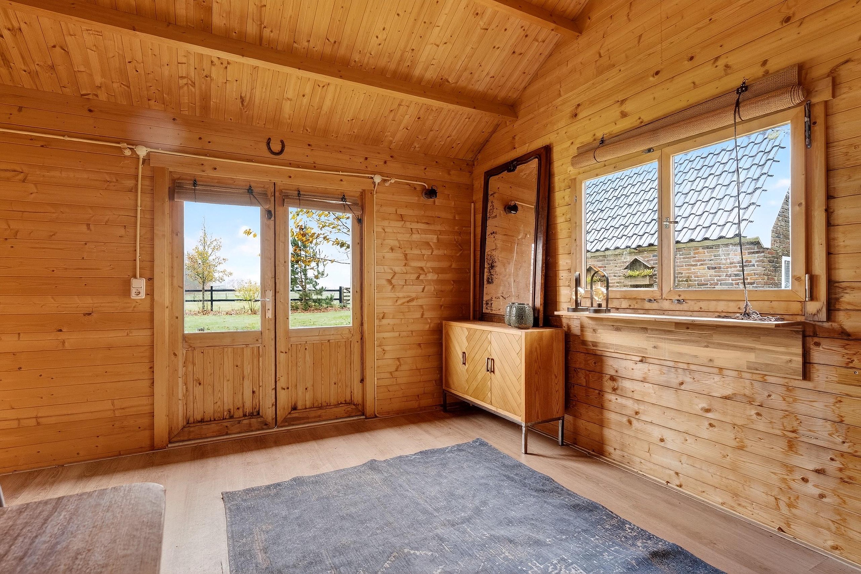 Het vrijstaande gastenverblijf/tuinhuis is voorzien van een woonkamer, keukenblokje en een badkamer met douche en toilet.
