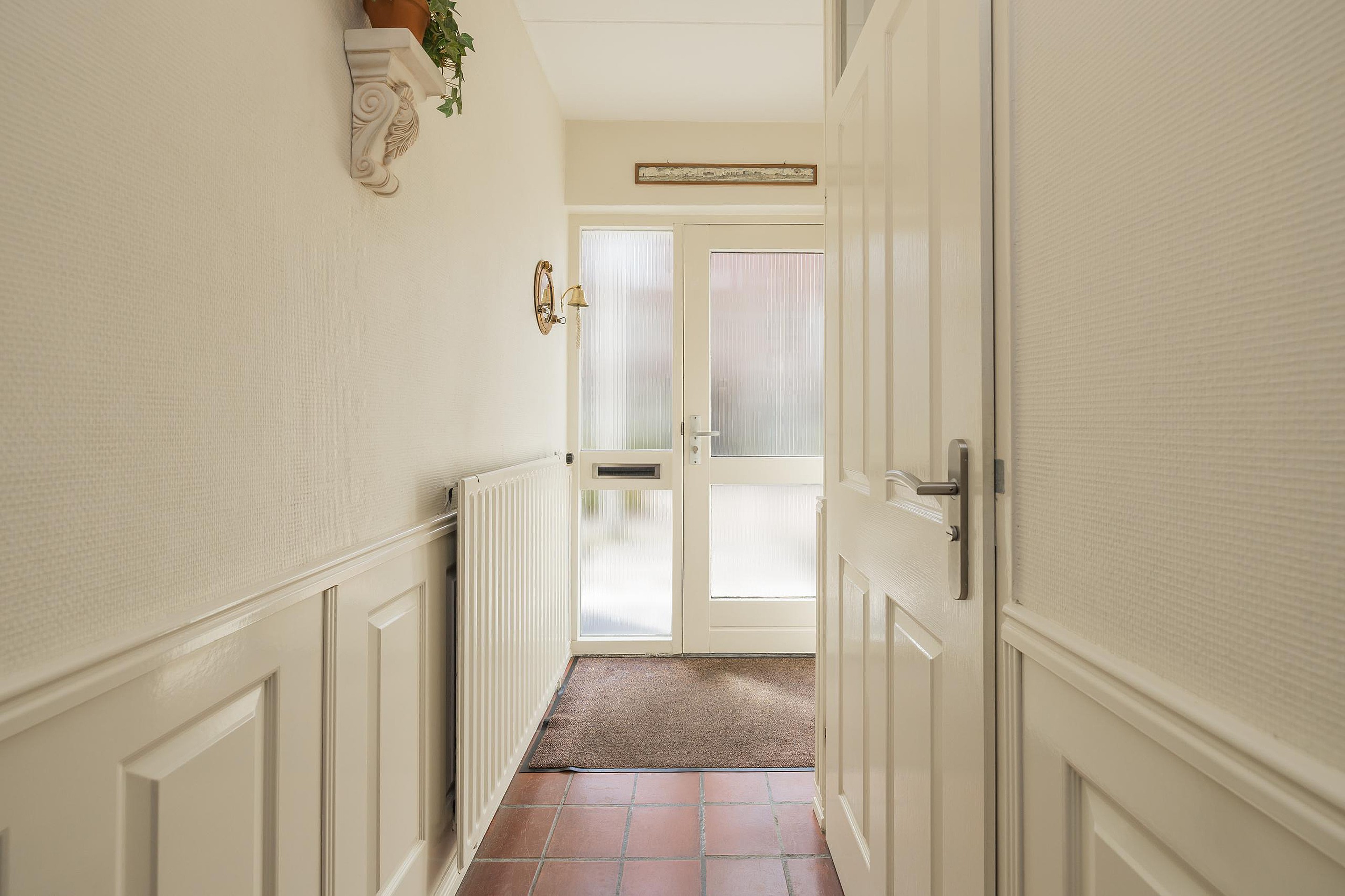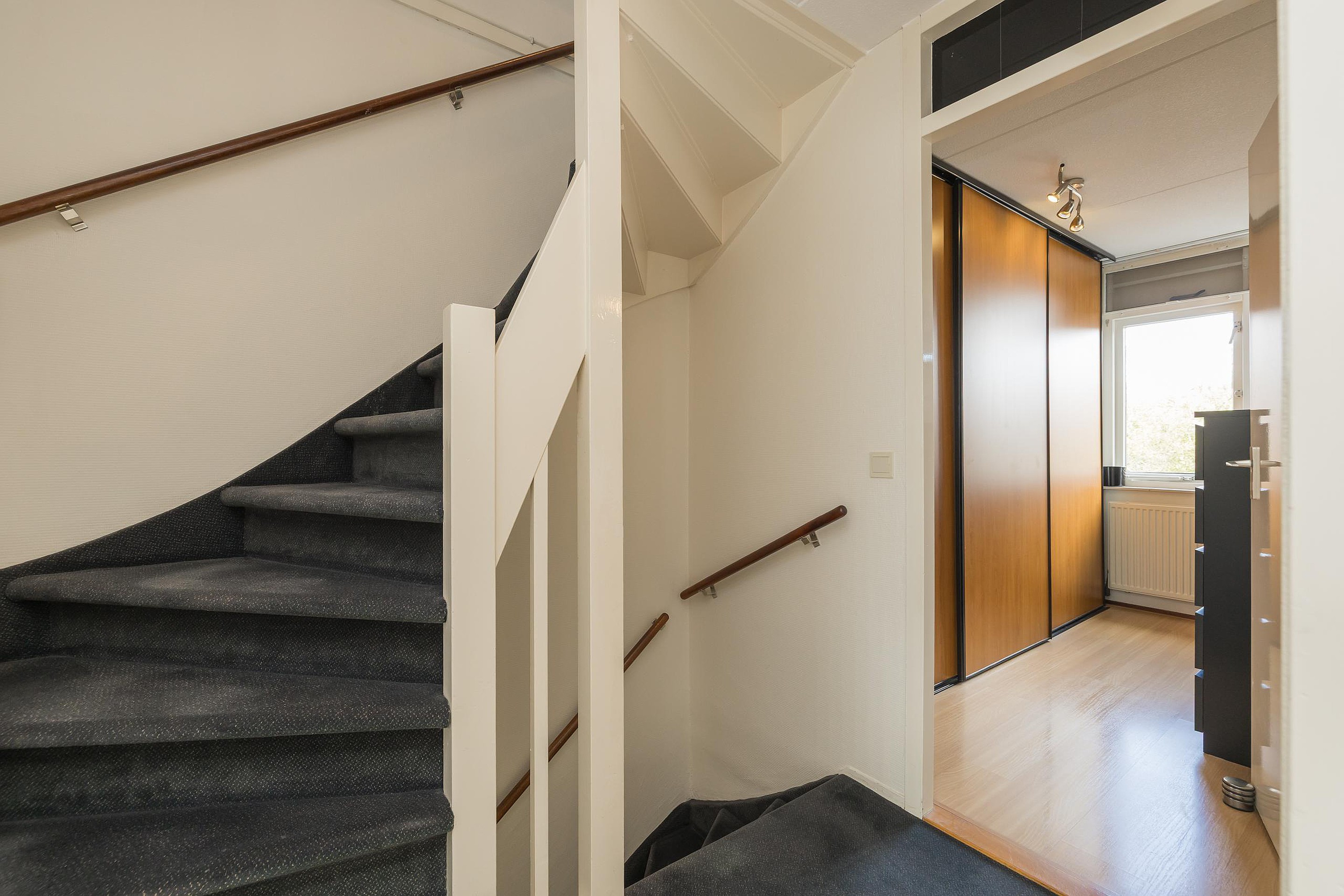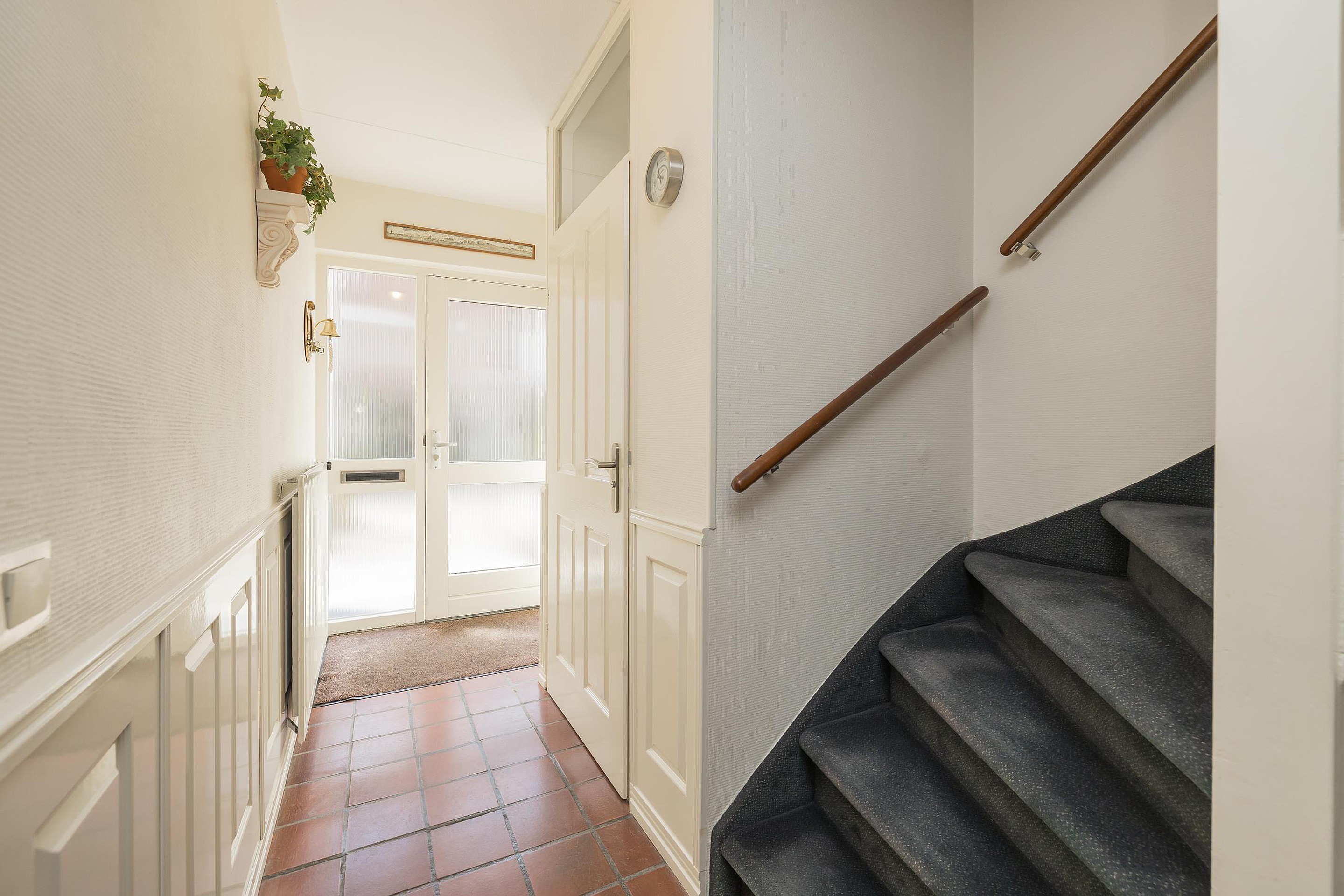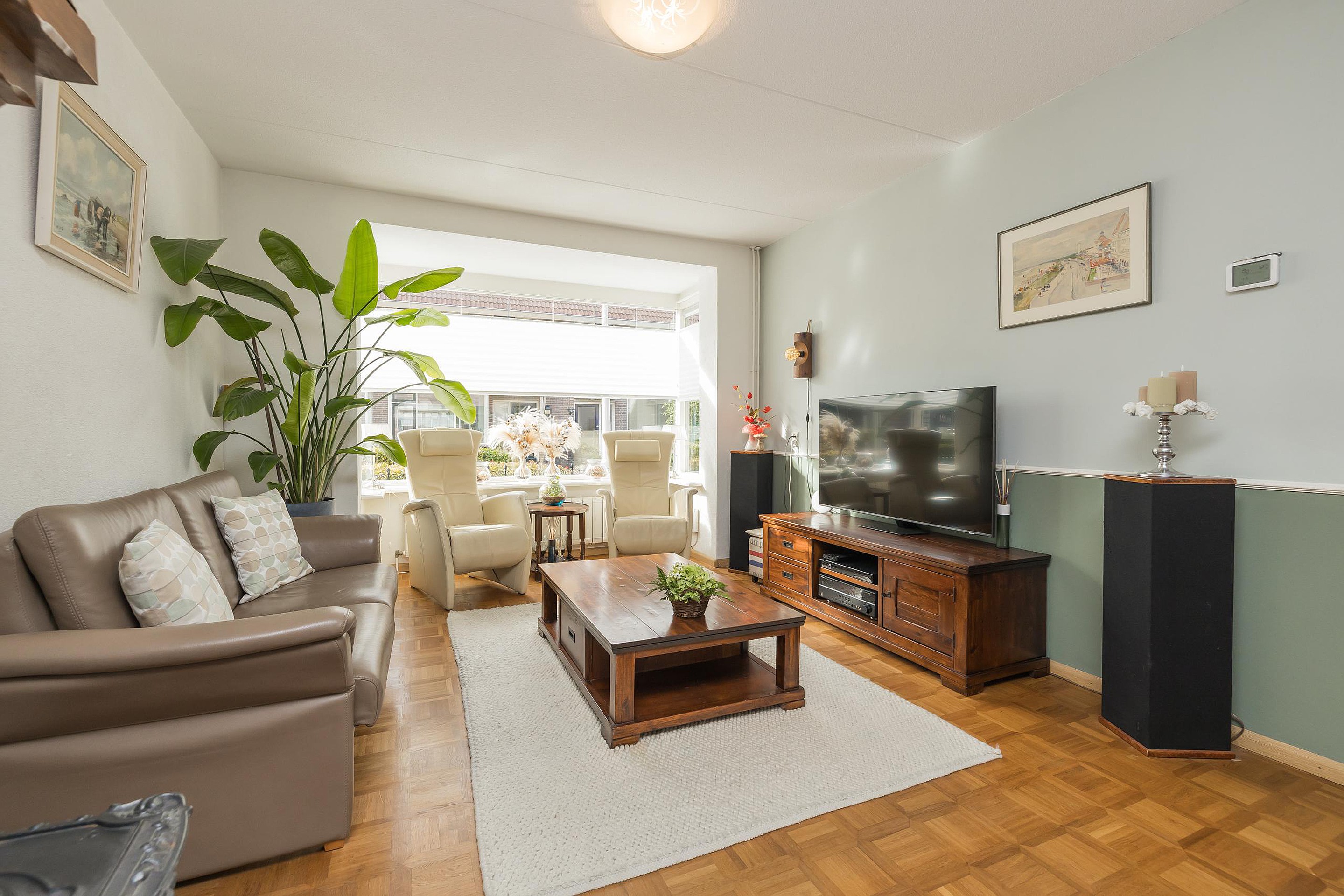 Entree, de hal met de meterkast, de keurig betegelde toiletruimte en de garderobe onder de trap. Een meer dan riante woonkamer die aan de achterzijde over de gehele breedte is uitgebouwd. De woonkamer heeft een Bruynzeel eiken parketvloer en een erker aan de voorzijde, deze is voorzien van een elektrisch bedienbaar sunscreen. De woonkamer heeft een open keuken die is voorzien van diverse inbouwapparatuur zoals een hete lucht oven, een koelkast, een gaskookplaat met een wok brander, een vaatwasser en een afzuigkap. Via de openslaande deuren is de fraai betegelde achtertuin bereikbaar met een stenen berging. Via de tuindeur komt u op het speelveld, een ideale speelplek voor de kinderen!