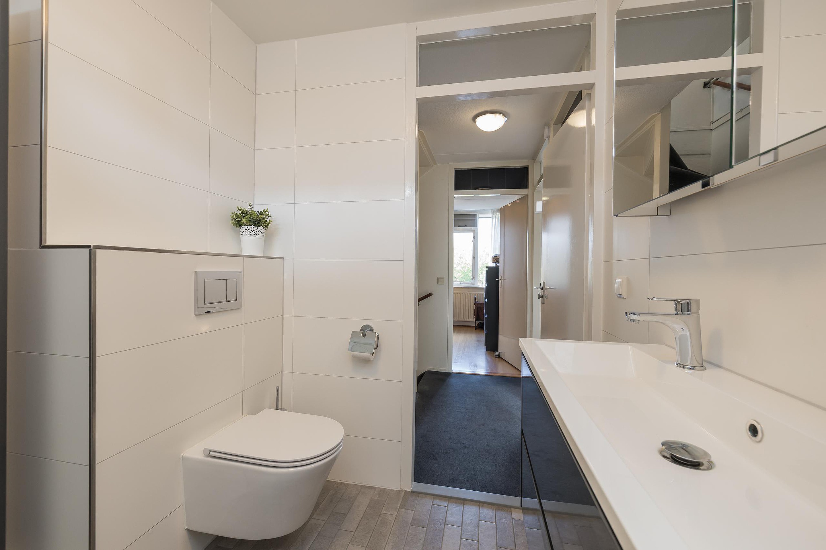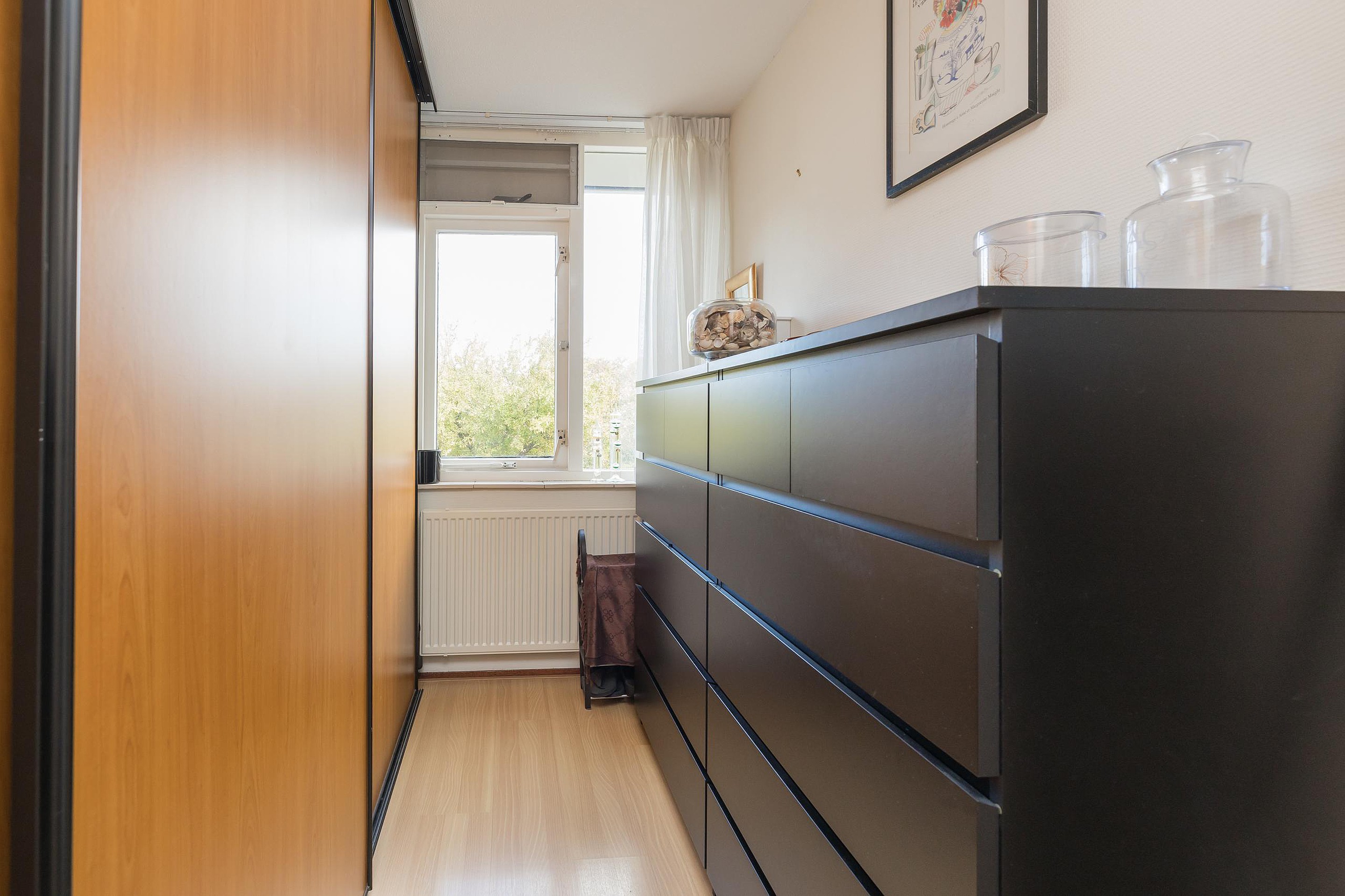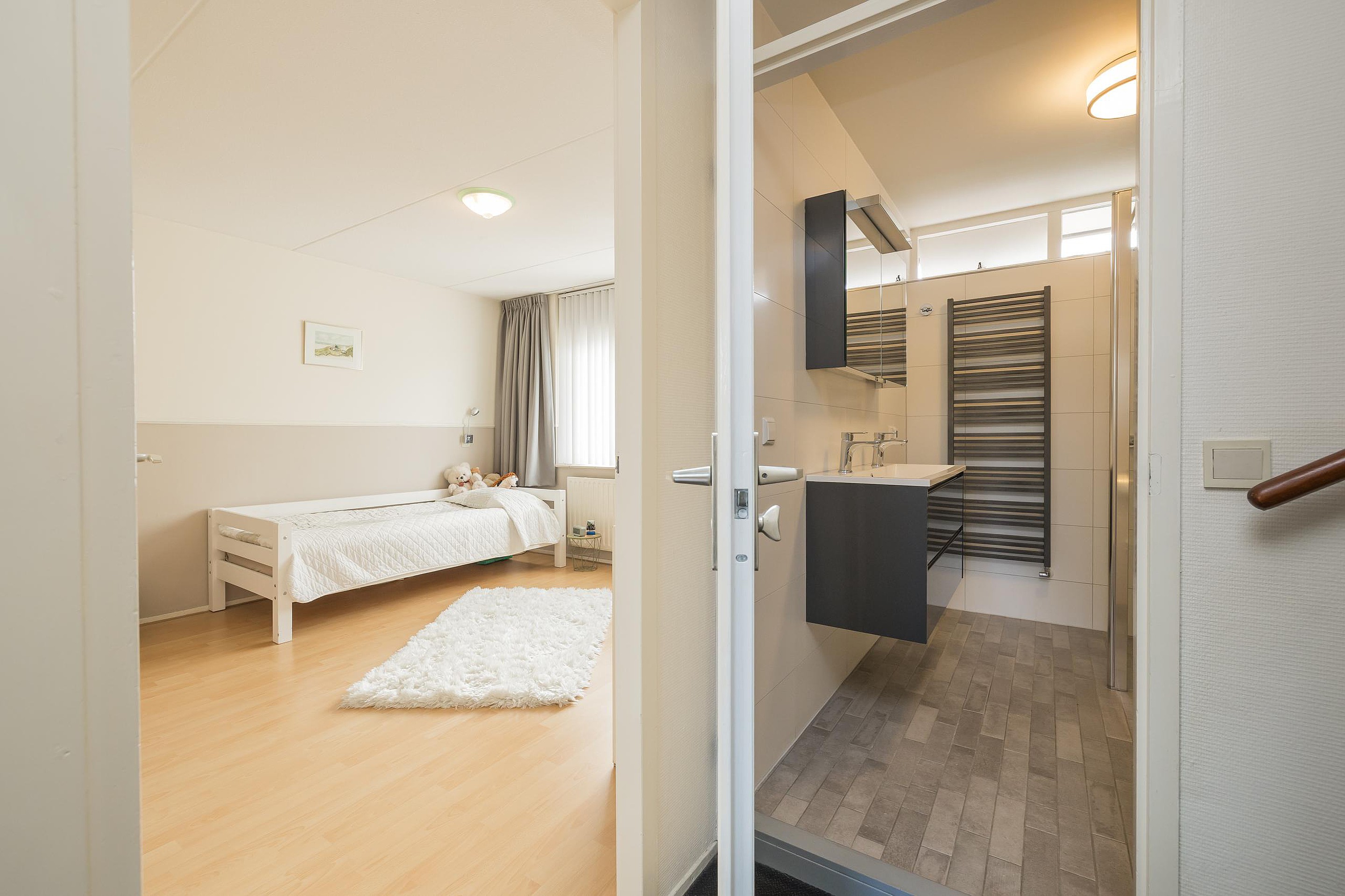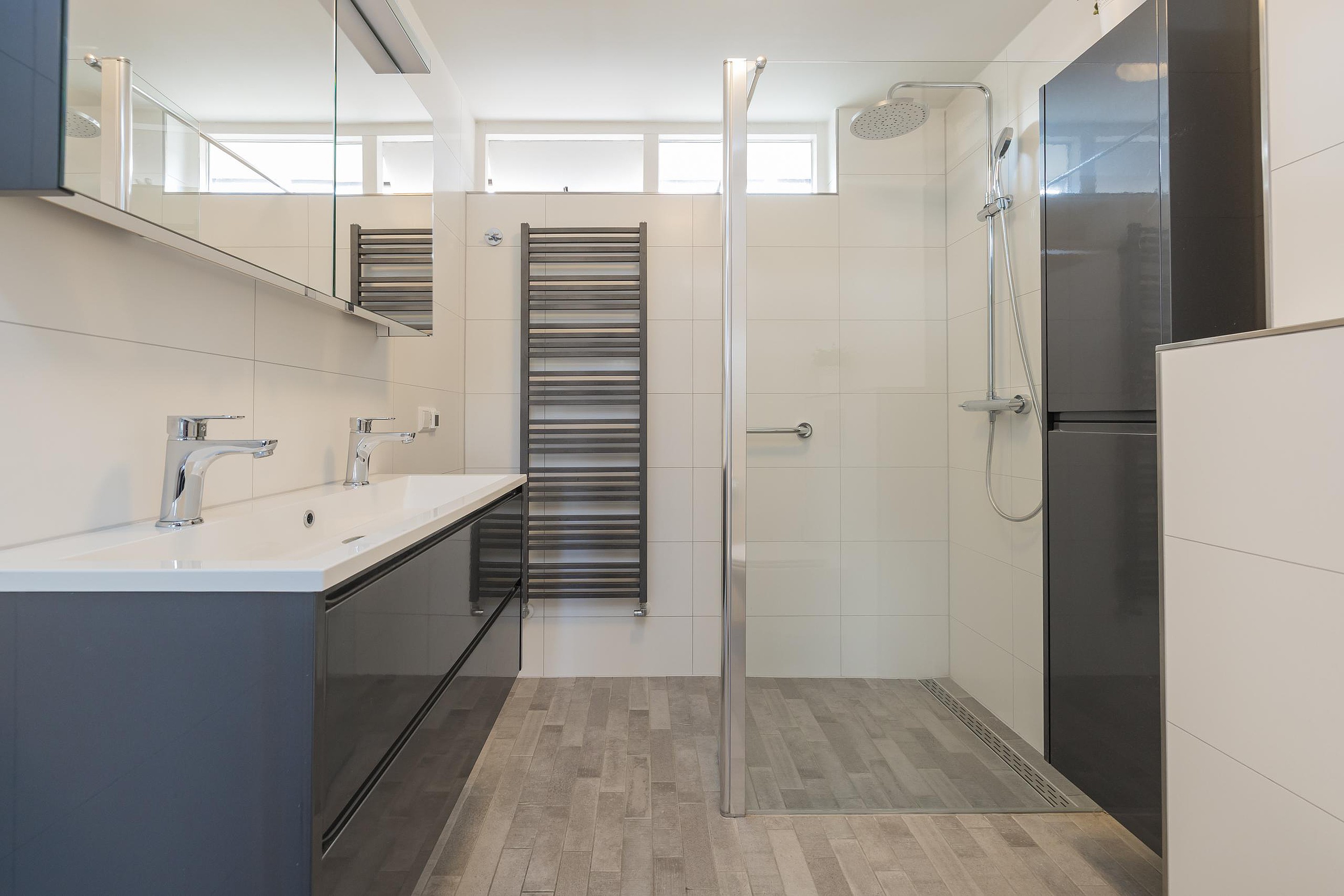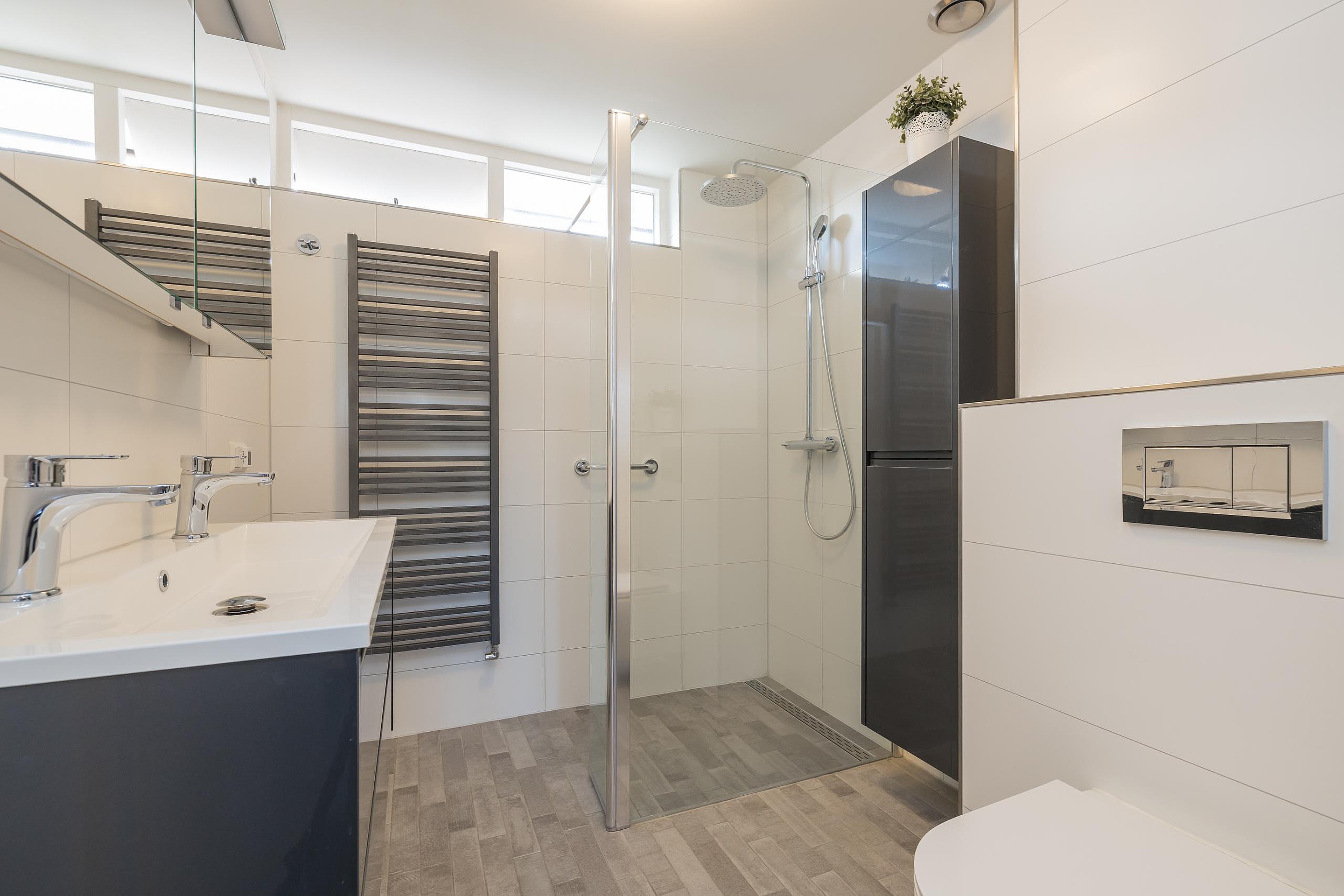 Overloop, aan de voorzijde de eerste slaapkamer met een laminaatvloer. De badkamer is echt een plaatje! Keurig betegeld en voorzien van een inloopdouche, een wandcloset, een wastafelmeubel, een handdoekradiator en comfortabele vloerverwarming. De (ouder) slaapkamer aan de achterzijde is aangenaam ruim en biedt een mooi uitzicht over de achtertuin. De derde slaapkamer is voorzien van een kast met schuifpanelen.