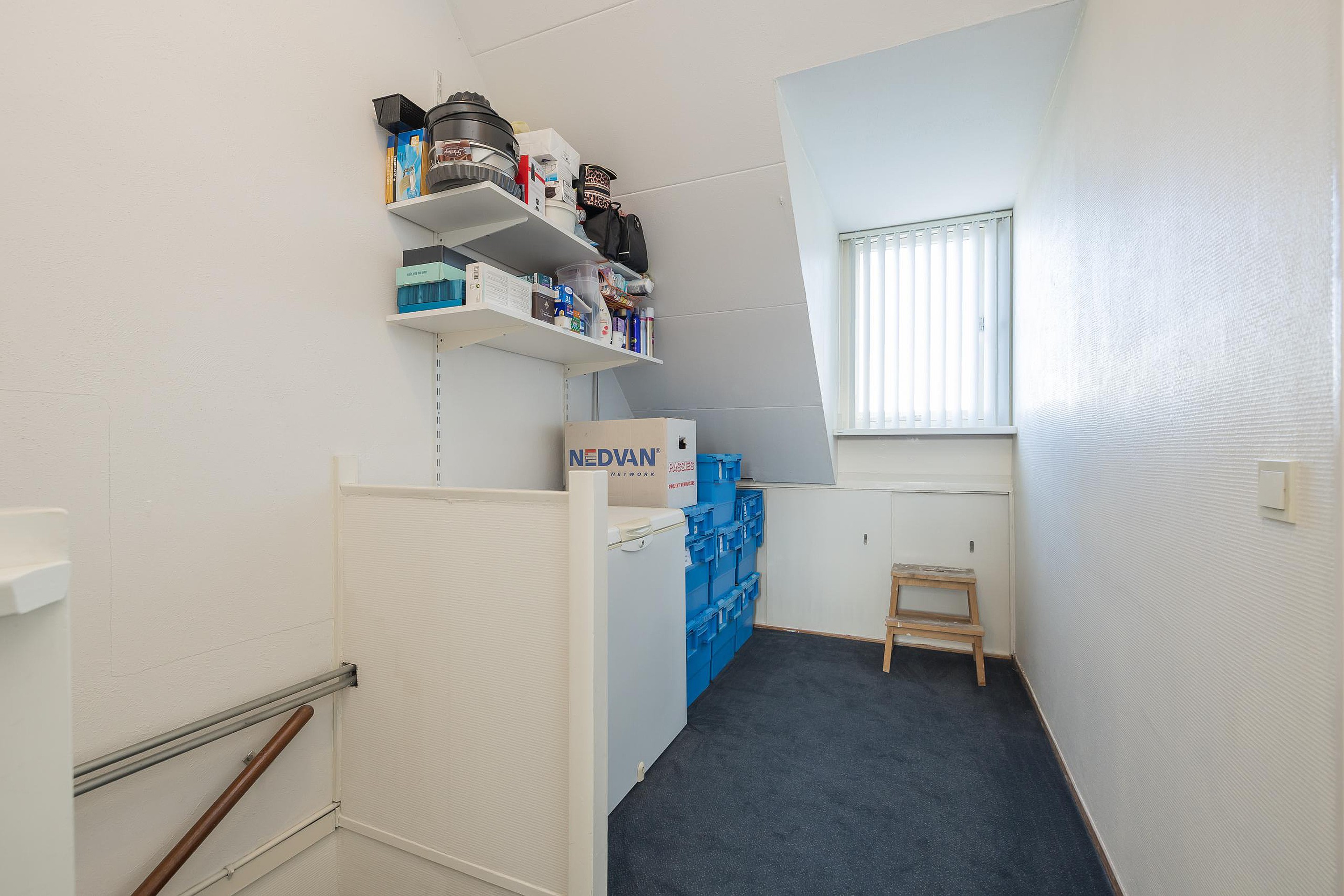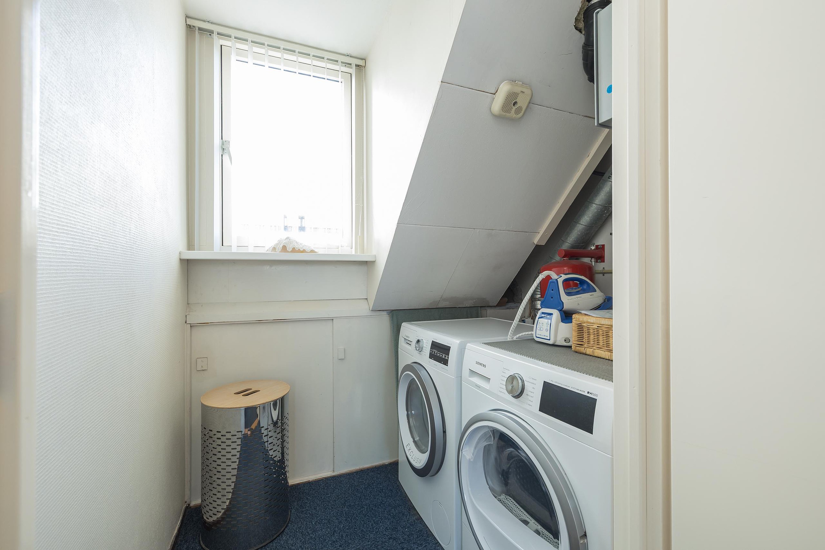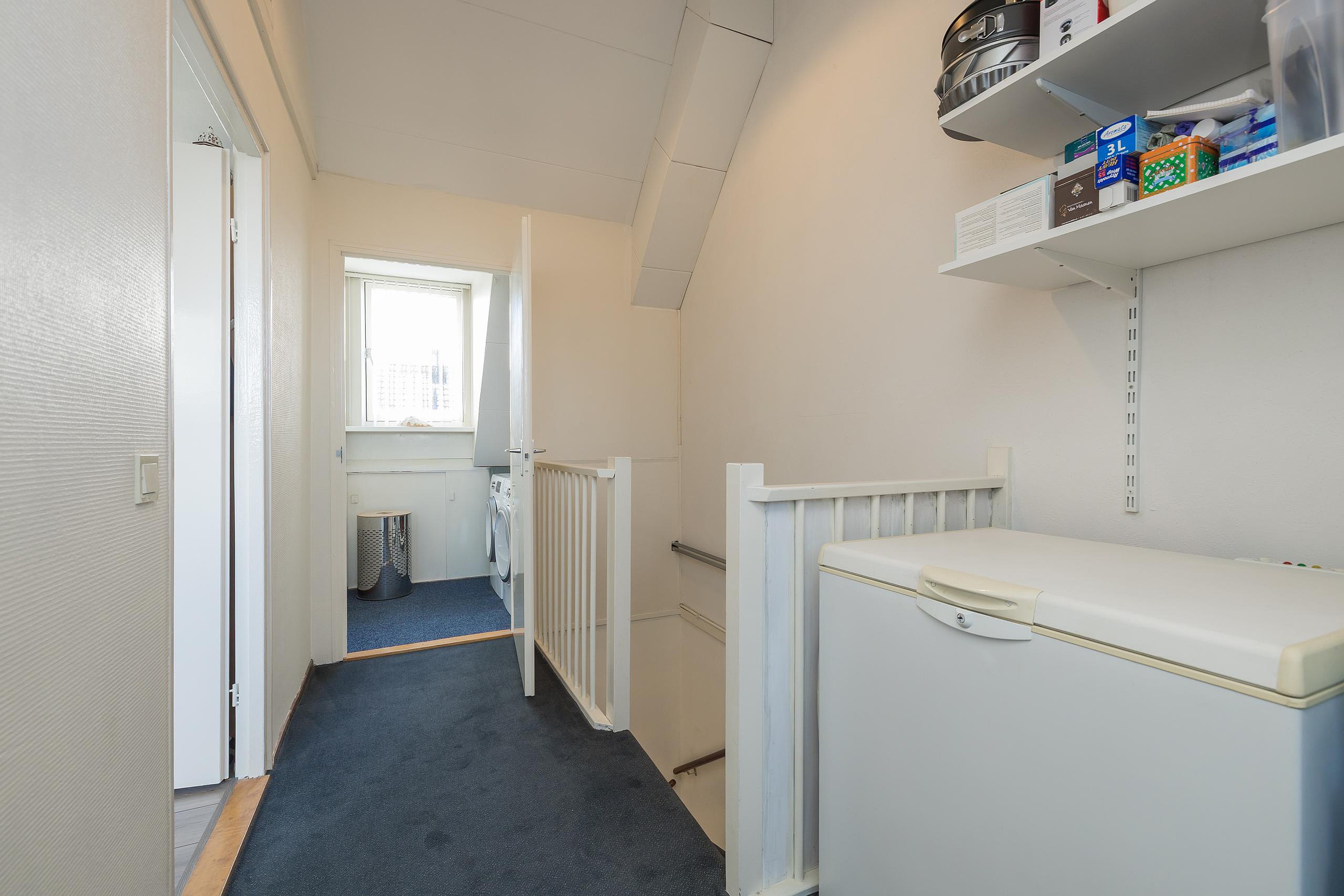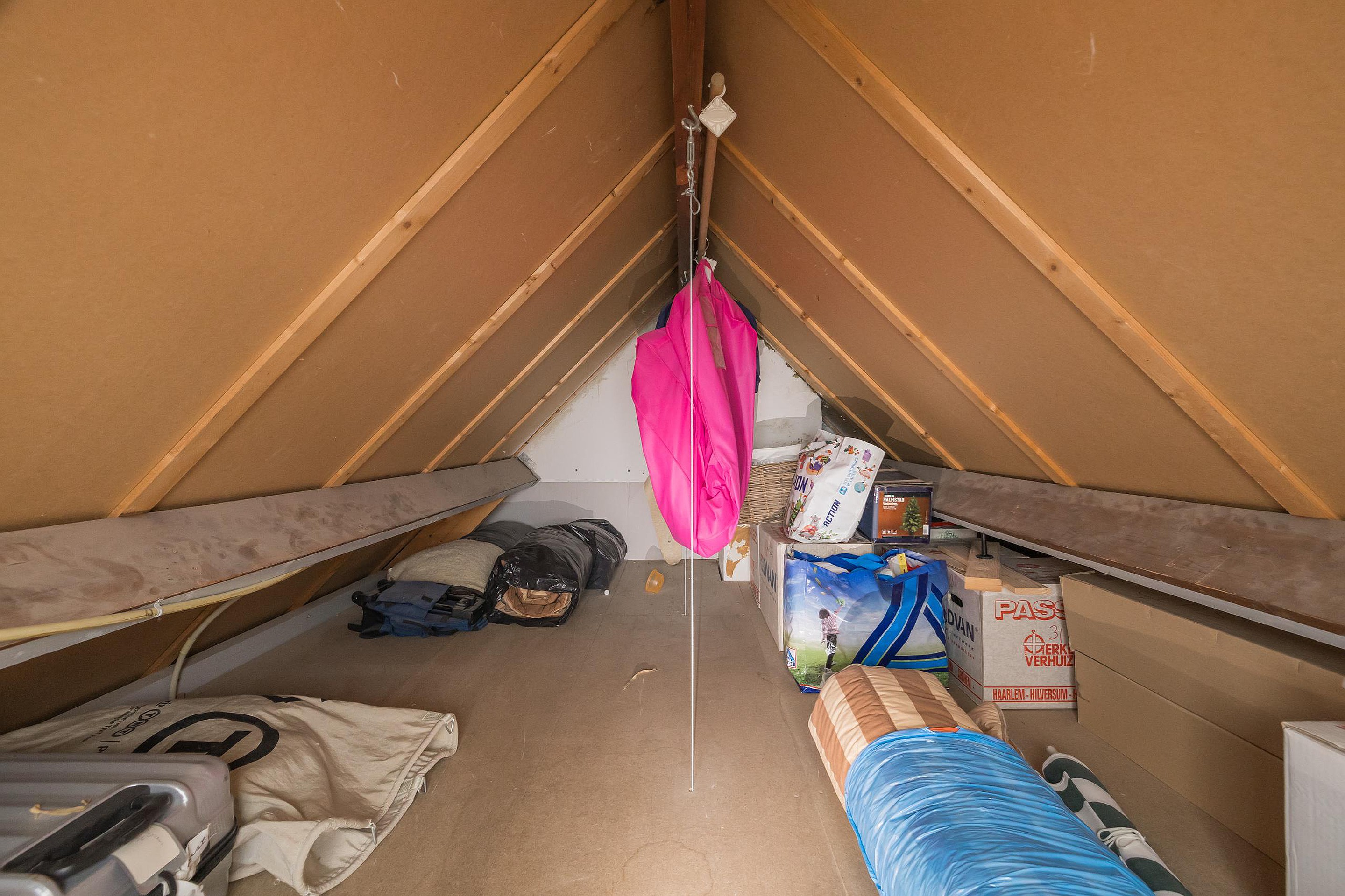 Overloop met aan de voorzijde de wasruimte met aansluitingen voor de wasapparatuur, de opstelling van de CV-ketel (Nefit 2021) en de ventilatie-unit. Op de overloop is er bergruimte aan zowel de voor- als aan de achterzijde. Er is nog een ruime bergzolder, deze is met een losse trap te bereiken. Tenslotte de zolderkamer die aan beide zijden is voorzien van een dakkapel en bergruimte achter de schotten.