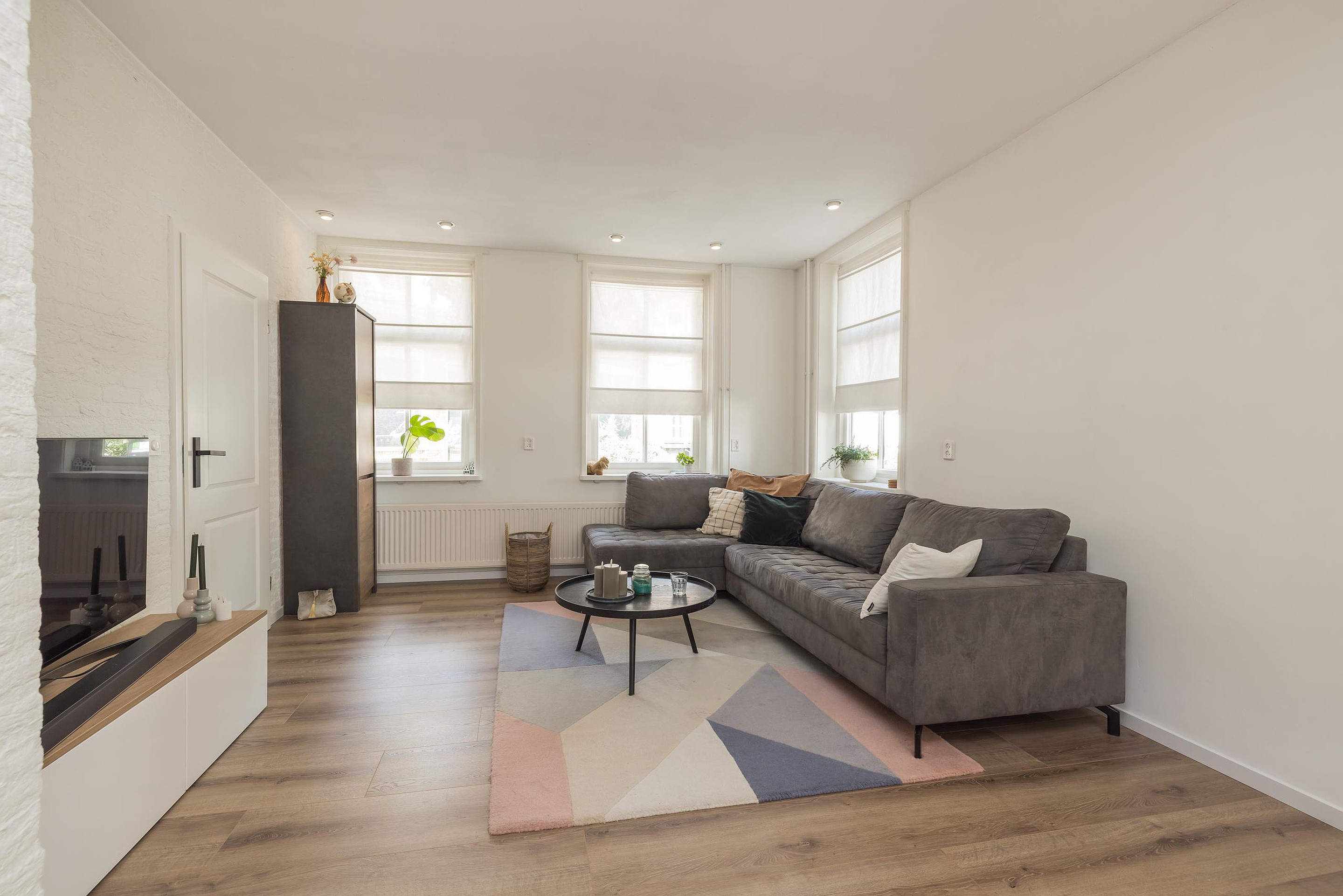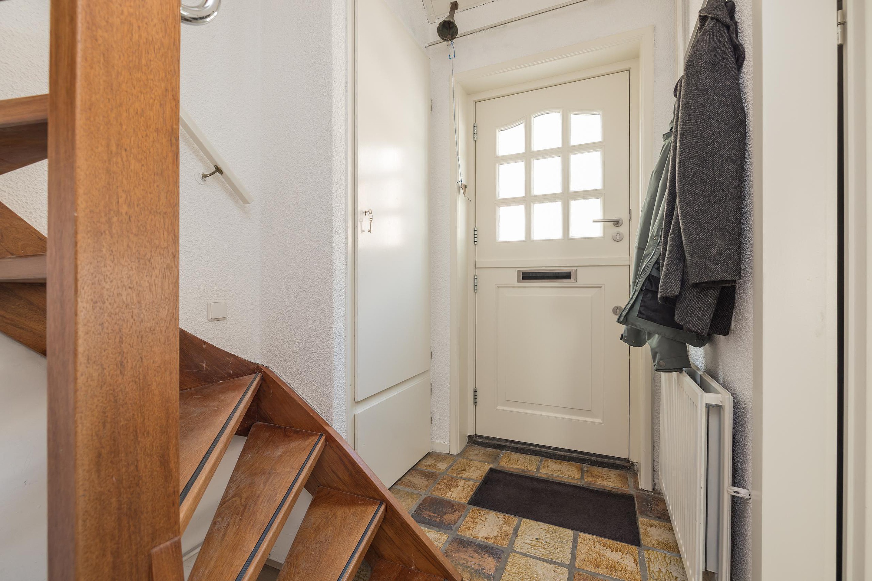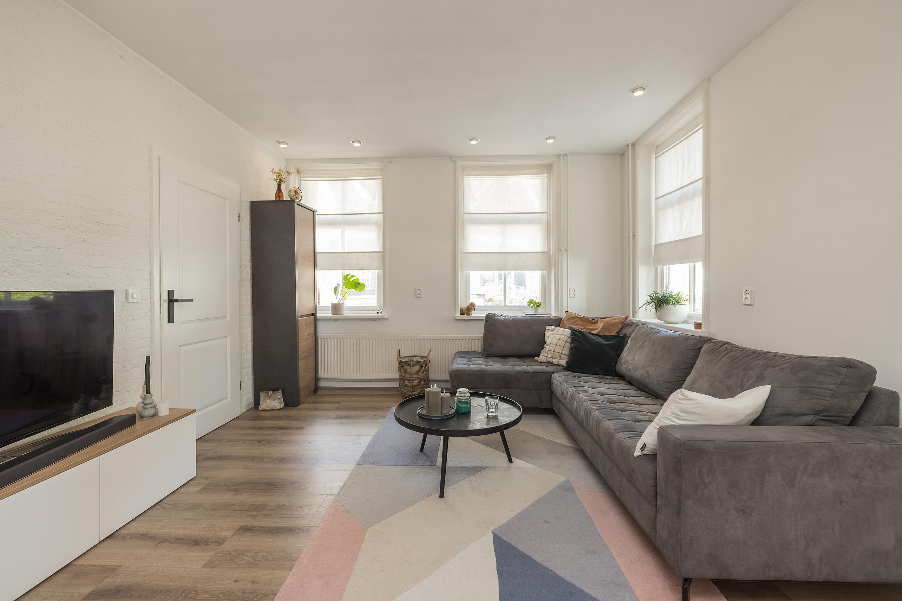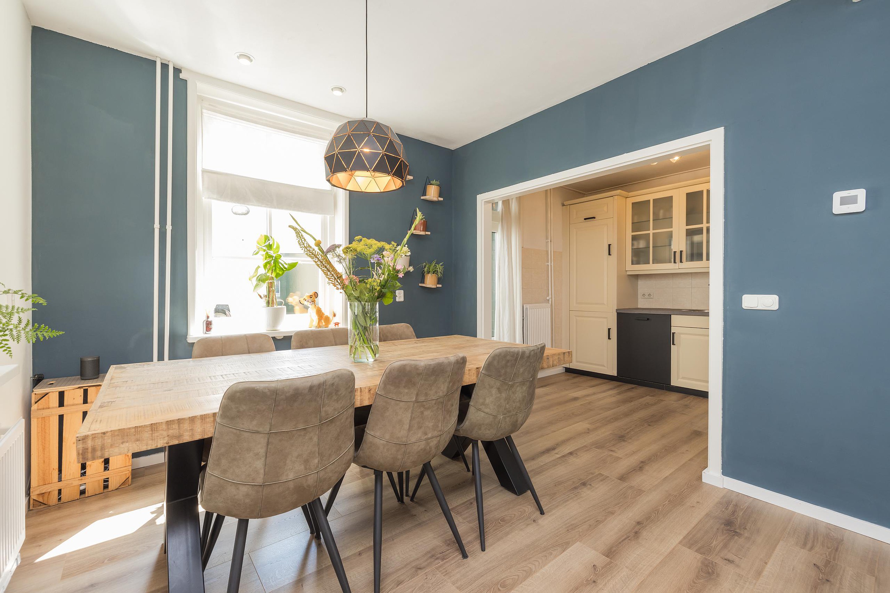 Entree, een ruime hal met de meterkast en de toiletruimte met een staand toilet, een fonteintje en mechanische ventilatie. Een bijzonder sfeervolle woonkamer met kozijnen voorzien van vlakken verdeling. De fraaie keuken is gelegen aan de achterzijde en is voorzien van 4-pits gaskookplaat, een afzuigschouw, een vaatwasser, een koelkast, een vriezer en een close-in-boiler. De achterplaats is zowel via de keuken als via de poortdeur te bereiken, hier vindt u een grote berging met de aansluitingen voor de wasapparatuur. Het kozijn in de achtergevel is voorzien van een sunscreen.