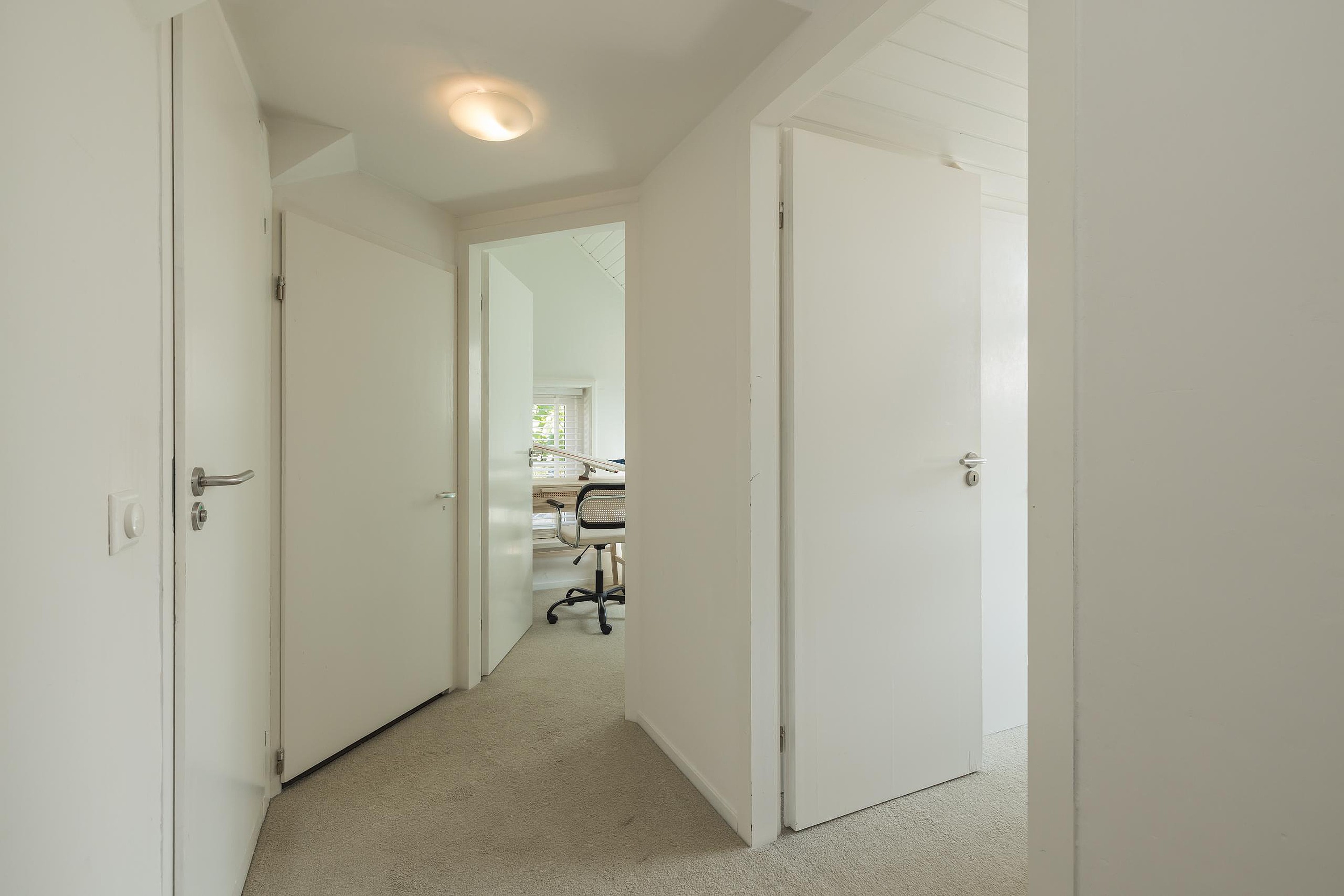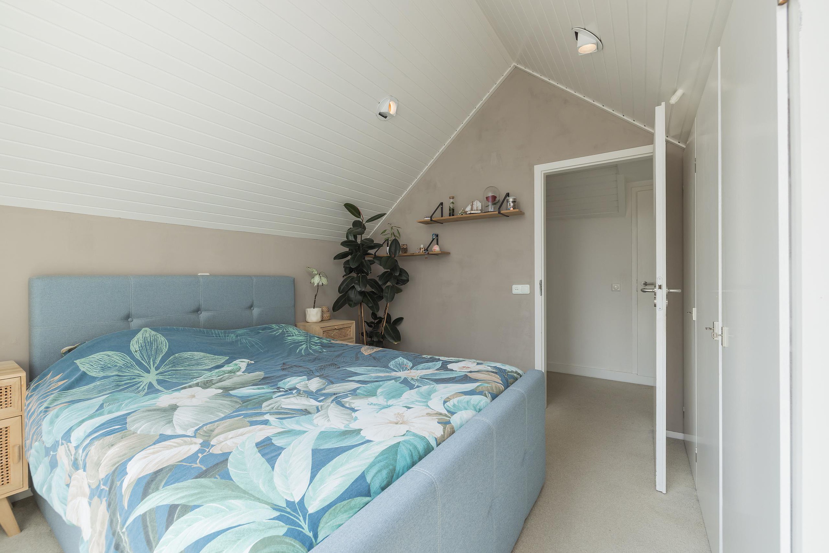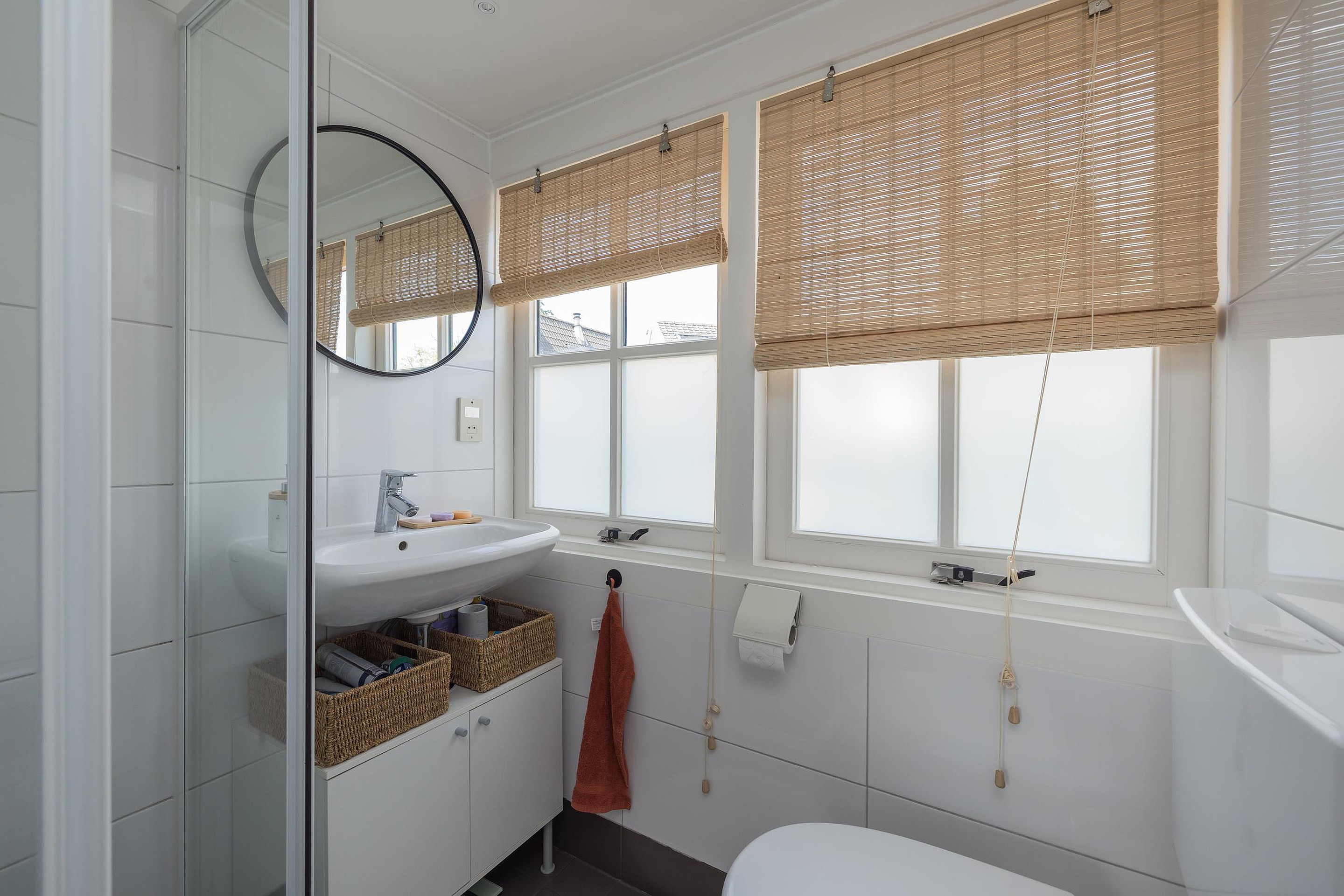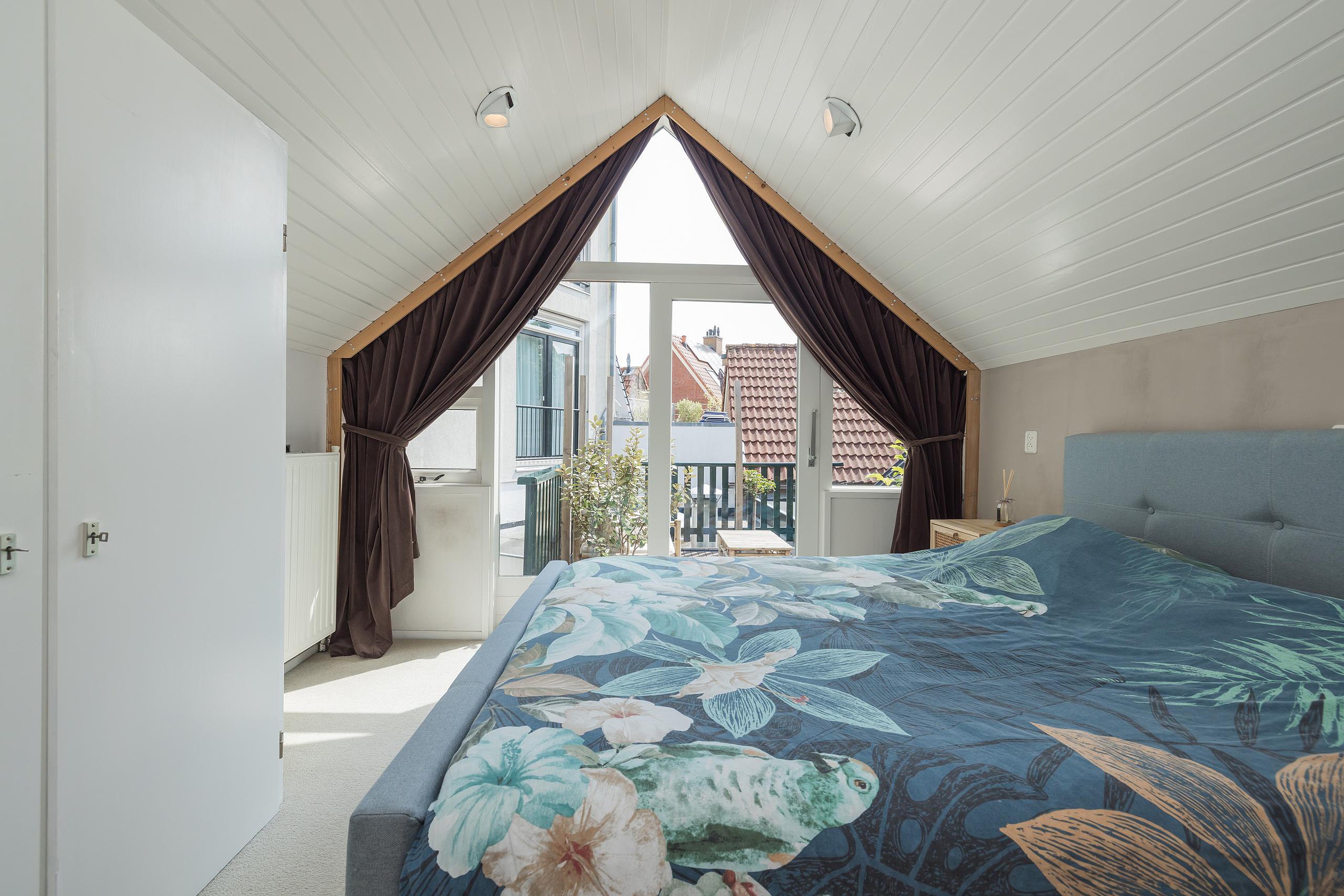 Overloop met een rookmelder en ingebouwde kastruimte. De in lichte kleuren uitgevoerde badkamer is gelegen aan de voorzijde en is voorzien van een douchecabine, een wastafel, verwarming en een staand toilet. Er is nog een ruime berging met de opstelling van de cv-ketel (ATAG 2021). Aan de achterzijde ligt de eerste ruime slaapkamer met een schuifpui naar het prachtige dakterras, hier is het werkelijk heerlijk vertoeven! Ten slotte nog een tweede slaapkamer met een groot dakraam.