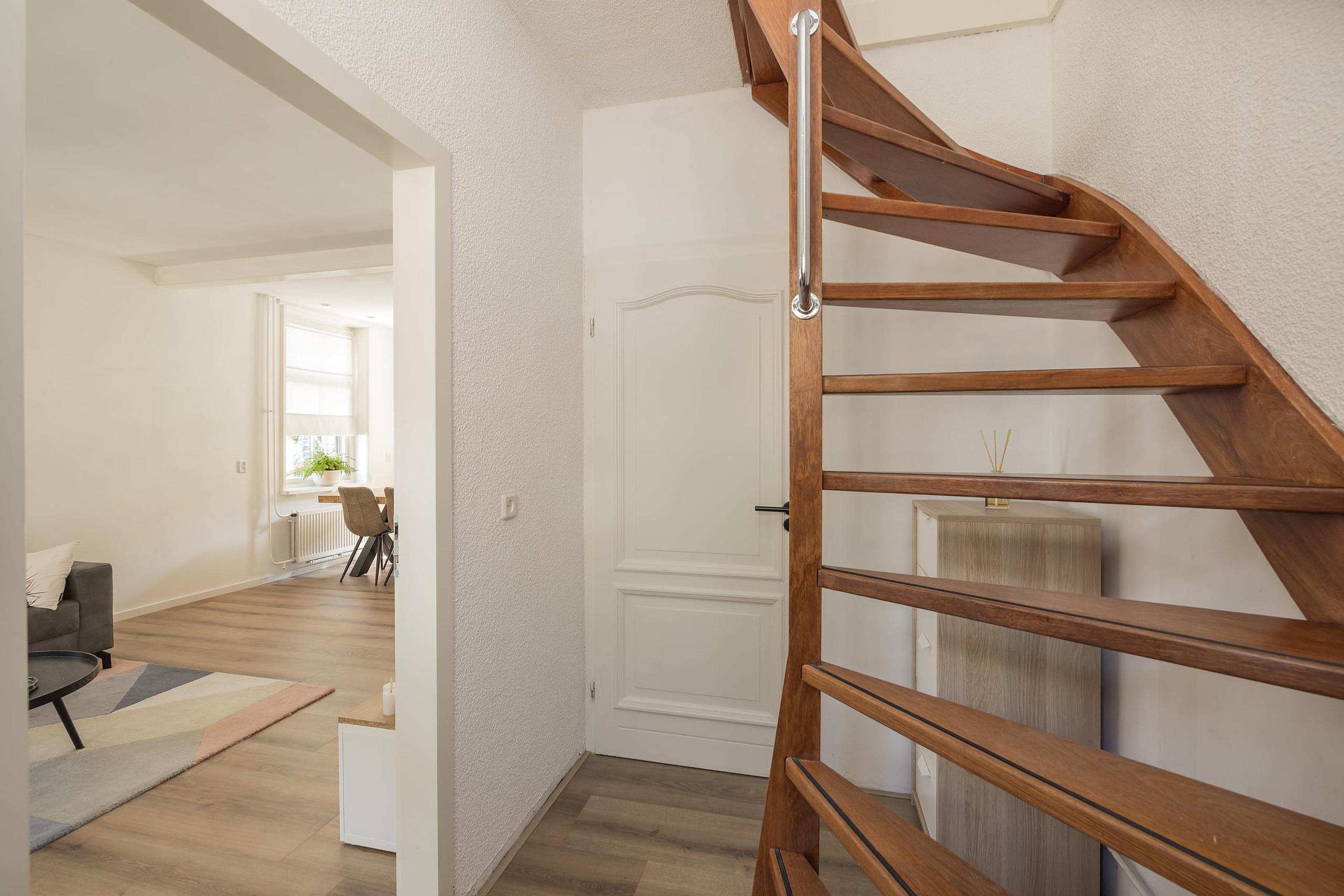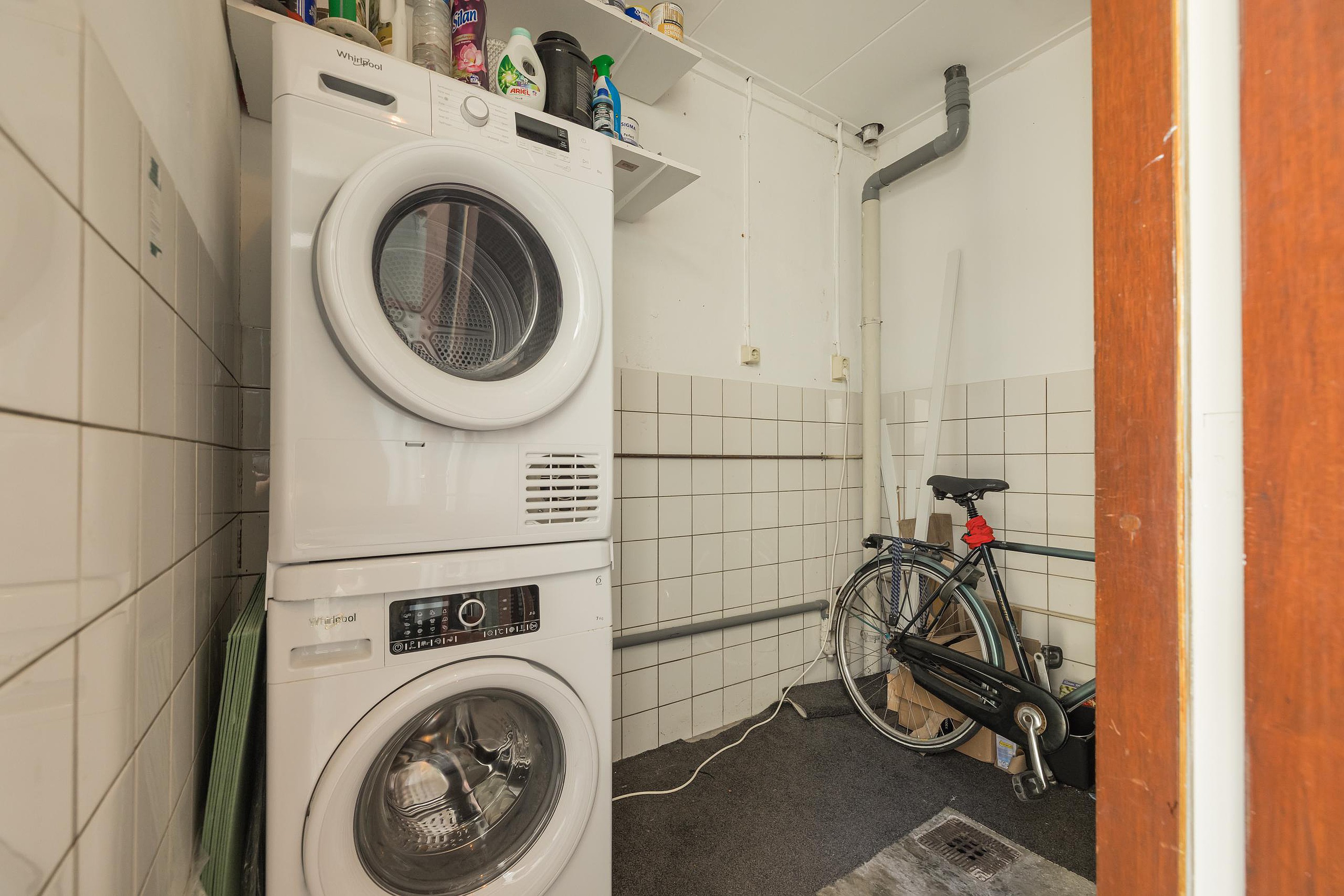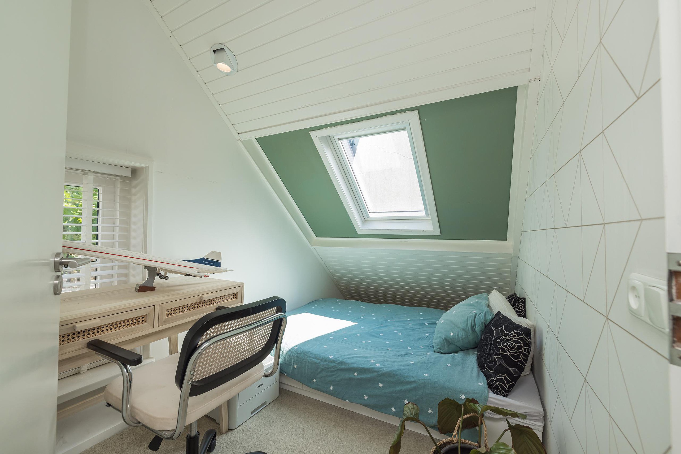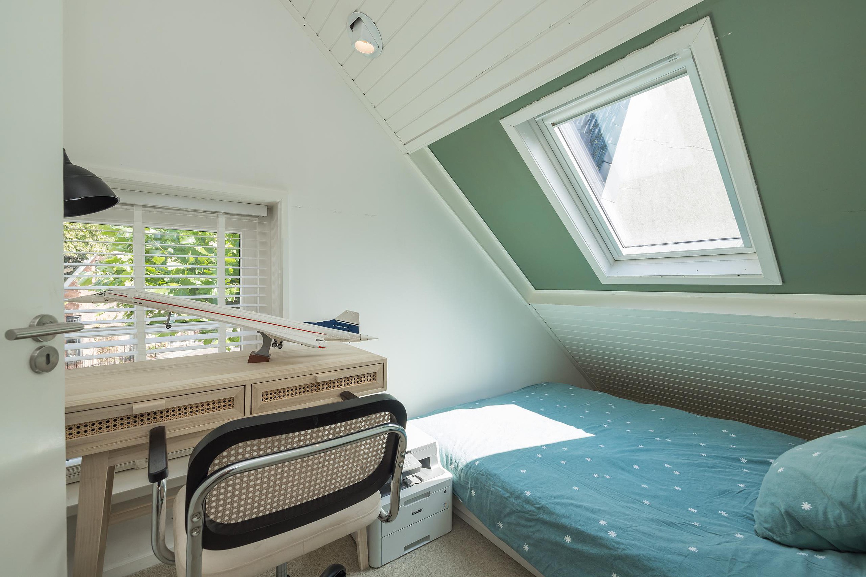 Overloop met een rookmelder en ingebouwde kastruimte. De in lichte kleuren uitgevoerde badkamer is gelegen aan de voorzijde en is voorzien van een douchecabine, een wastafel, verwarming en een staand toilet. Er is nog een ruime berging met de opstelling van de cv-ketel (ATAG 2021). Aan de achterzijde ligt de eerste ruime slaapkamer met een schuifpui naar het prachtige dakterras, hier is het werkelijk heerlijk vertoeven! Ten slotte nog een tweede slaapkamer met een groot dakraam.