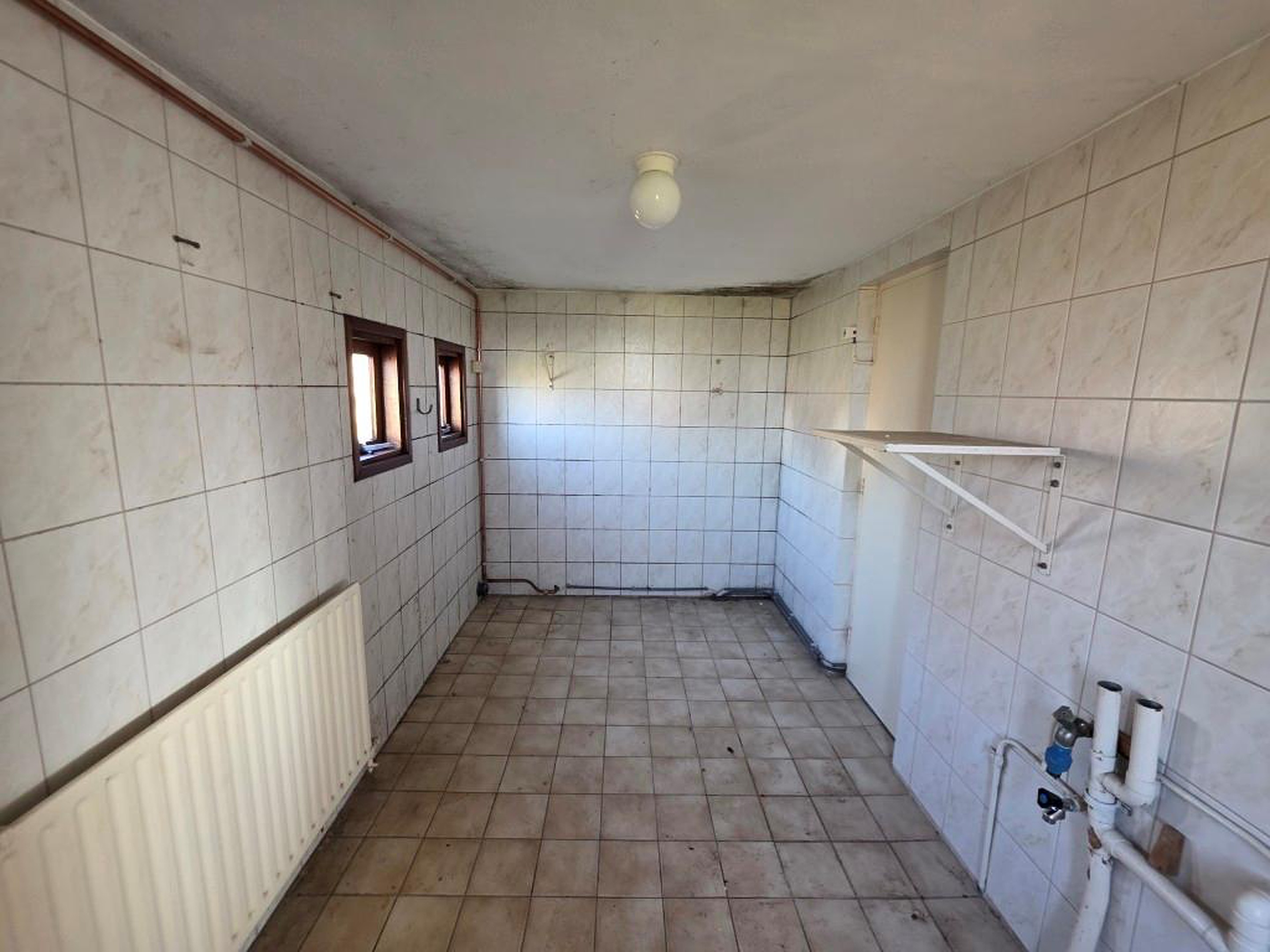 De woning is op de begane grond voorzien van een hal, woonkamer, open keuken en bijkeuken. Op de verdieping treft u twee grote slaapkamers en een badkamer.
