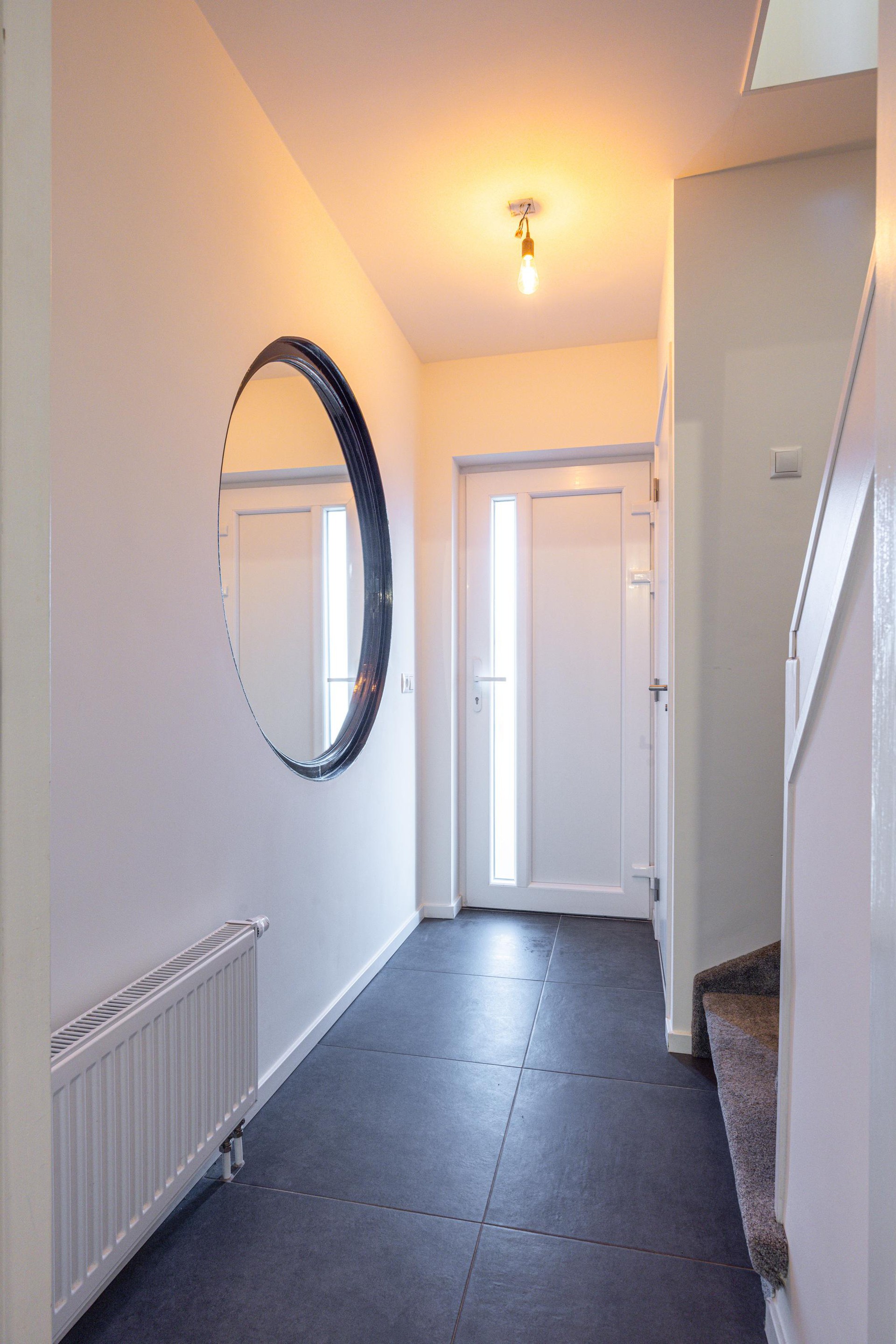 Begane grond Via de entree betreed je de ontvangsthal, die is afgewerkt met een nette tegelvloer. In de hal bevindt zich het zwevend toilet. Vanuit de hal loop je door naar de woonkamer.