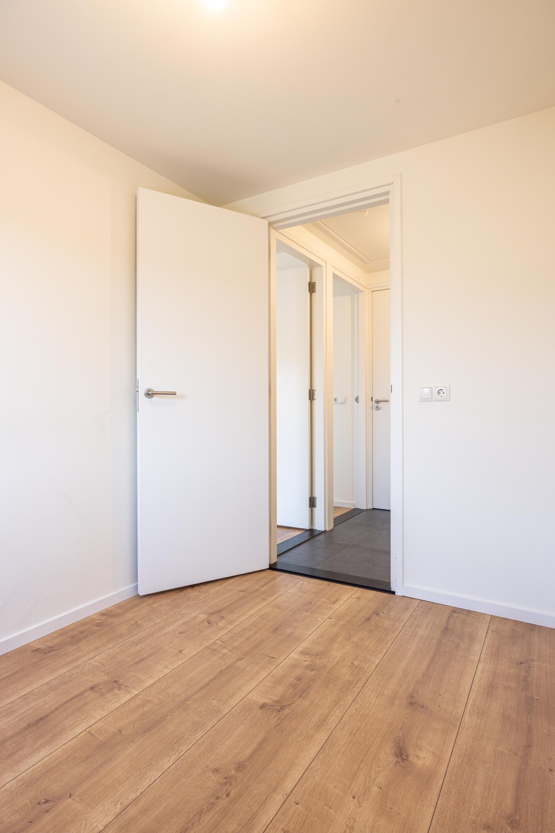 Eerste verdieping Op de eerste verdieping geeft de overloop toegang tot drie slaapkamers en de badkamer. De slaapkamers zijn allemaal afgewerkt met een laminaatvloer en beschikken over veel daglicht, wat zorgt voor een prettige en lichte uitstraling. Daarnaast zijn de kamers voorzien van kunststof kozijnen met HR++ beglazing, rolluiken en op maat gemaakte horren, wat bijdraagt aan een comfortabel binnenklimaat en extra privacy.