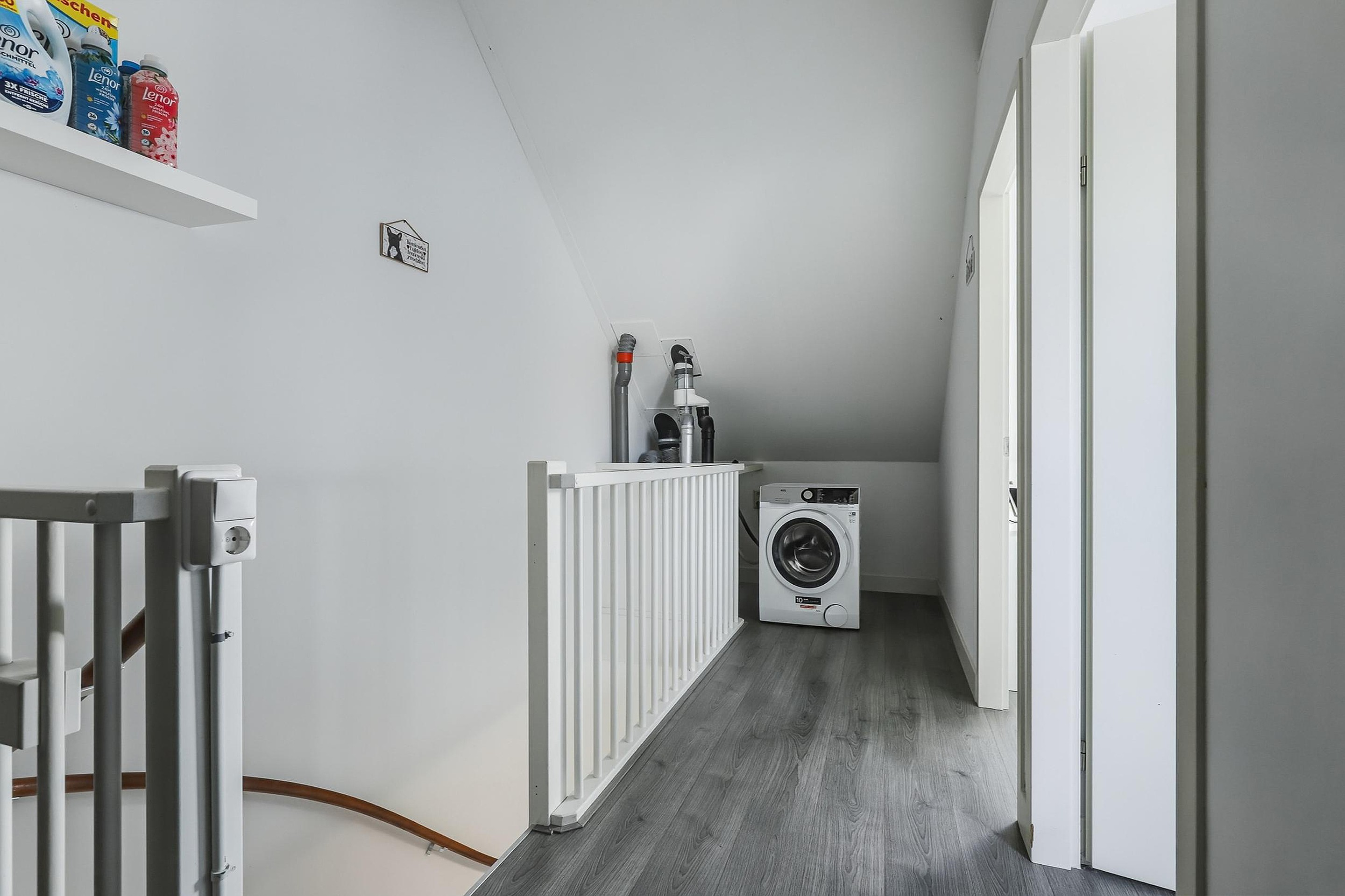 Overloop met cv-opstelling en mechanische ventilatie, wasmachine- en drogeraansluiting, en twee lichte en strak afgewerkte slaapkamers.