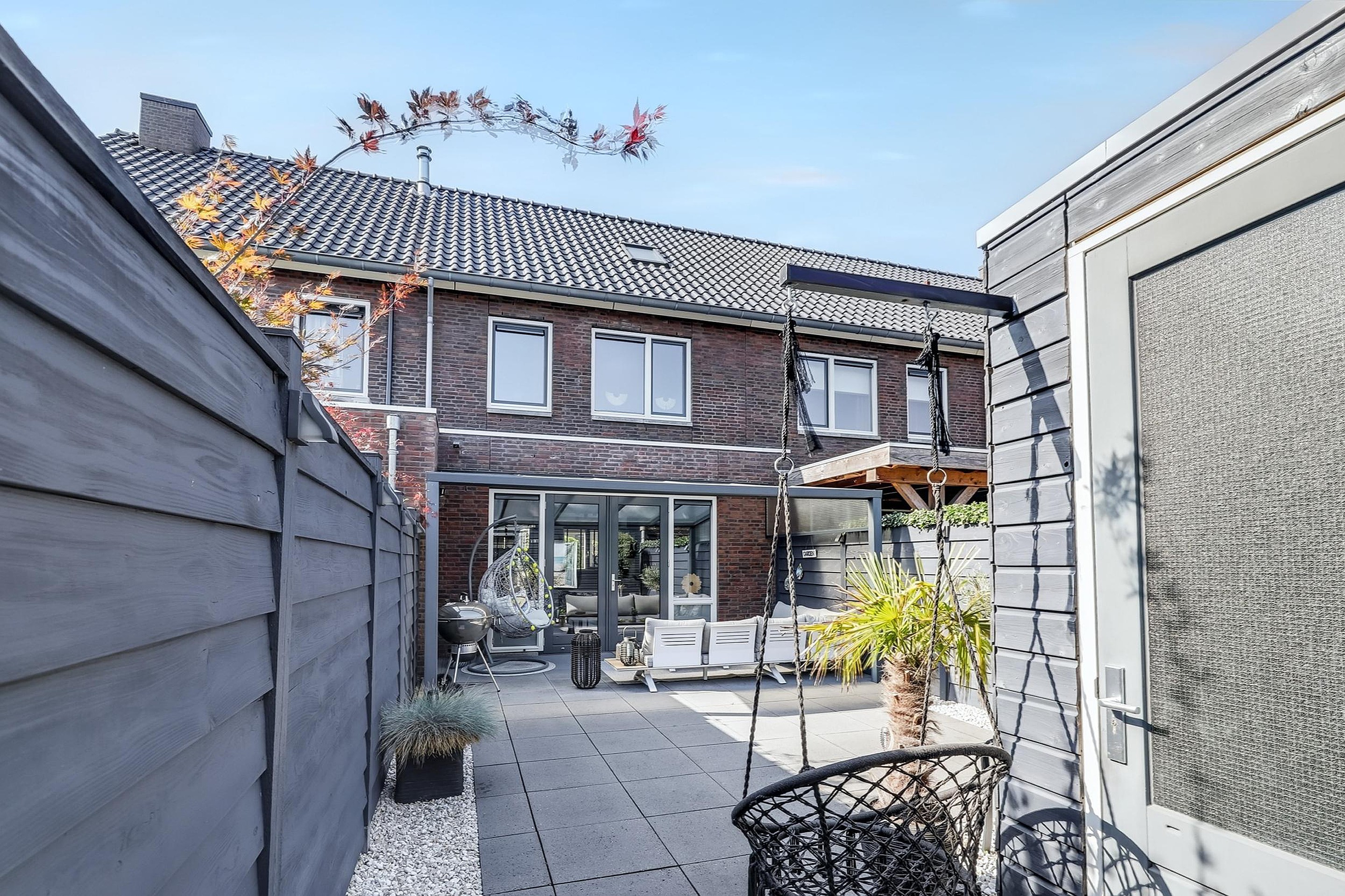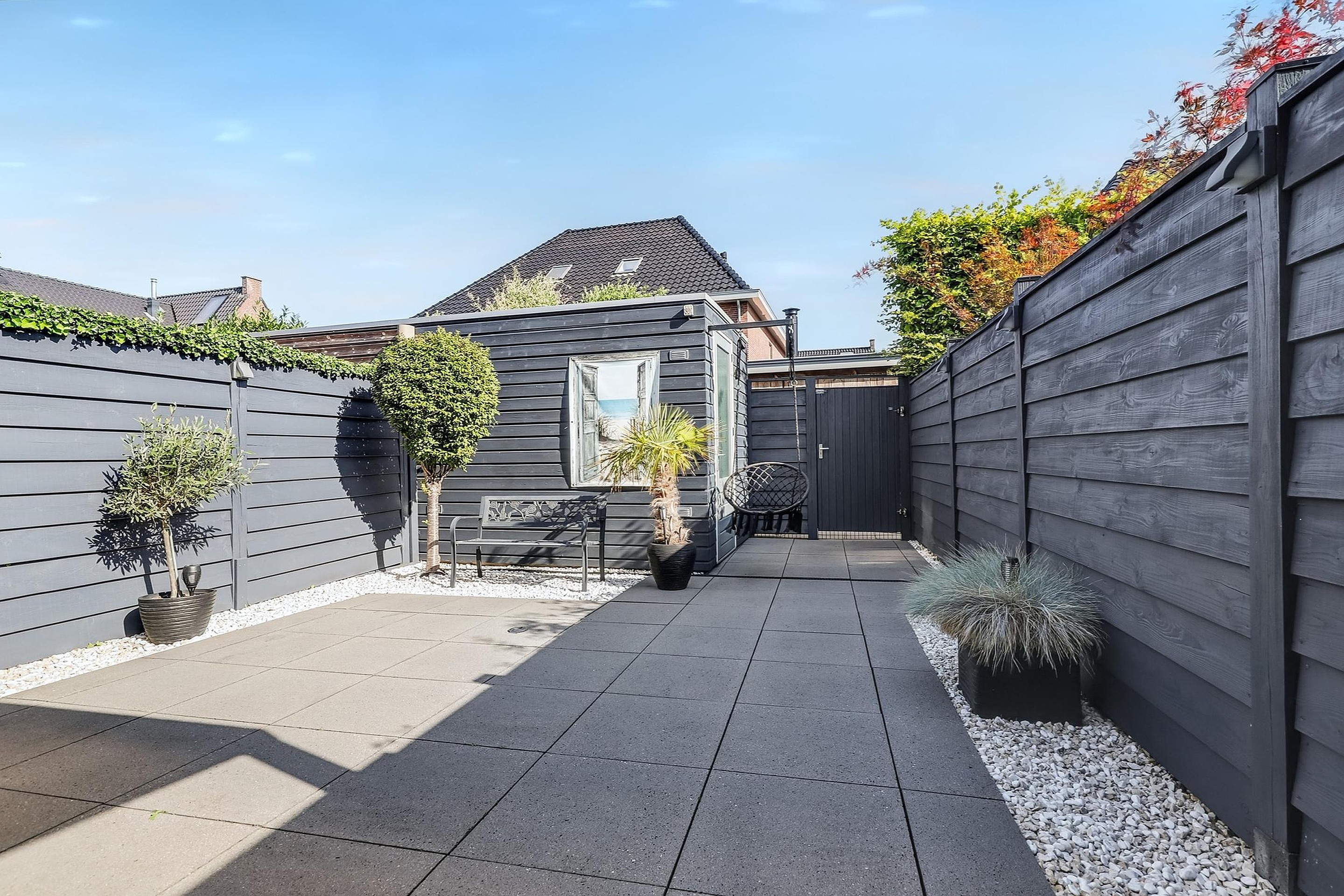 De achtertuin is op het noorden gesitueerd, fraai aangelegd en onderhoudsarm. De tuin met achterom beschikt over een houten berging en een aangebouwde overkapping aan de achtergevel.