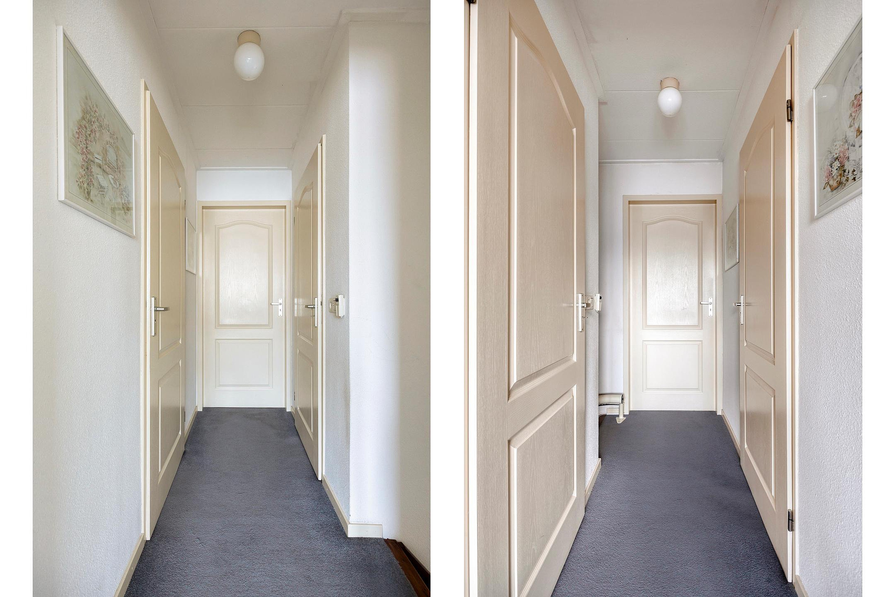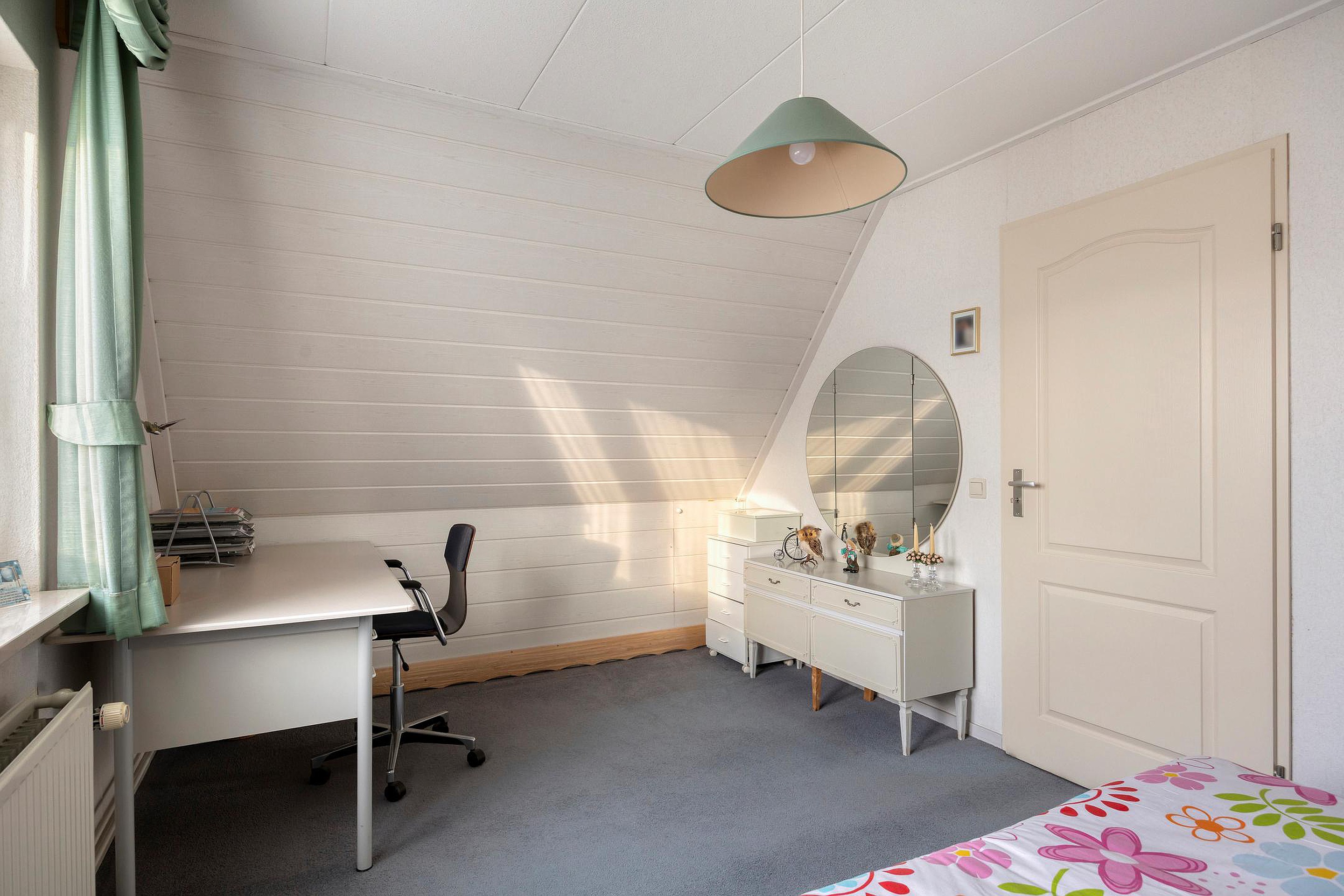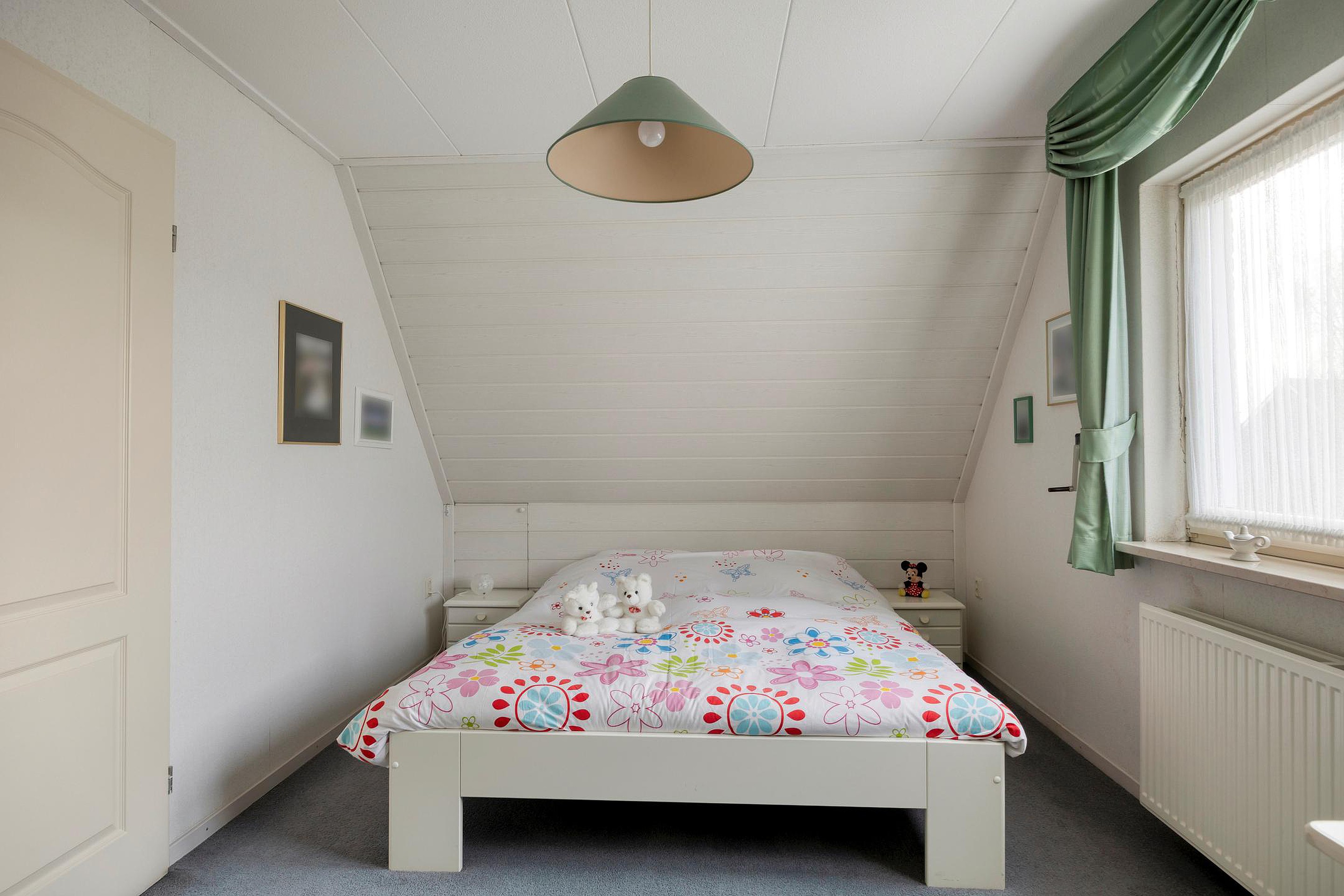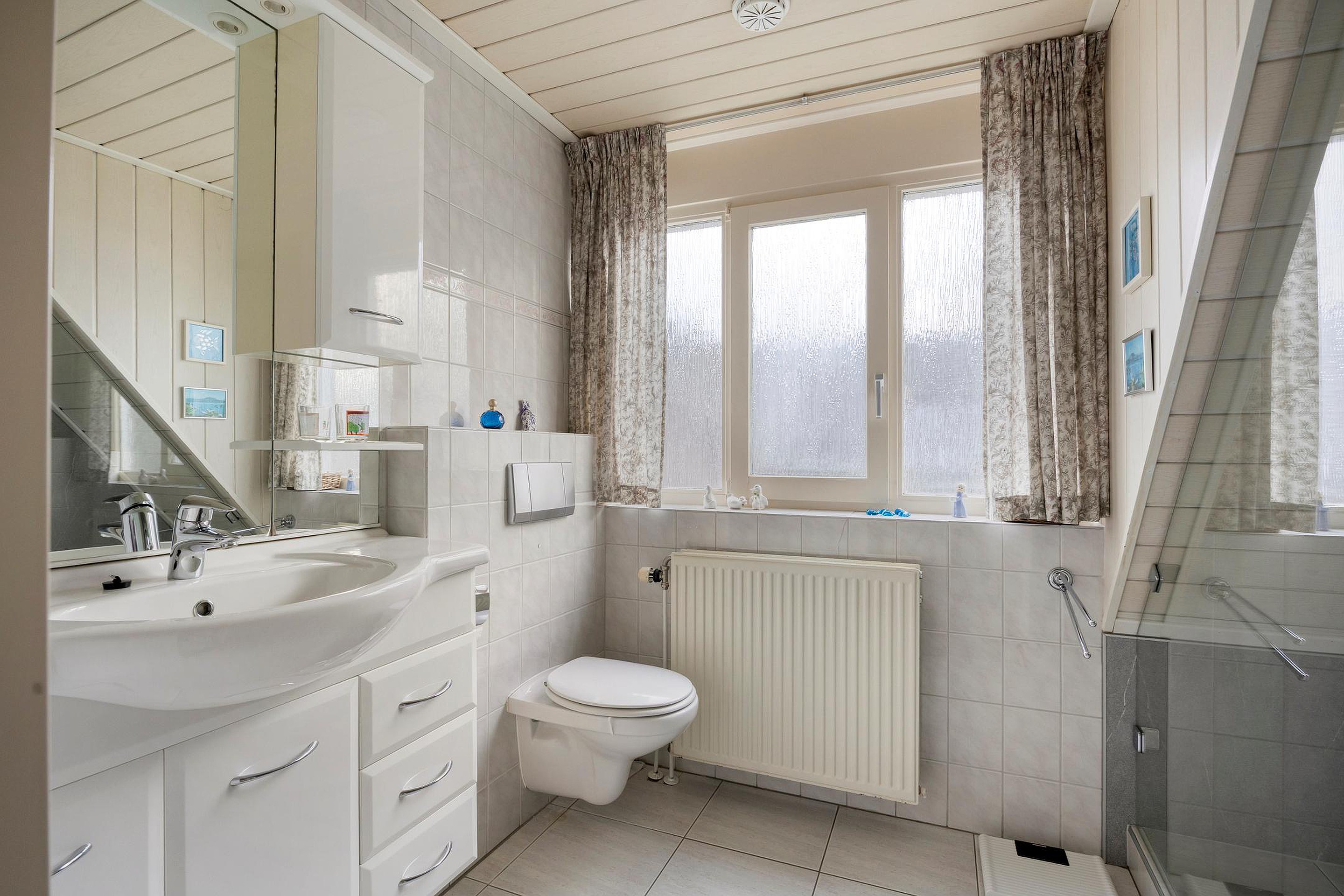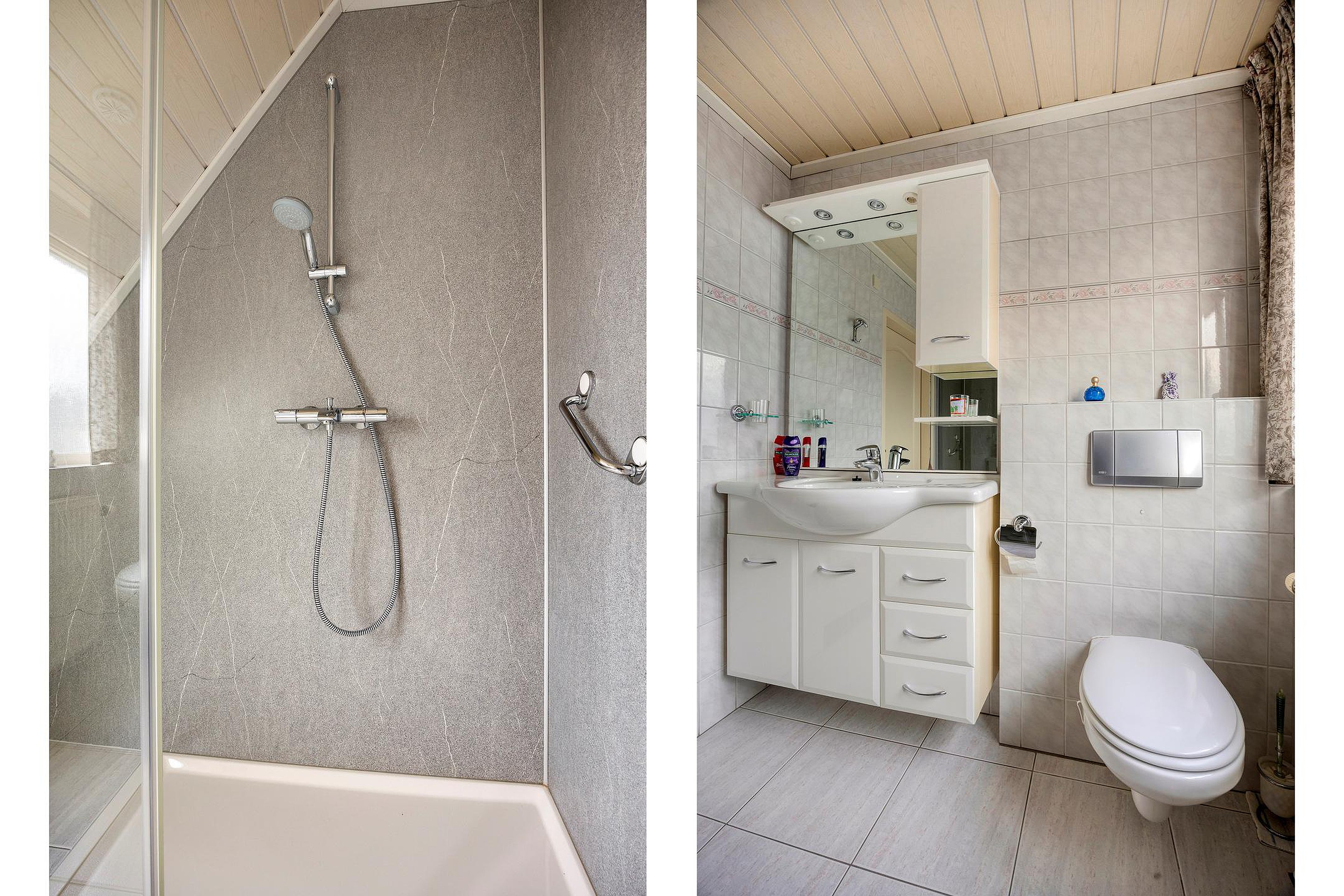 De overloop geeft toegang tot twee ruime slaapkamers, beide voorzien van vaste kasten. De badkamer is uitgevoerd met een douche, toilet en een vaste wastafel met badmeubel. Daarnaast is er een aparte bergruimte met de opstelling van de cv-ketel.