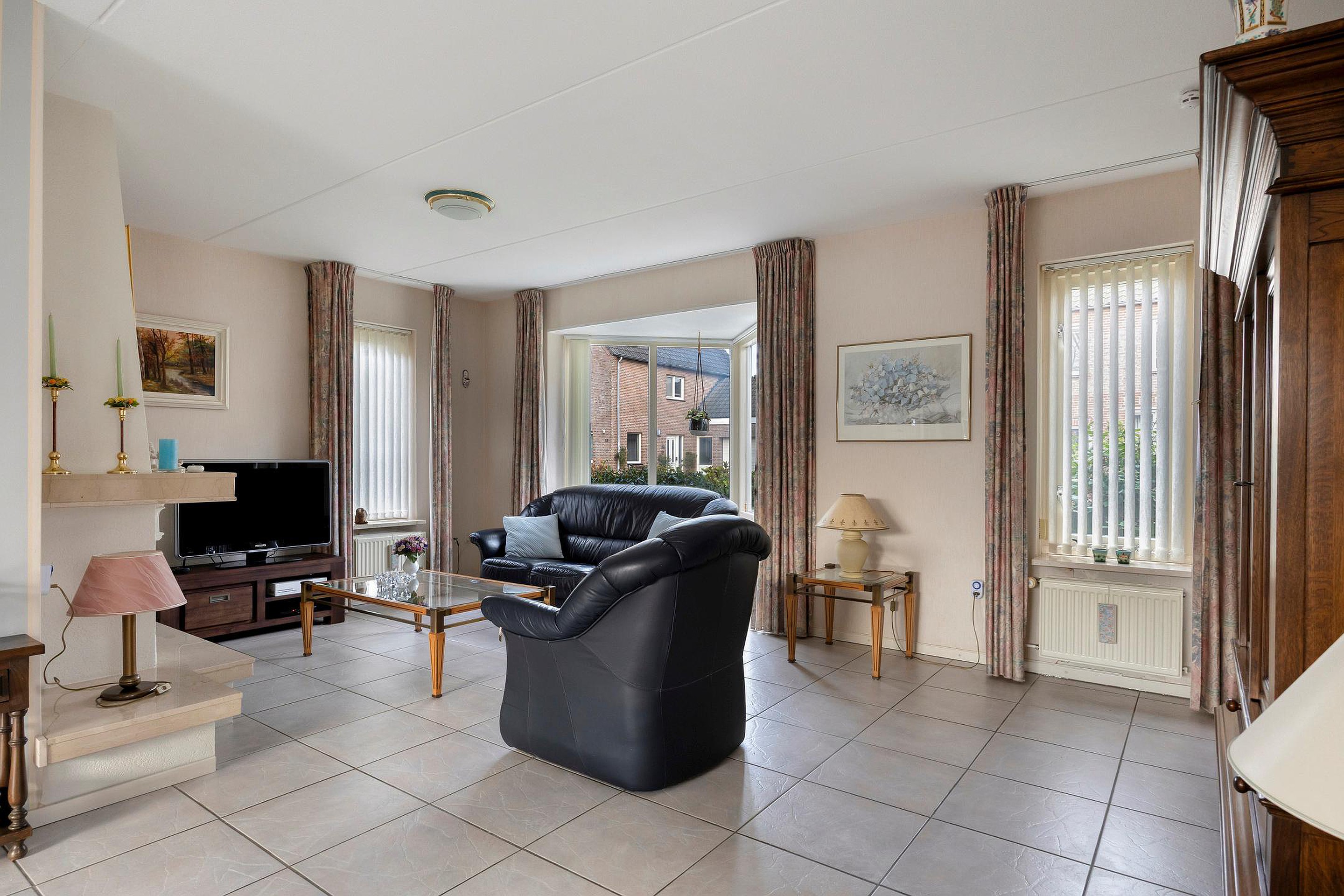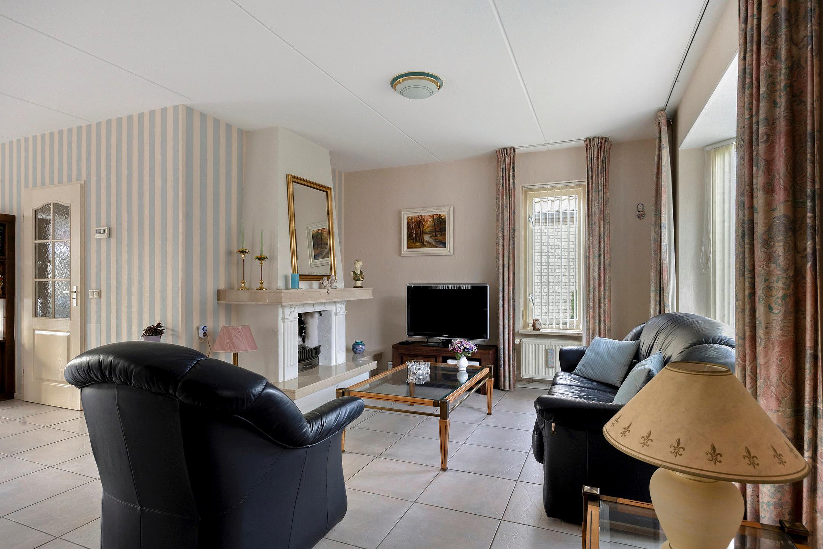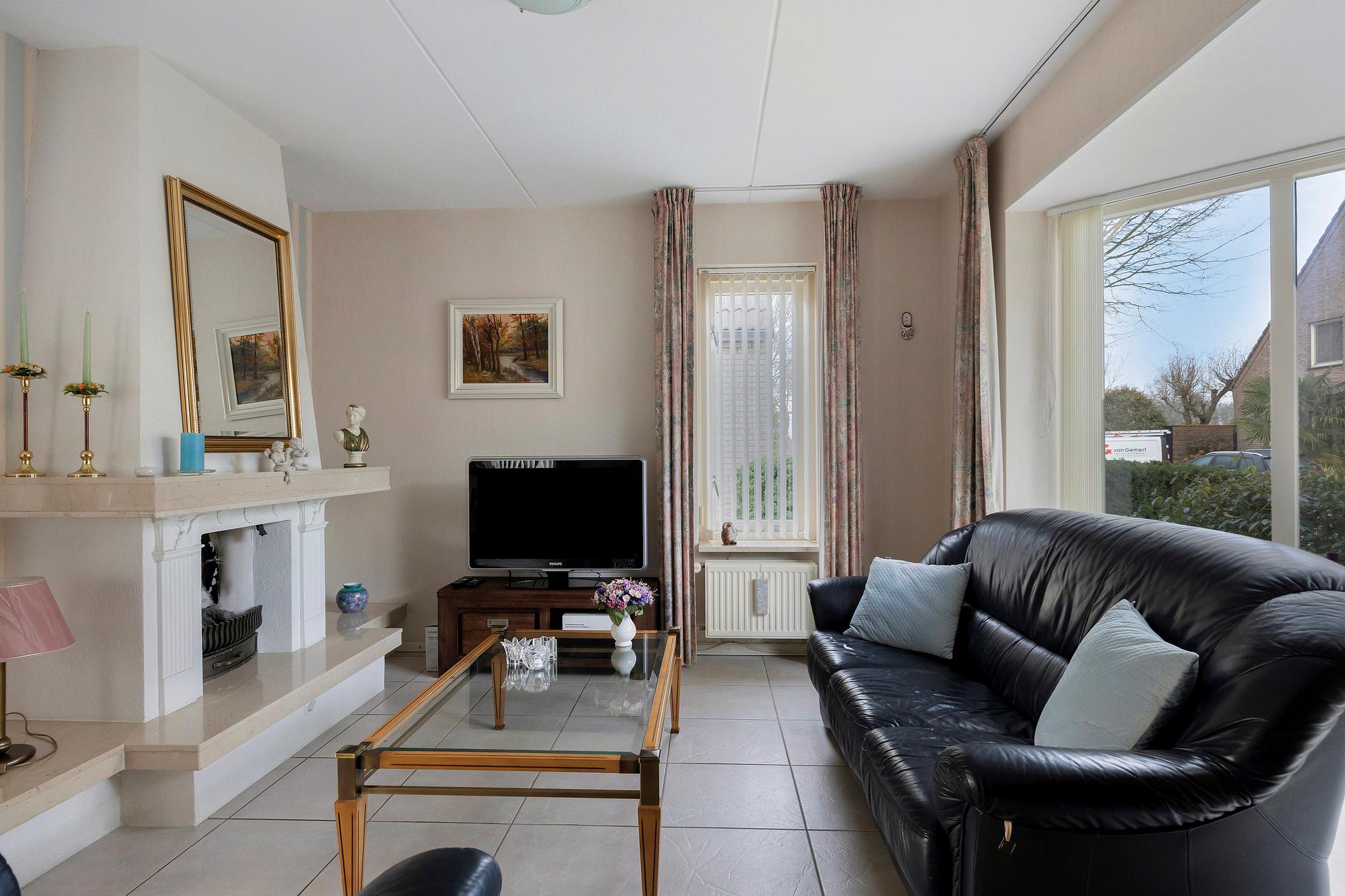Via de ruime entree/hal met meterkast, toilet met fonteintje en trapopgang bereikt u de woonvertrekken. De L-vormige woonkamer is een lichte ruimte met een sfeervolle open haard, een erker die zorgt voor extra lichtinval Vanuit de woonkamer is er toegang tot het terras aan de achterzijde.