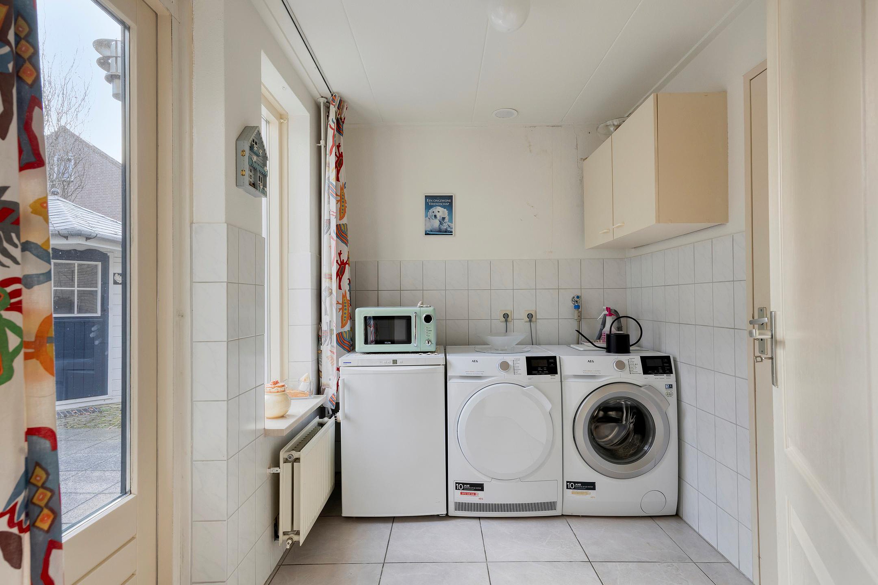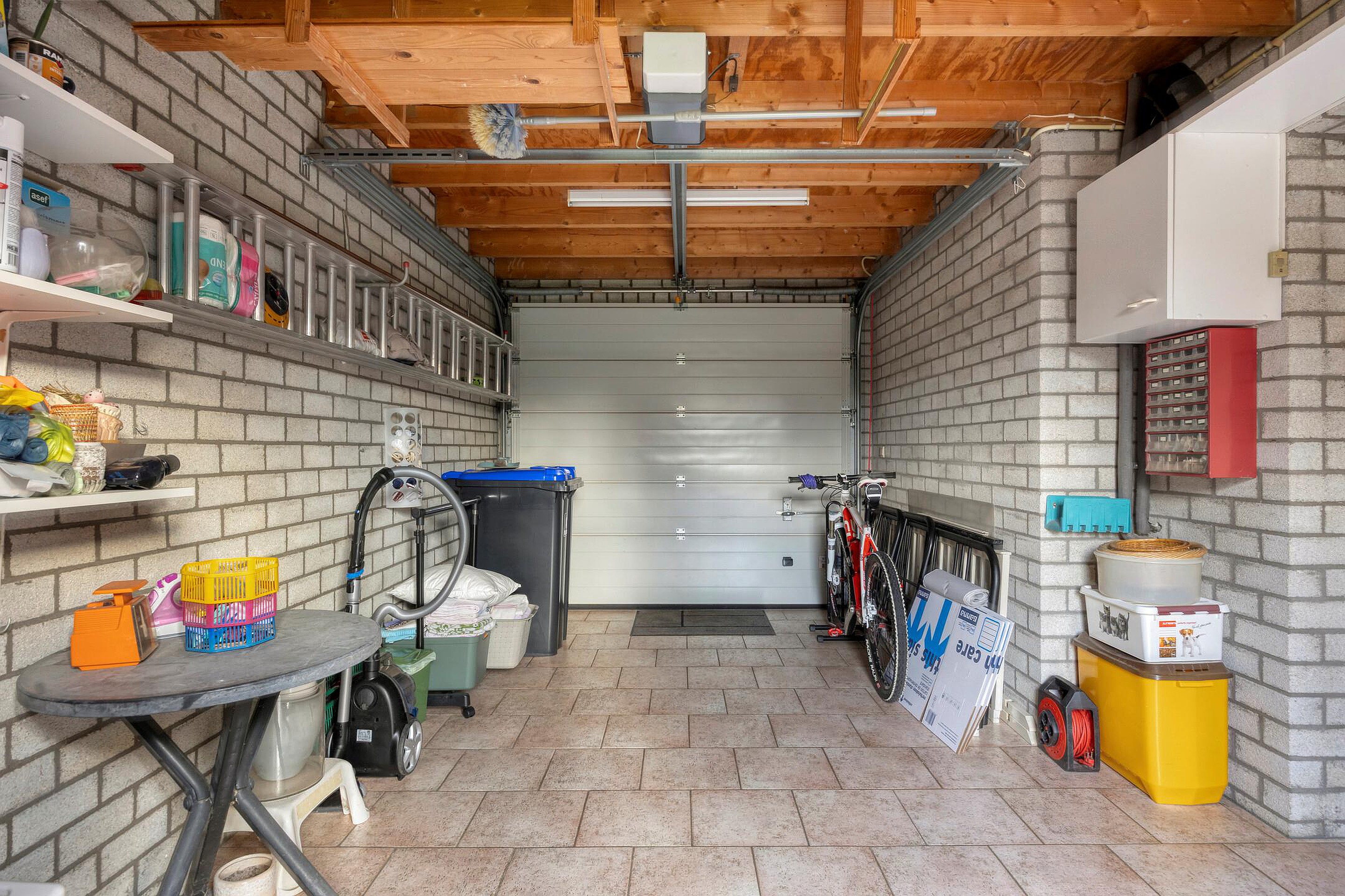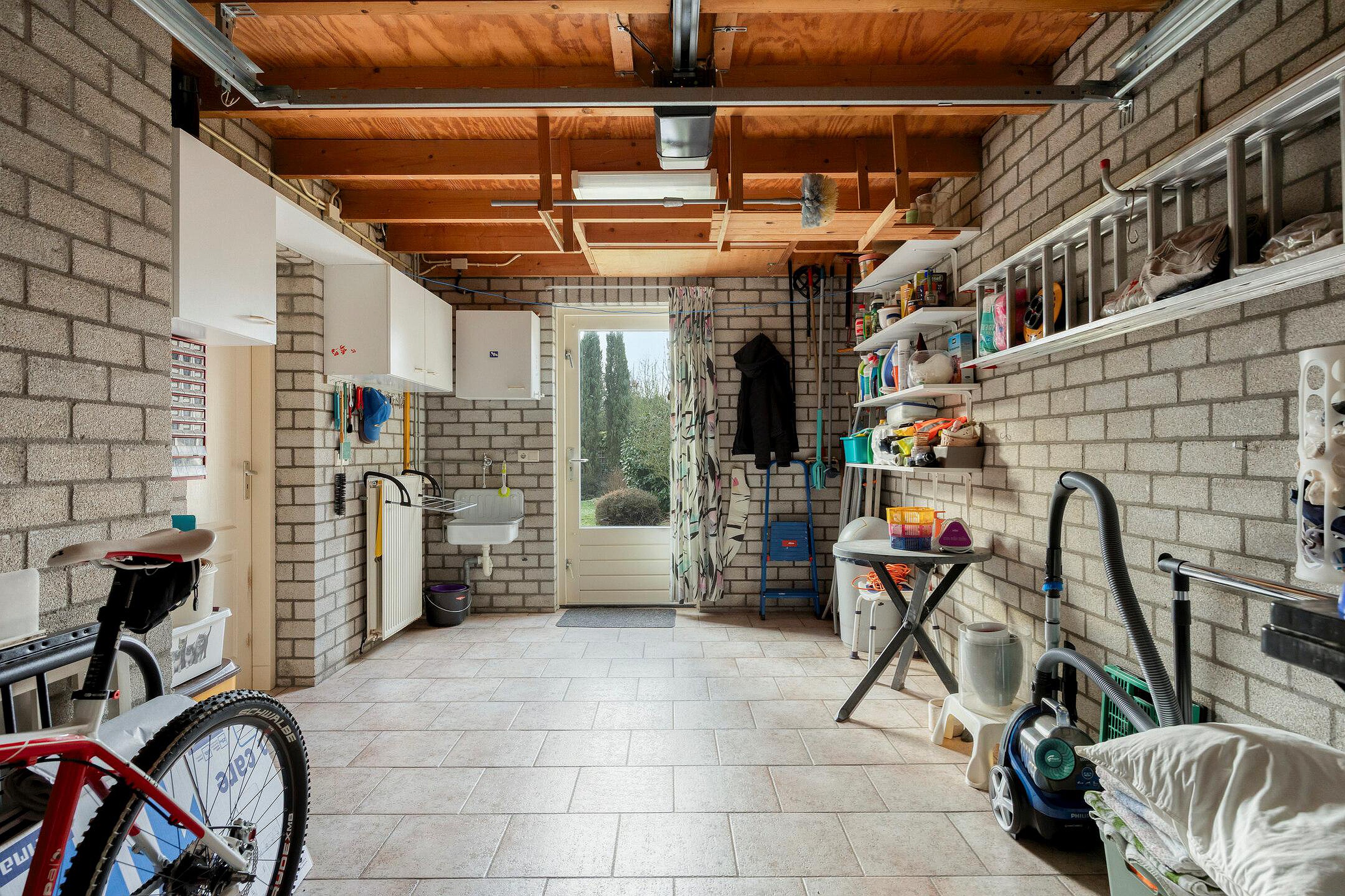 - De garage beschikt over een elektrische garagedeur en een loopdeur naar de tuin. Deze garage is ook bereikbaar via de bijkeuken.