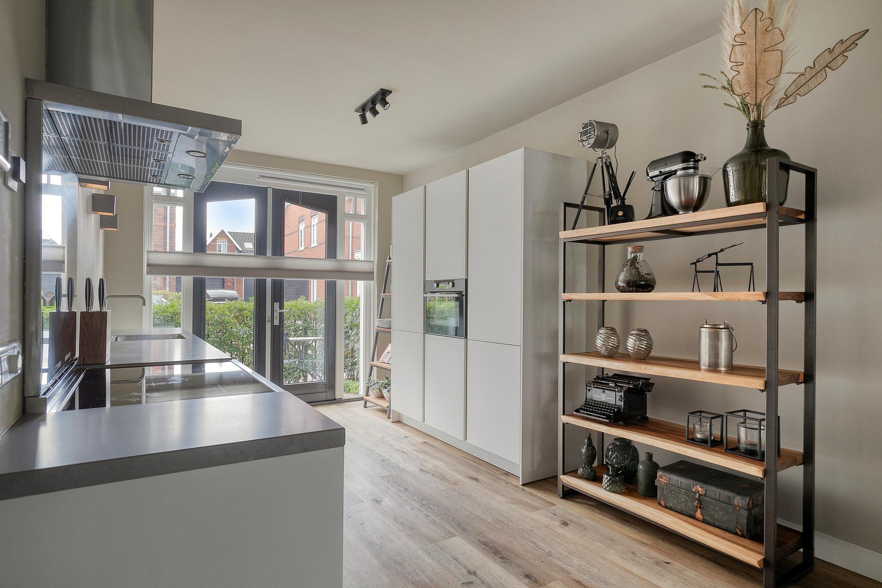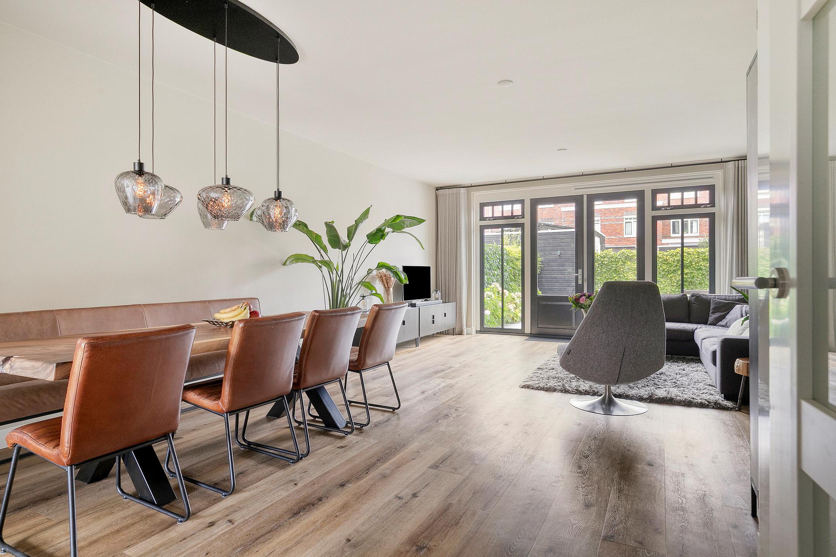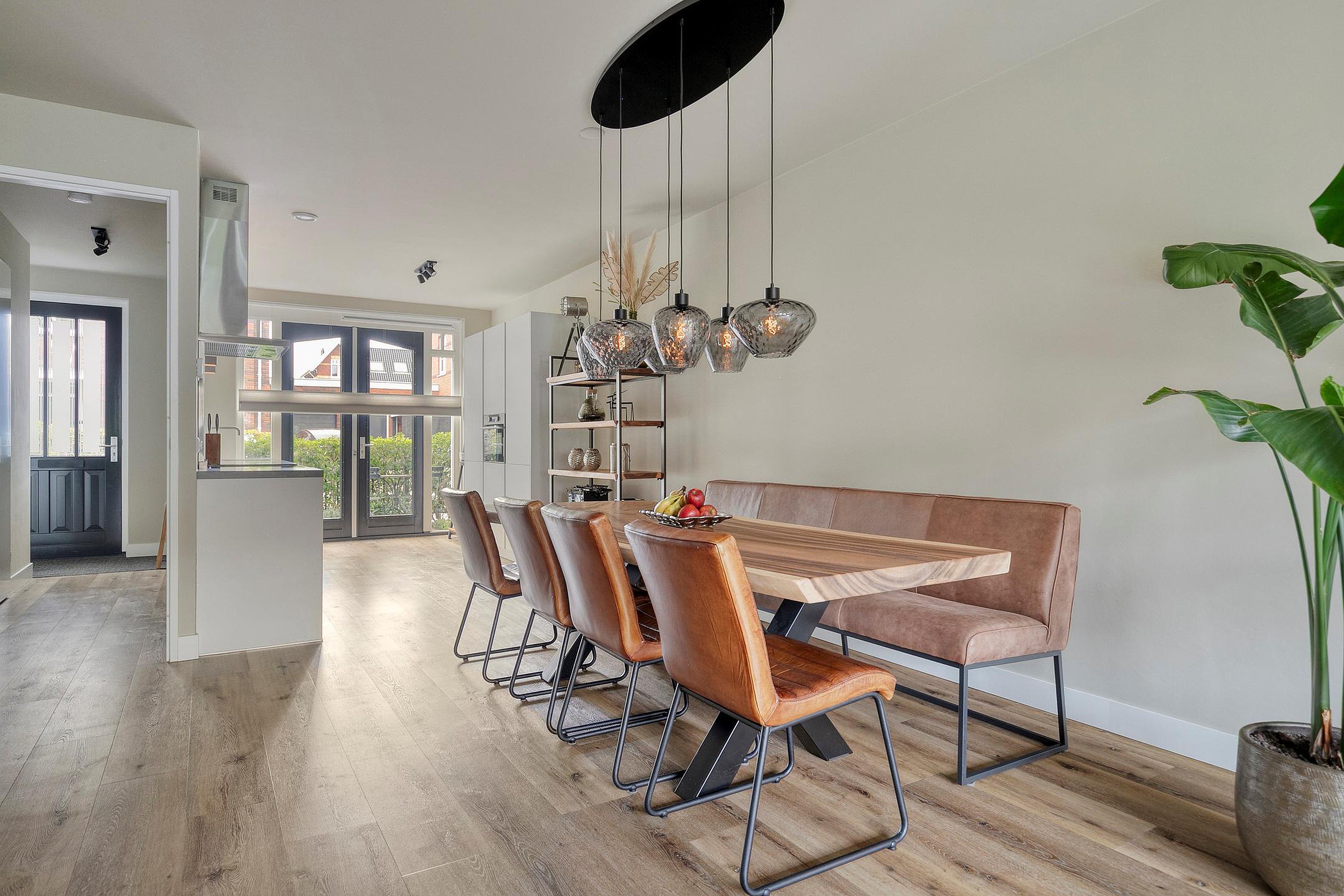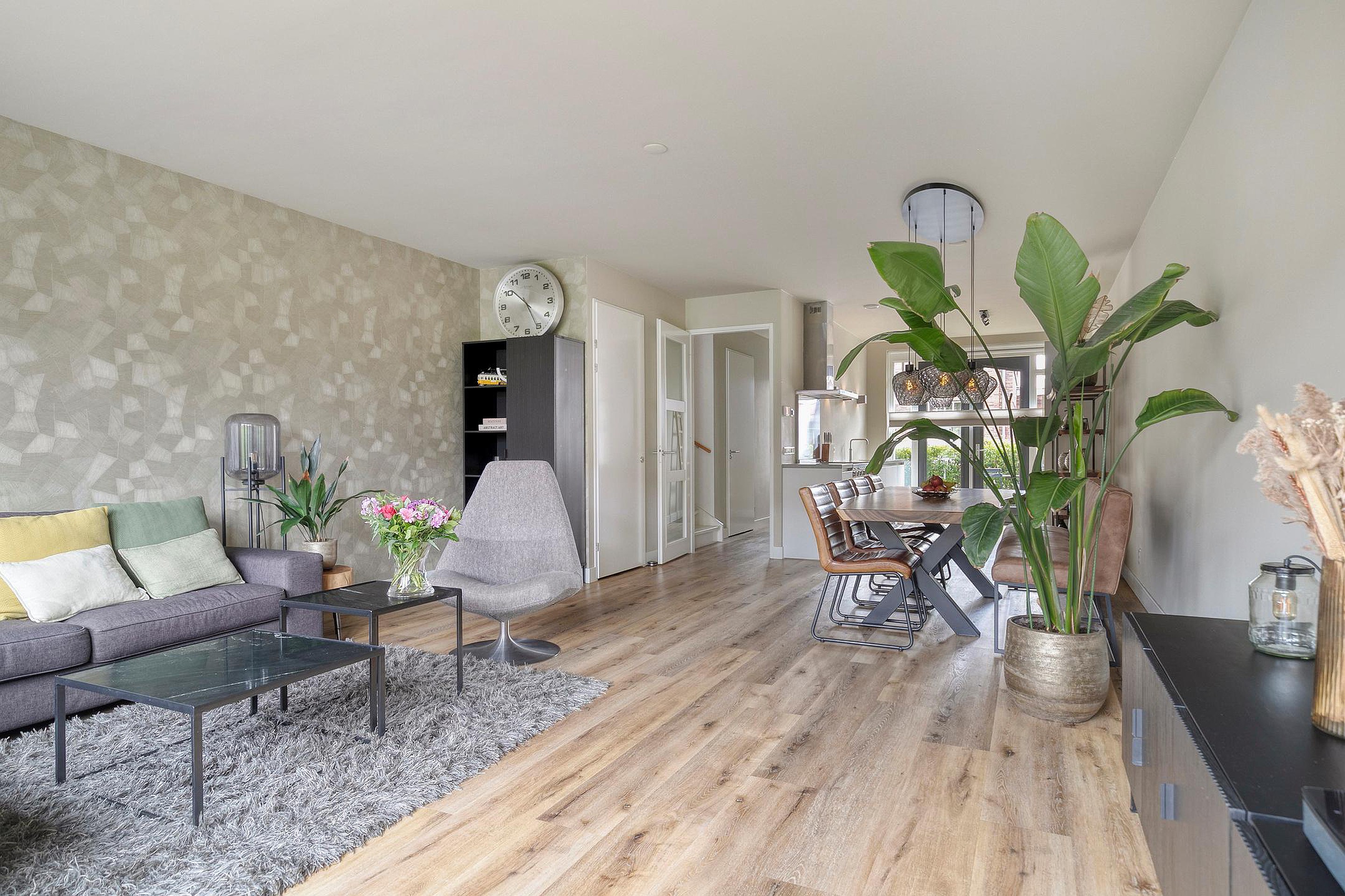 Begane grond Voortuin (ZO). Entree woning, hal, meterkast/waterontharder en een moderne toiletruimte met hangend closet + fonteintje. Ruime uitgebouwde woonkamer met trapkast en dubbele openslaande deuren naar de achtertuin. Door de grote raampartij geniet u van een lichte woonkamer met optimaal uitzicht op de achtertuin. Er is genoeg ruimte voor een grote eettafel. Heel leuk wanneer u vrienden of familie hebt uitgenodigd voor een diner. Aan de voorzijde van de woning bevindt zich de open keuken. Deze moderne keuken (2018) beschikt o.a. over een granieten werkblad, combi oven, koel/vriescombinatie, Quooker (2022), vaatwasser en een Portofino vrijstaand fornuis van Smeg (2022) die het hart van de echte keukenprins(es) zeker sneller zal doen kloppen. Het elektrisch bedienbare sunscreen op zonne-energie zorgt voor extra comfort. Via dubbele openslaande deuren bereikt u de voortuin. De hal, woonkamer en keukenruimte zijn afgewerkt met een onderhoudsvriendelijke pvc vloer inclusief vloerverwarming. Via de dubbele openslaande deuren in de woonkamer bereikt u de fijne achtertuin gelegen op het noordwesten met houten berging (inclusief twee zonnepanelen (2018) op het dak) en een achterom. Door z'n afmeting en ligging is deze tuin heerlijk zonnig. Op het mandelige binnenterrein achter de woning bevindt zich uw eigen parkeerplaats direct grenzend aan de tuin.