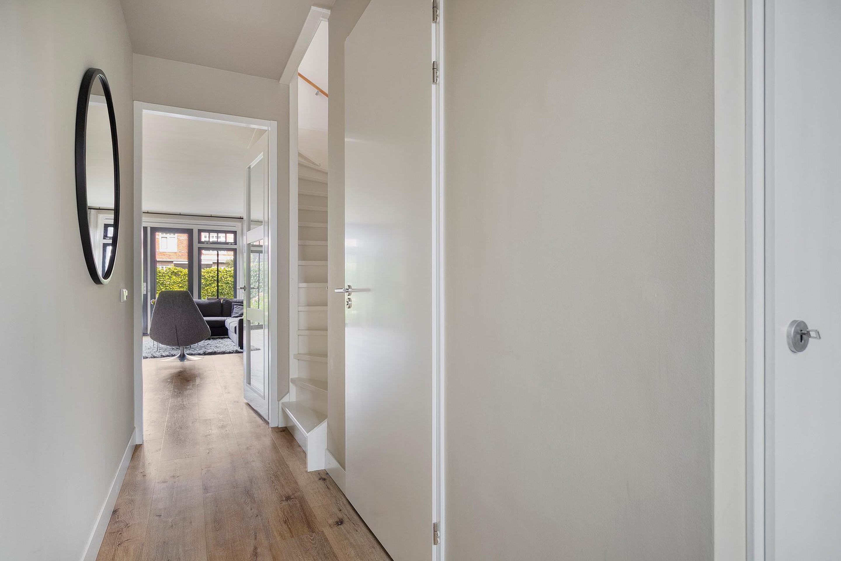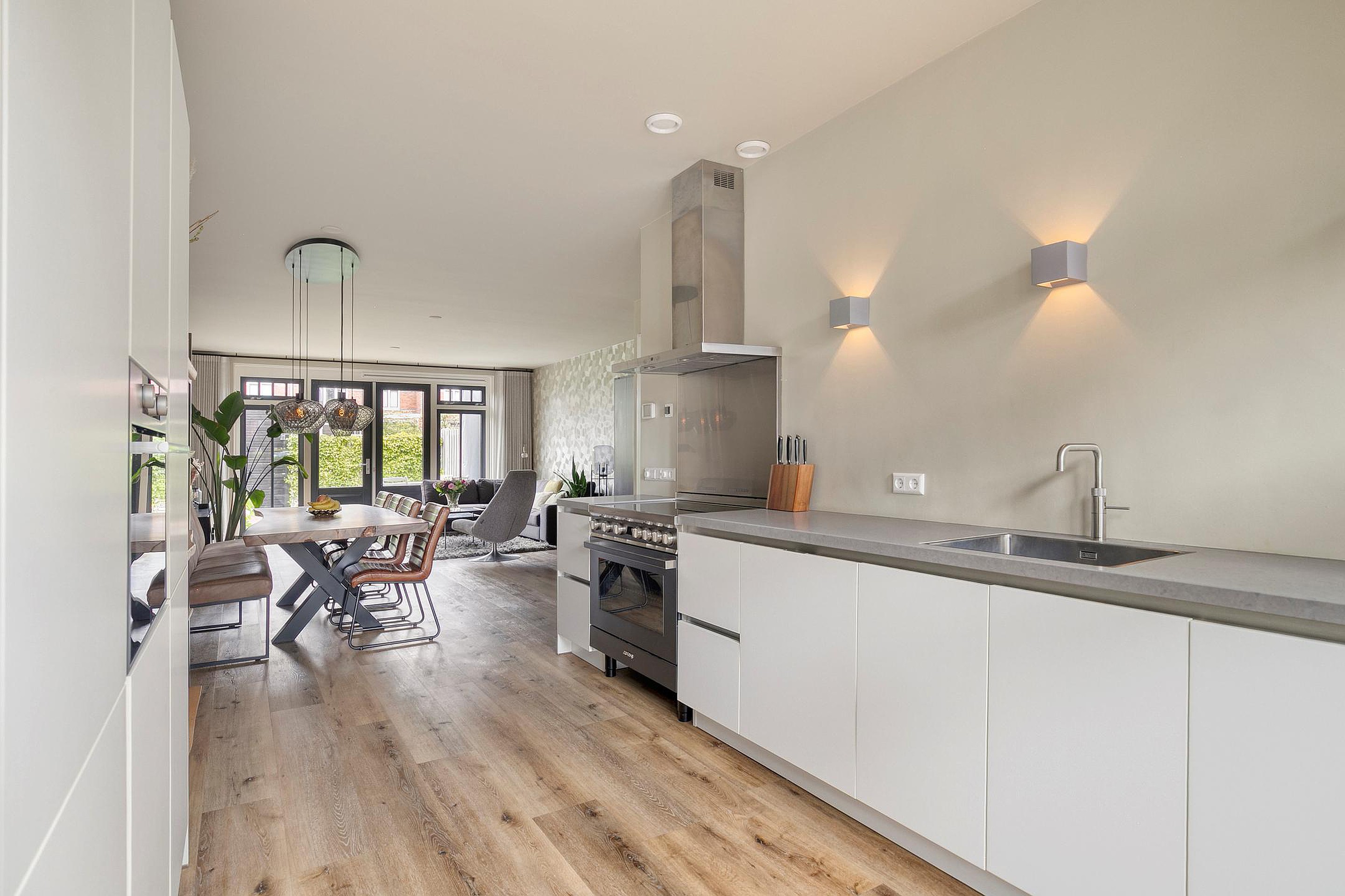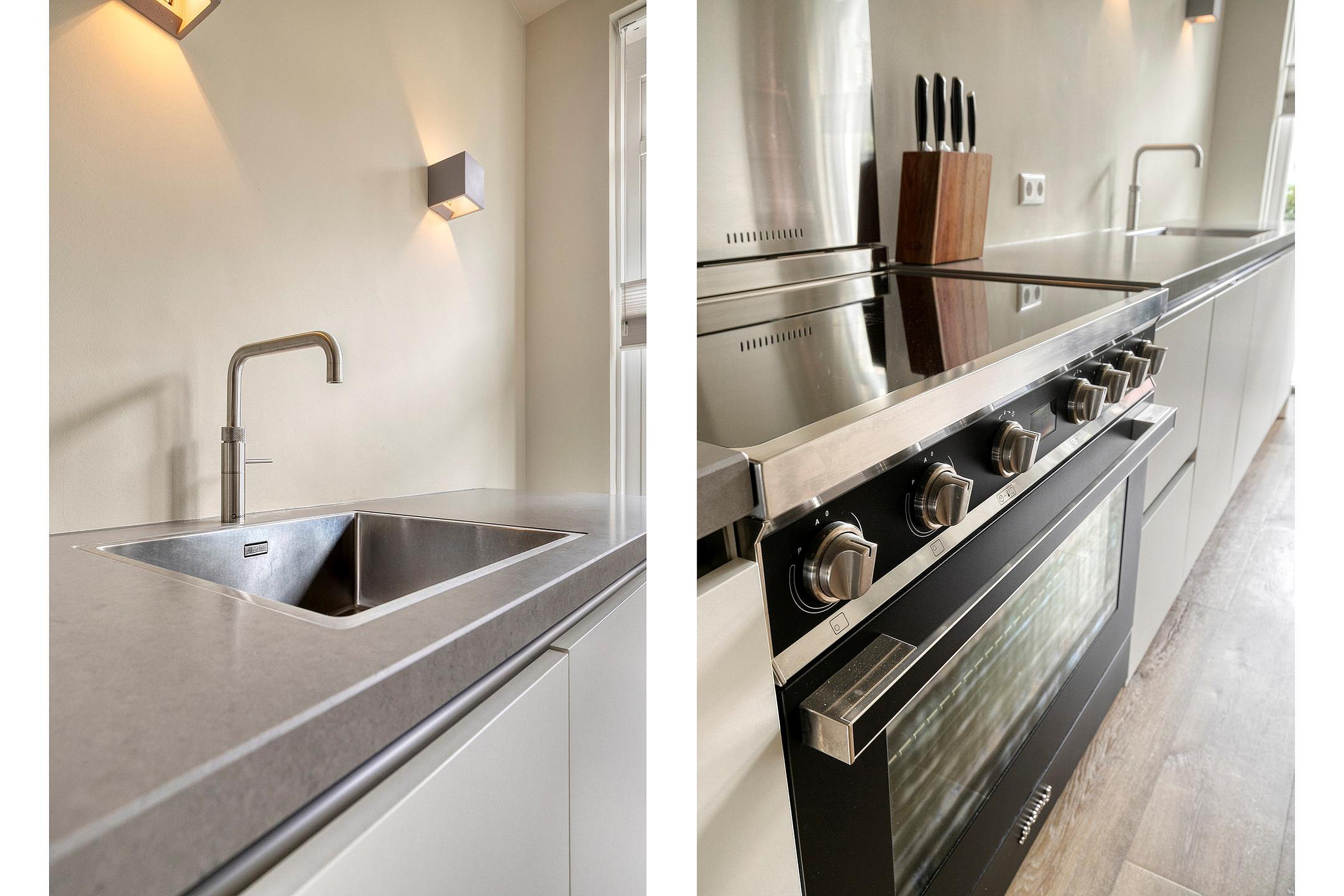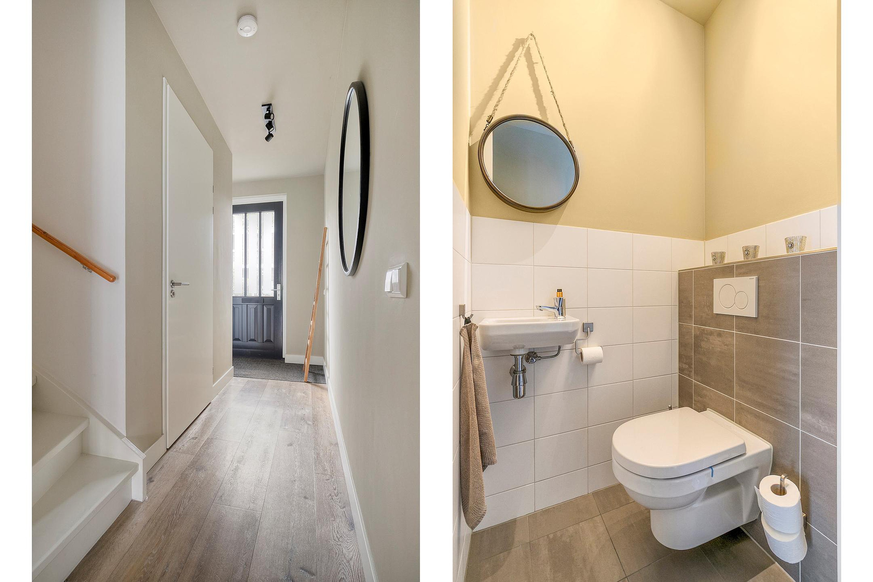 Begane grond Voortuin (ZO). Entree woning, hal, meterkast/waterontharder en een moderne toiletruimte met hangend closet + fonteintje. Ruime uitgebouwde woonkamer met trapkast en dubbele openslaande deuren naar de achtertuin. Door de grote raampartij geniet u van een lichte woonkamer met optimaal uitzicht op de achtertuin. Er is genoeg ruimte voor een grote eettafel. Heel leuk wanneer u vrienden of familie hebt uitgenodigd voor een diner. Aan de voorzijde van de woning bevindt zich de open keuken. Deze moderne keuken (2018) beschikt o.a. over een granieten werkblad, combi oven, koel/vriescombinatie, Quooker (2022), vaatwasser en een Portofino vrijstaand fornuis van Smeg (2022) die het hart van de echte keukenprins(es) zeker sneller zal doen kloppen. Het elektrisch bedienbare sunscreen op zonne-energie zorgt voor extra comfort. Via dubbele openslaande deuren bereikt u de voortuin. De hal, woonkamer en keukenruimte zijn afgewerkt met een onderhoudsvriendelijke pvc vloer inclusief vloerverwarming. Via de dubbele openslaande deuren in de woonkamer bereikt u de fijne achtertuin gelegen op het noordwesten met houten berging (inclusief twee zonnepanelen (2018) op het dak) en een achterom. Door z'n afmeting en ligging is deze tuin heerlijk zonnig. Op het mandelige binnenterrein achter de woning bevindt zich uw eigen parkeerplaats direct grenzend aan de tuin.