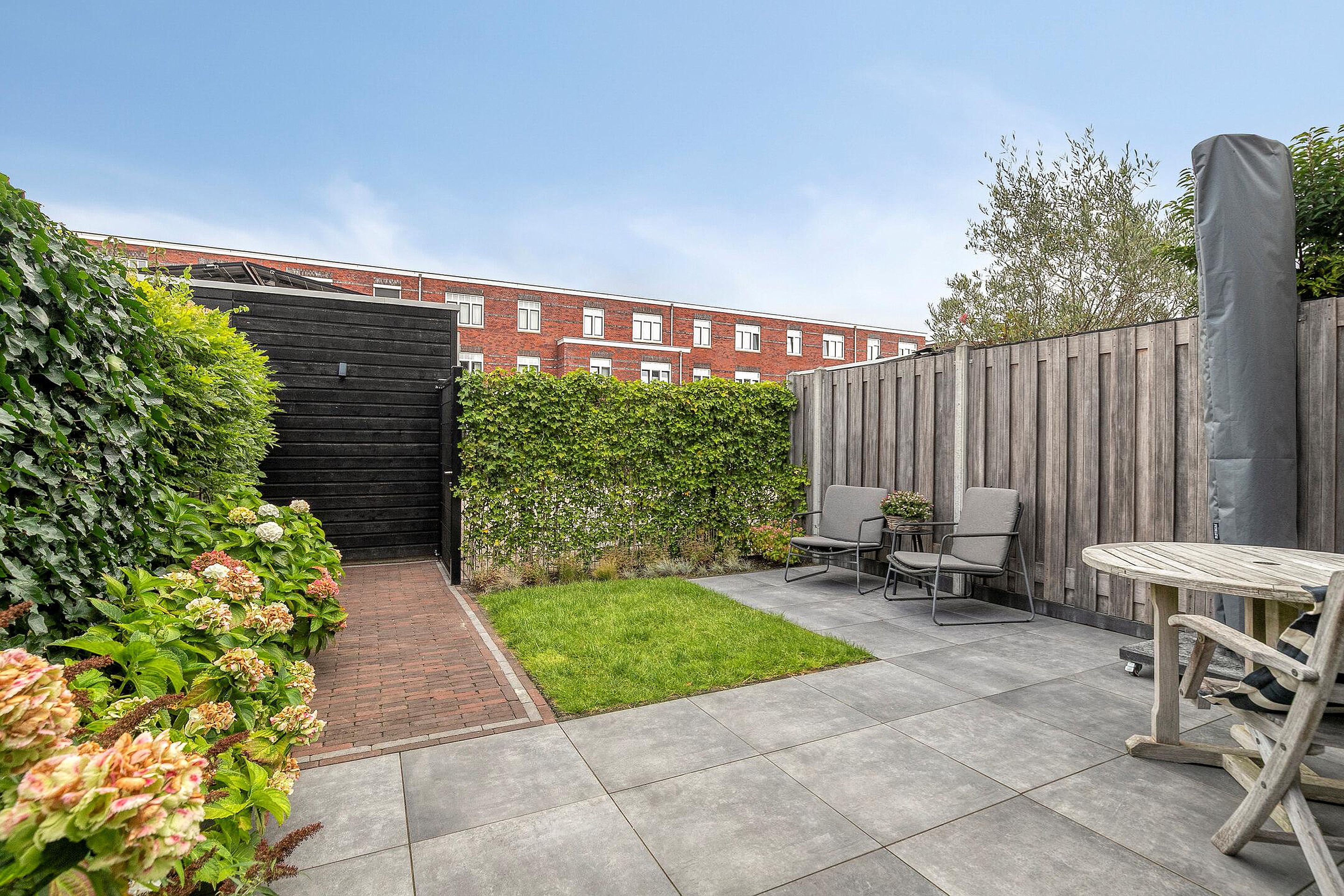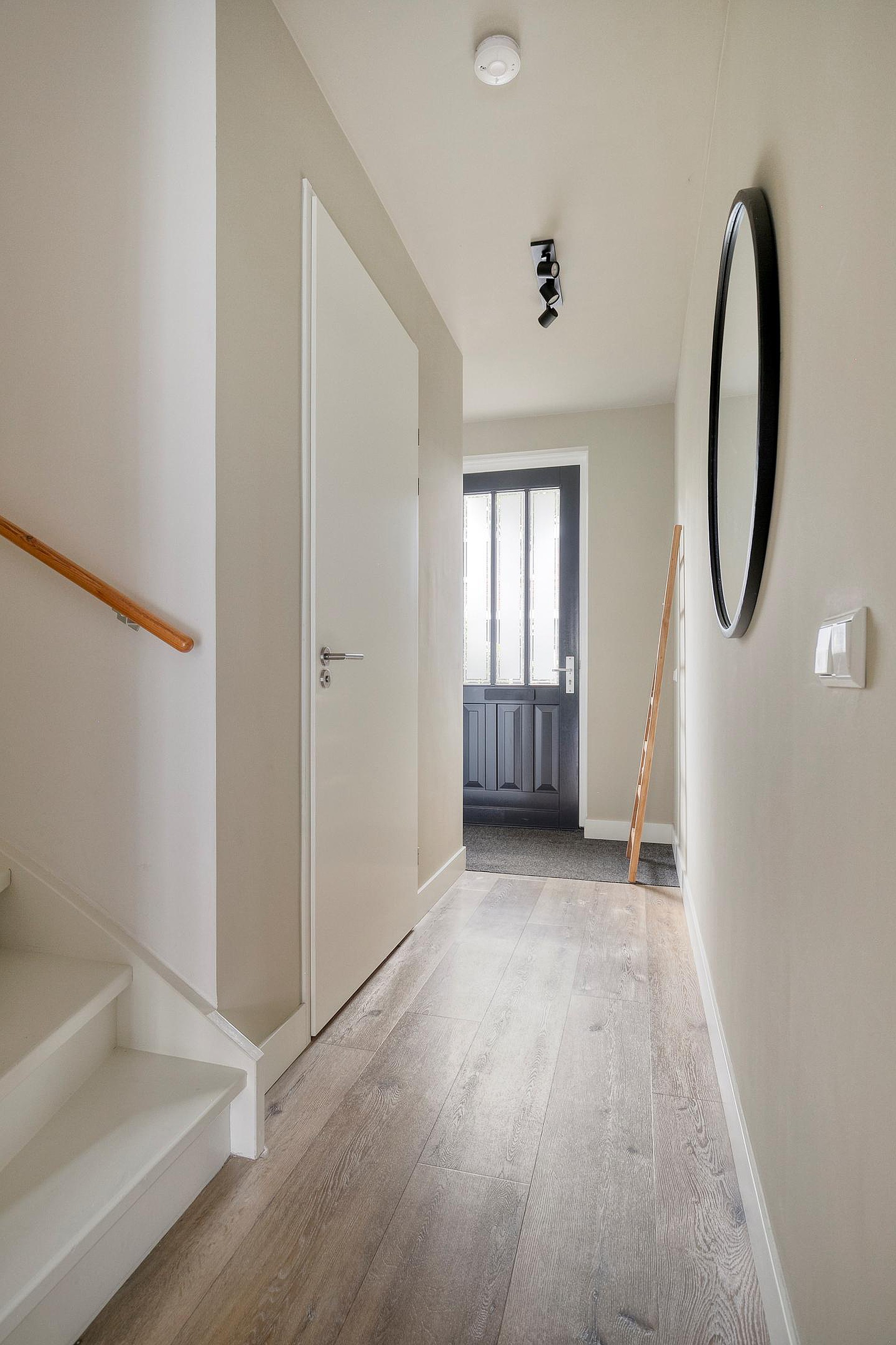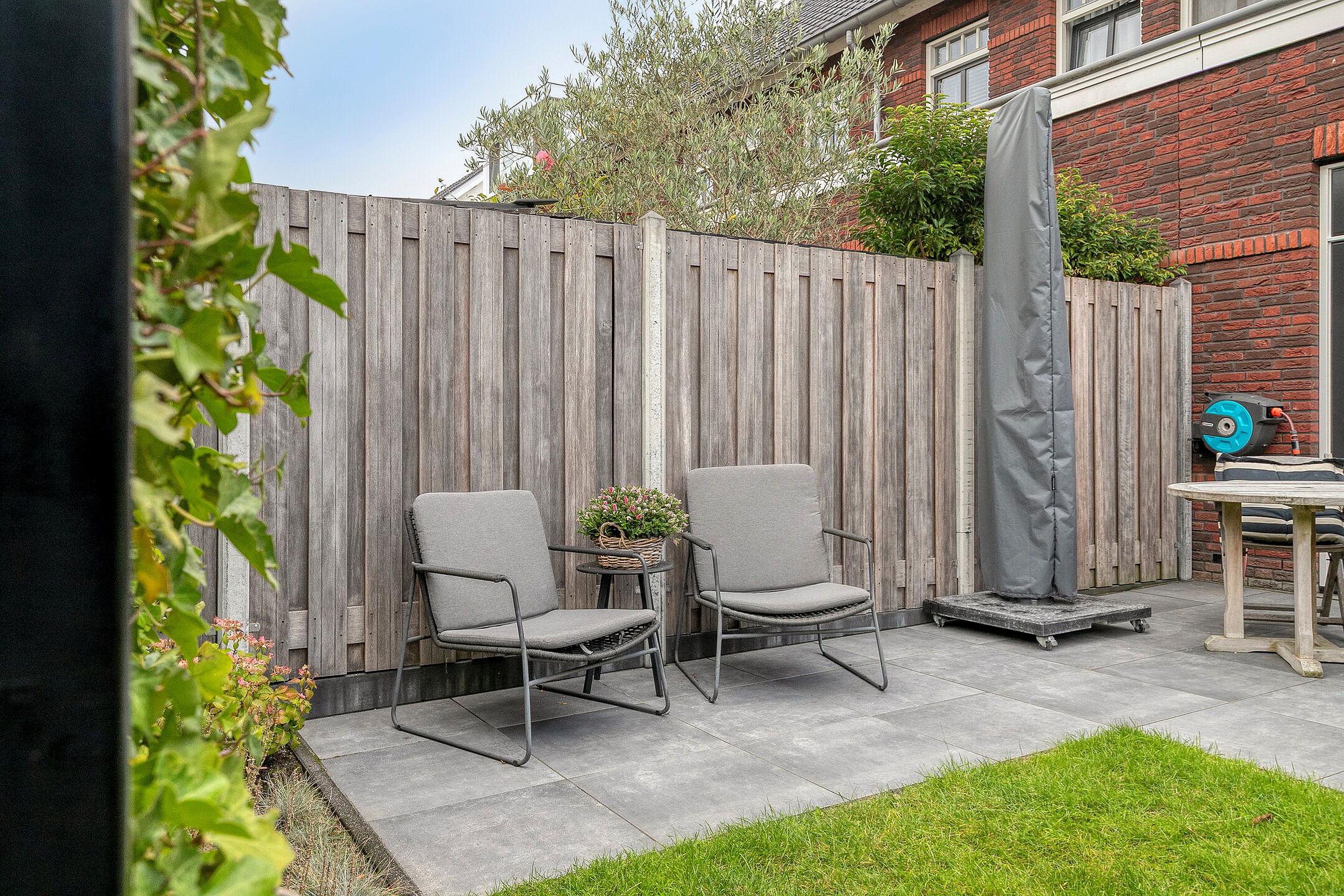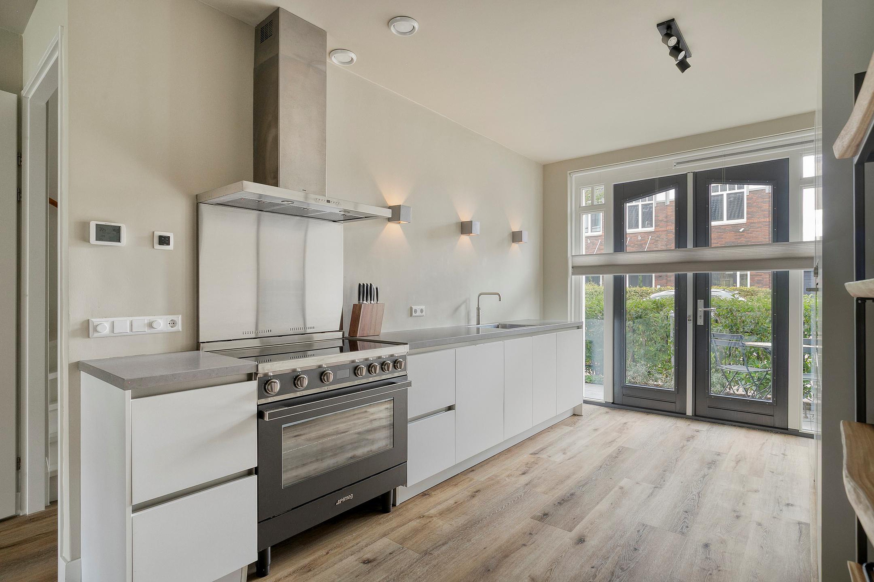 Begane grond Voortuin (ZO). Entree woning, hal, meterkast/waterontharder en een moderne toiletruimte met hangend closet + fonteintje. Ruime uitgebouwde woonkamer met trapkast en dubbele openslaande deuren naar de achtertuin. Door de grote raampartij geniet u van een lichte woonkamer met optimaal uitzicht op de achtertuin. Er is genoeg ruimte voor een grote eettafel. Heel leuk wanneer u vrienden of familie hebt uitgenodigd voor een diner. Aan de voorzijde van de woning bevindt zich de open keuken. Deze moderne keuken (2018) beschikt o.a. over een granieten werkblad, combi oven, koel/vriescombinatie, Quooker (2022), vaatwasser en een Portofino vrijstaand fornuis van Smeg (2022) die het hart van de echte keukenprins(es) zeker sneller zal doen kloppen. Het elektrisch bedienbare sunscreen op zonne-energie zorgt voor extra comfort. Via dubbele openslaande deuren bereikt u de voortuin. De hal, woonkamer en keukenruimte zijn afgewerkt met een onderhoudsvriendelijke pvc vloer inclusief vloerverwarming. Via de dubbele openslaande deuren in de woonkamer bereikt u de fijne achtertuin gelegen op het noordwesten met houten berging (inclusief twee zonnepanelen (2018) op het dak) en een achterom. Door z'n afmeting en ligging is deze tuin heerlijk zonnig. Op het mandelige binnenterrein achter de woning bevindt zich uw eigen parkeerplaats direct grenzend aan de tuin.