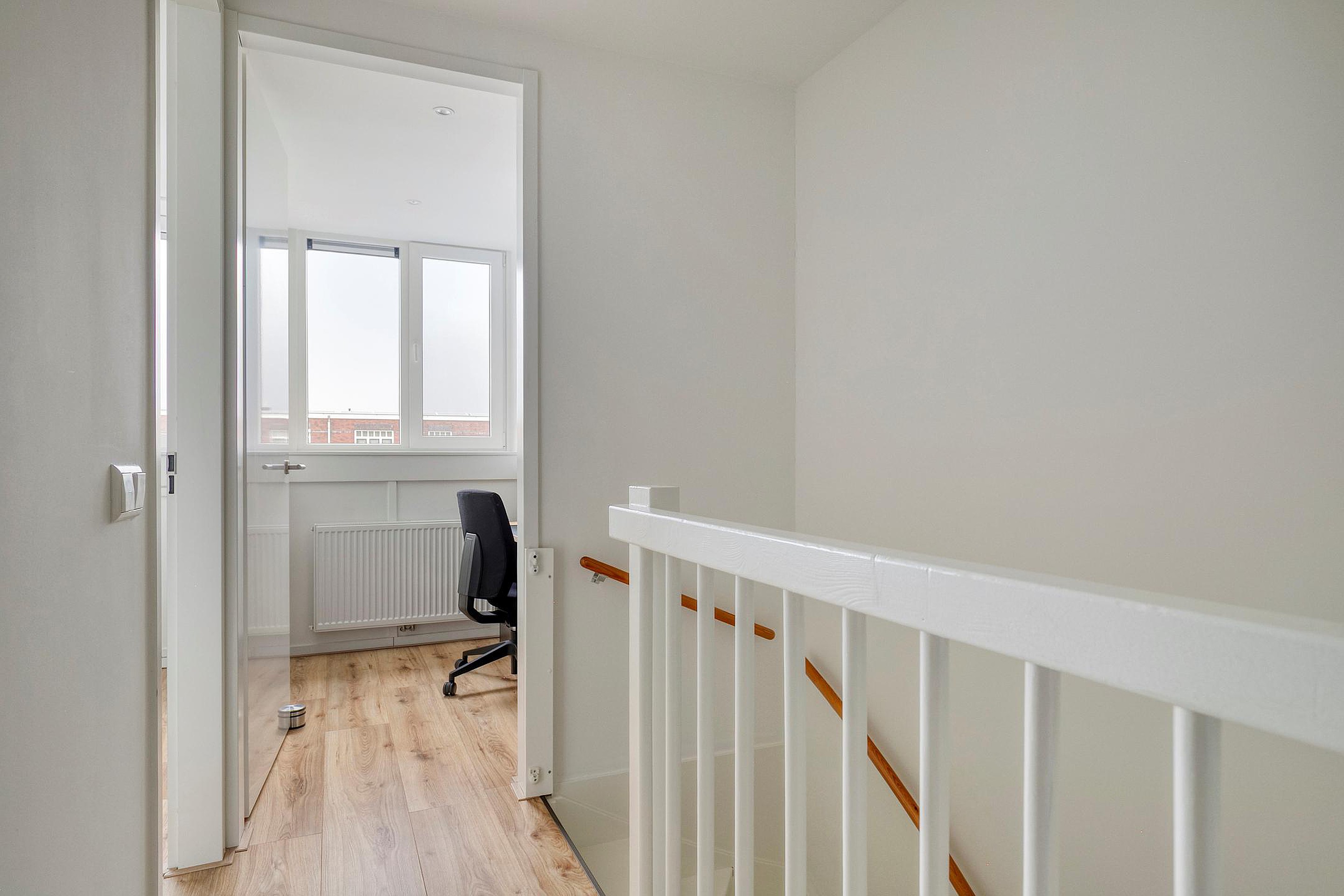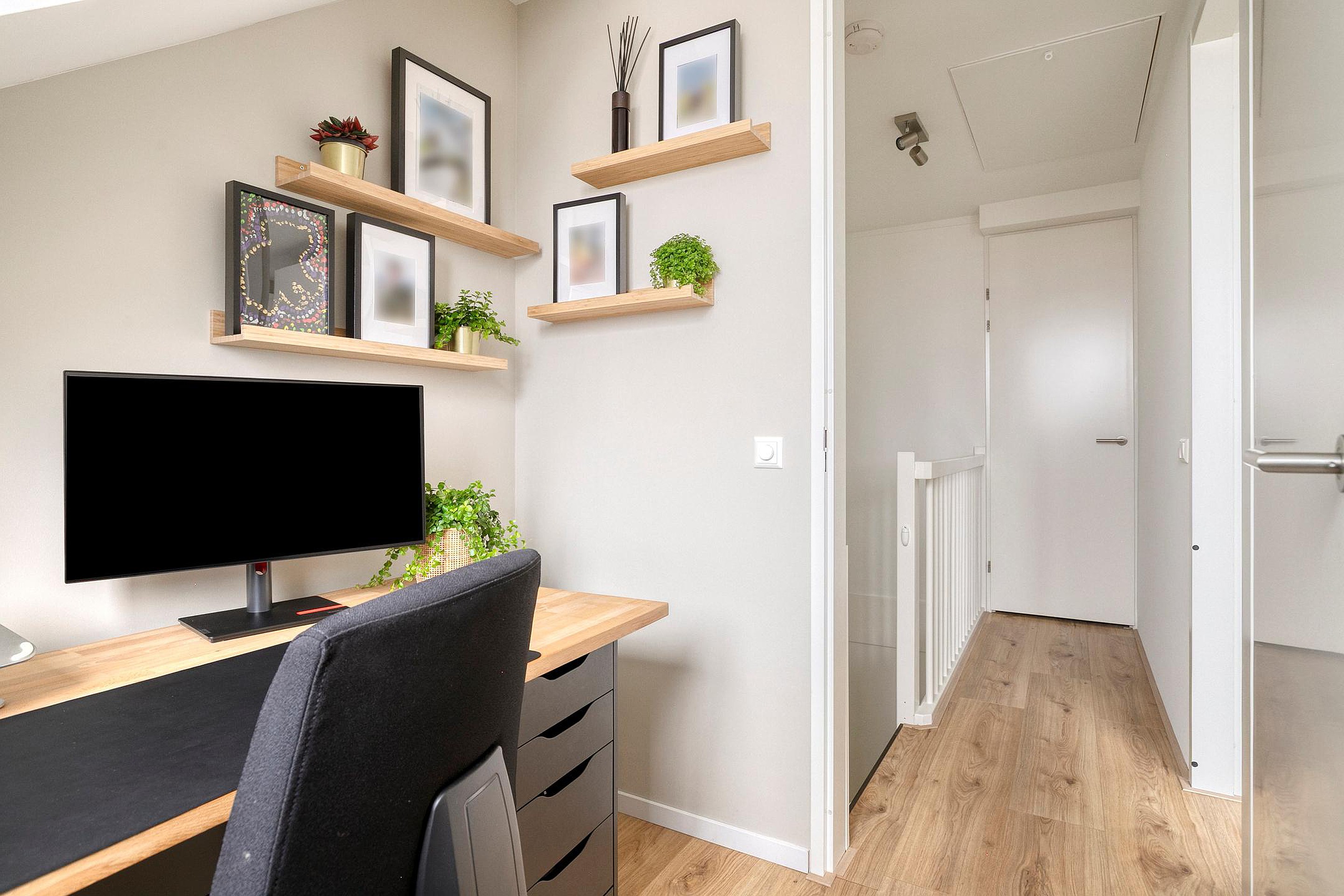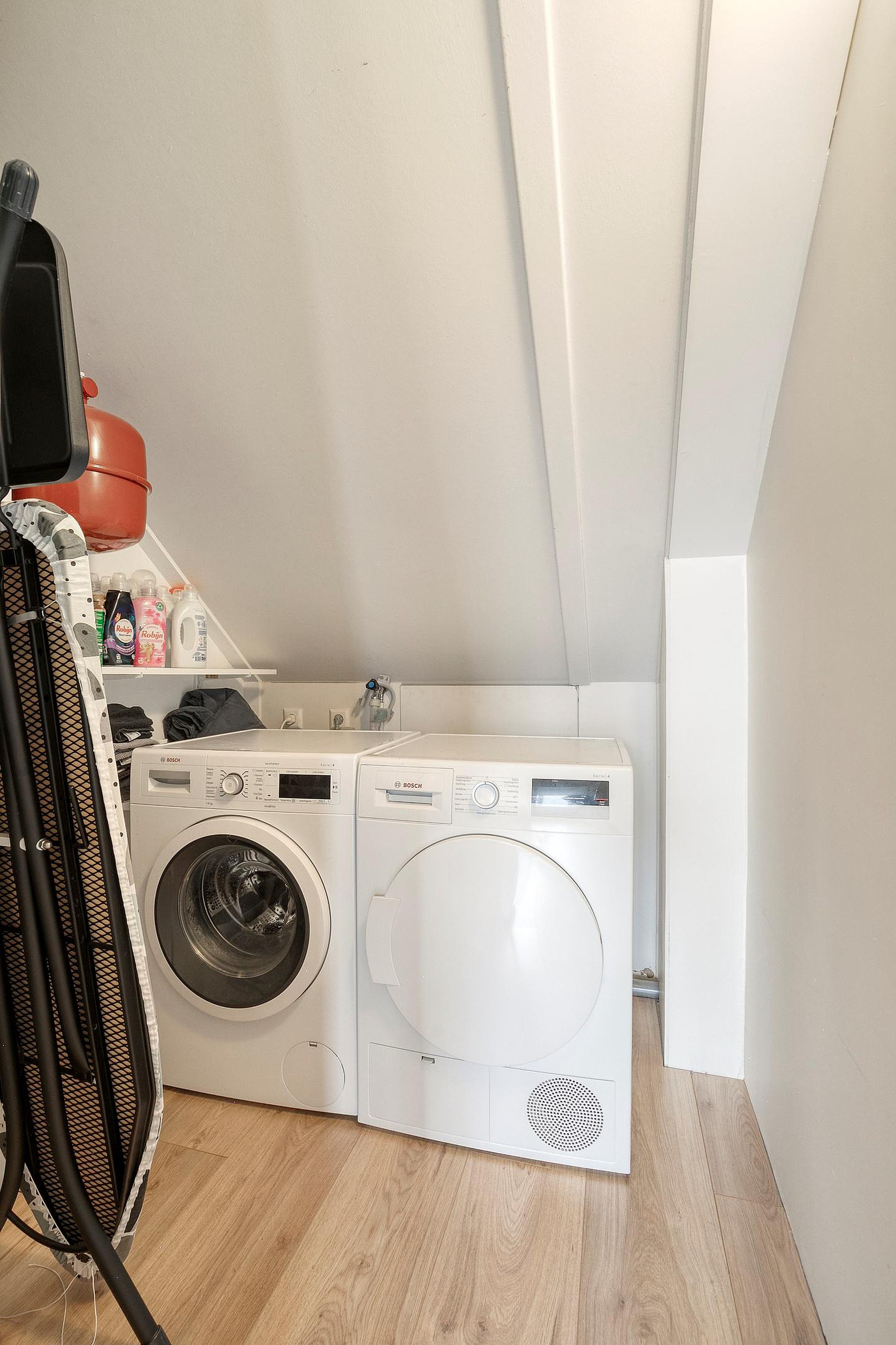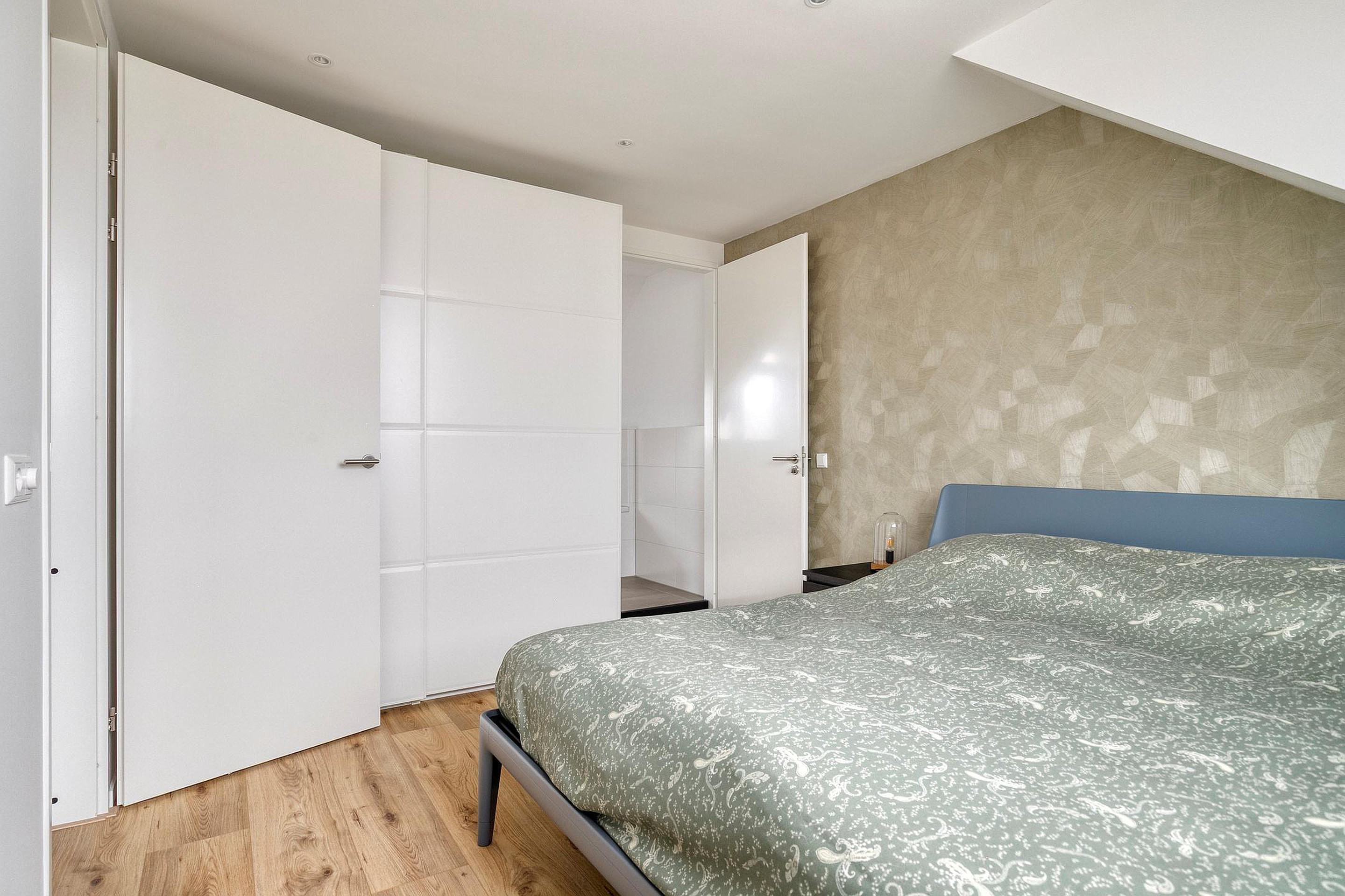 Overloop met toegang tot de bergvliering. Separate ruimte met wasmachine aansluiting, opstelplaats voor de mechanische ventilatie-unit en de cv-ketel (2018). Omdat deze verdieping aan de voor- en achterzijde is voorzien van een dakkapel geniet u van extra woonruimte. Aan de achterzijde van de woning vindt u een (slaap)kamer welke ook uitermate geschikt is als thuiswerkplek/kantoor en/of hobbyruimte. Ruime (ouder)slaapkamer met dakkapel (2021/kunststof kozijn). Handig en luxe is de 2e badkamer, vooral voor grotere gezinnen of wanneer u vaak logés heeft. Deze royale badkamer (2022) met een dakkapel (oorspronkelijk vanuit de bouw), ligbad, inloopdouche, wastafelmeubel met twee kranen, 3e hangend closet, inbouwverlichting, tegelvloer inclusief vloerverwarming en elektrisch bedienbaar rolluik op zonne-energie maakt deze woning zeker bezichtigingswaardig. U zult hier een wellness ervaring beleven!