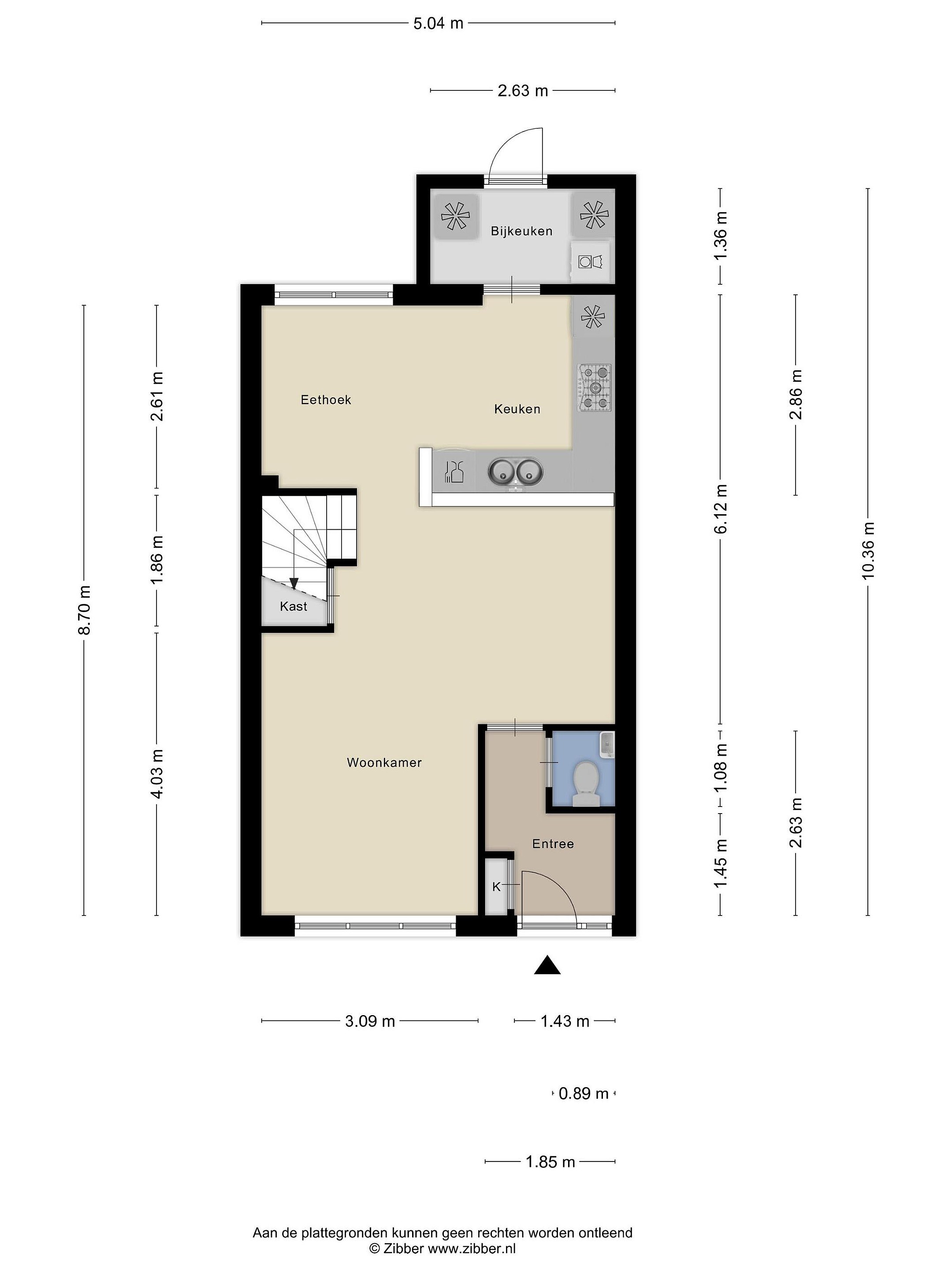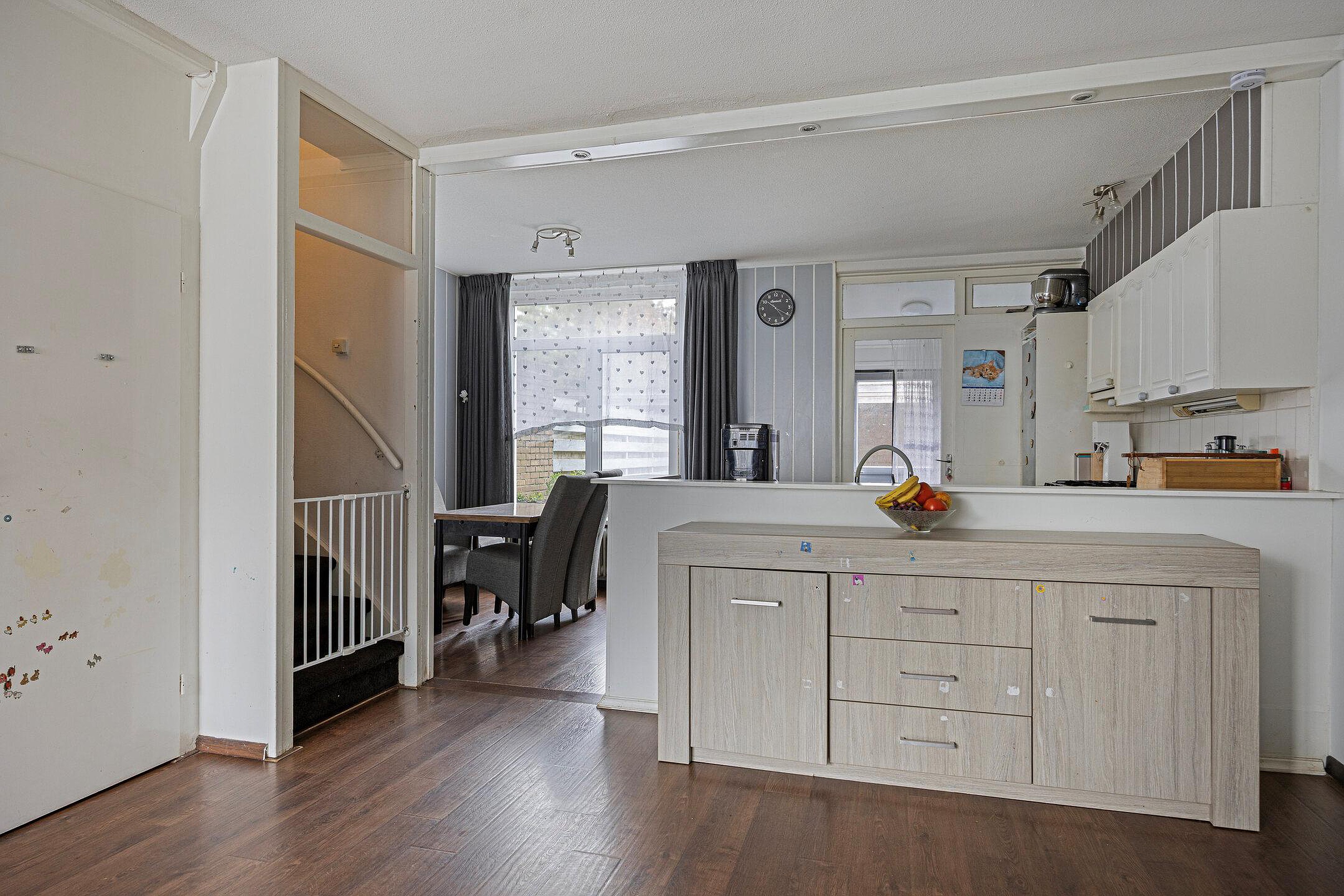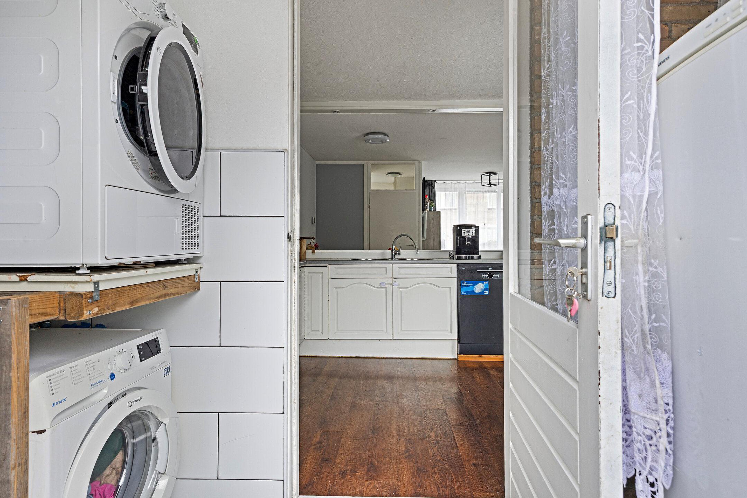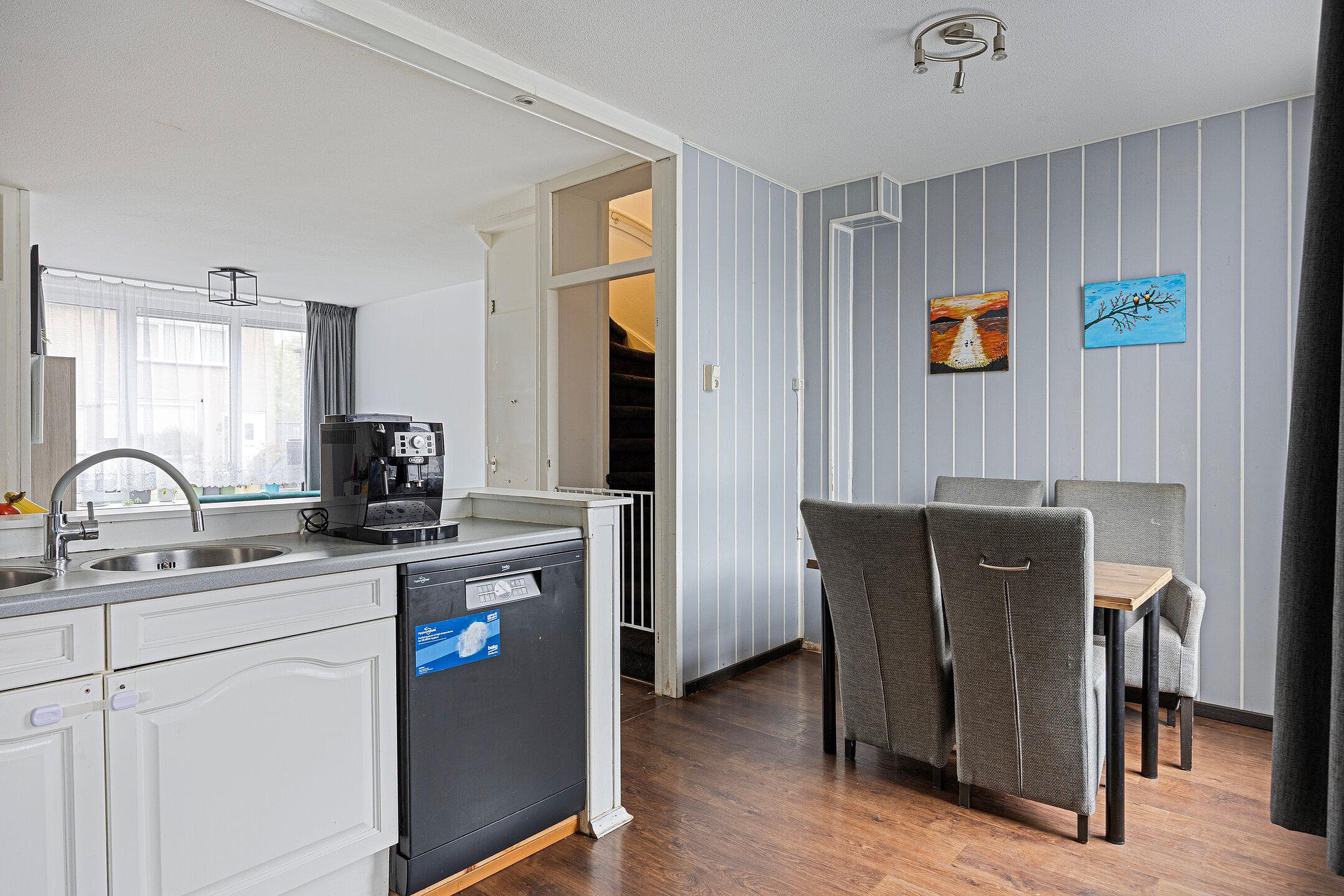 Entree/hal met meterkast en toilet. De woonkamer is voorzien van veel lichtinval, een trapkast, trapopgang en de keukenopstelling met diverse inbouwapparatuur, o.a. een vaatwasmachine, koelkast, gaskookplaat en een afzuigkap. Via de bijkeuken bereikt u de achtertuin.