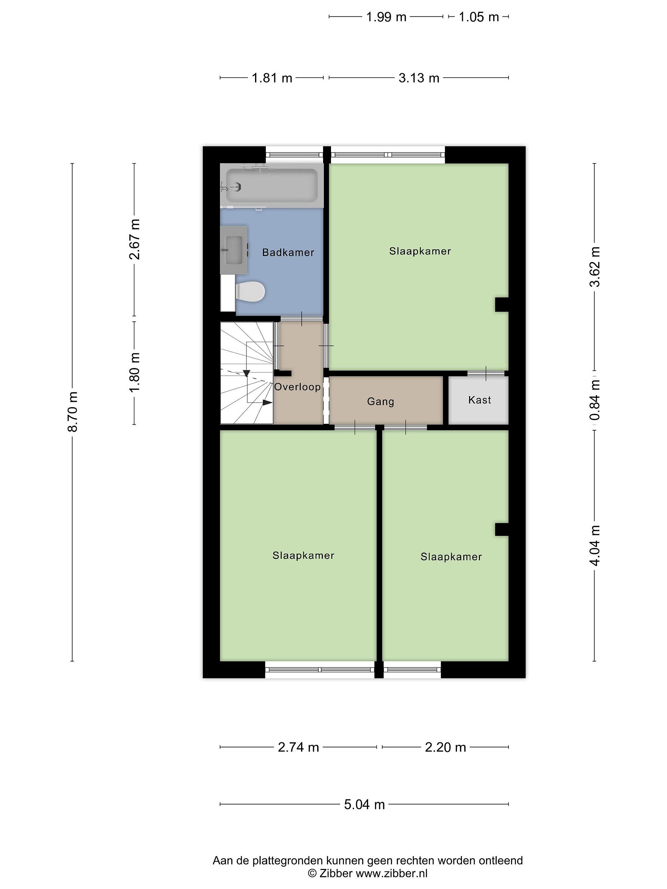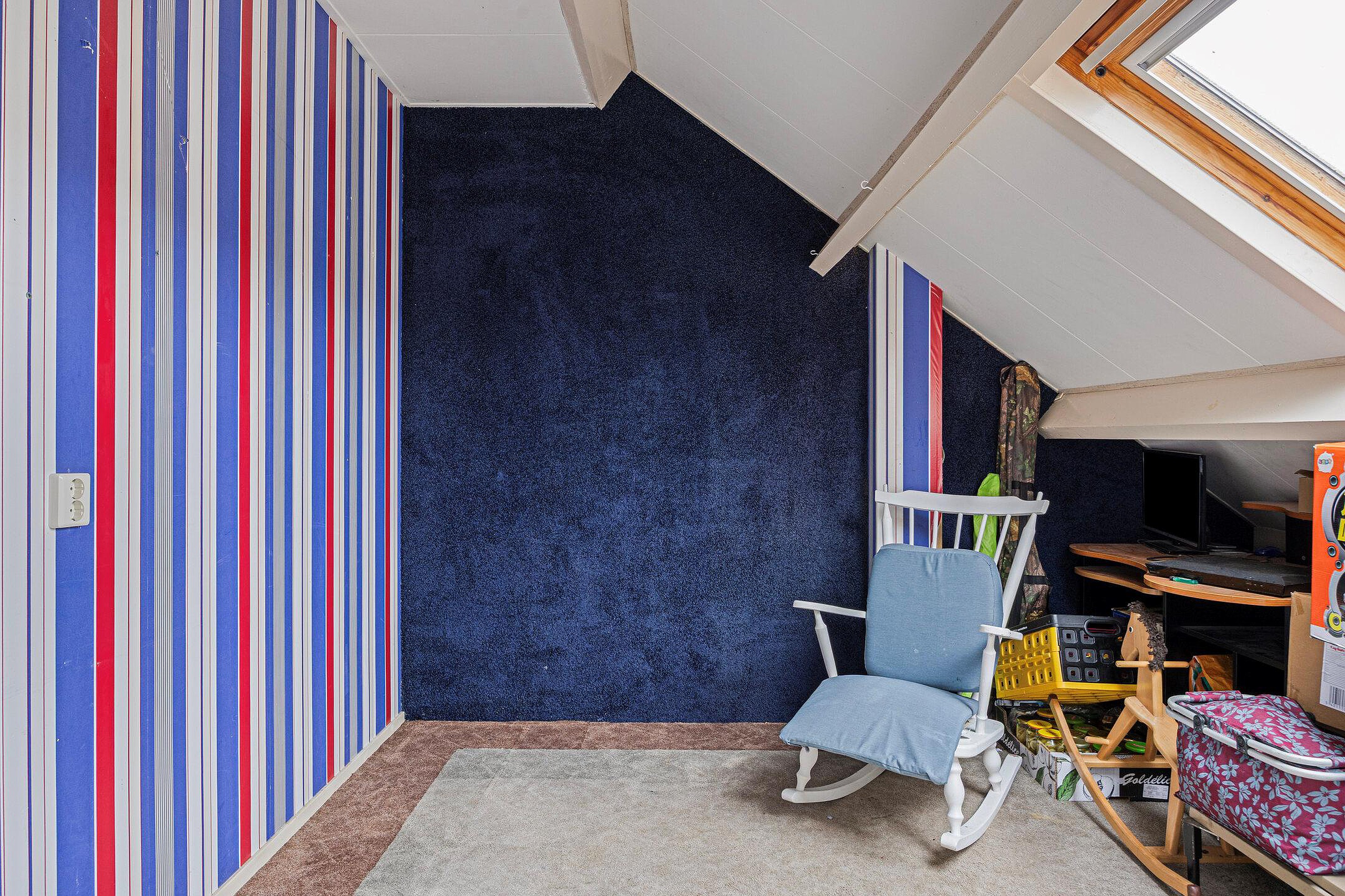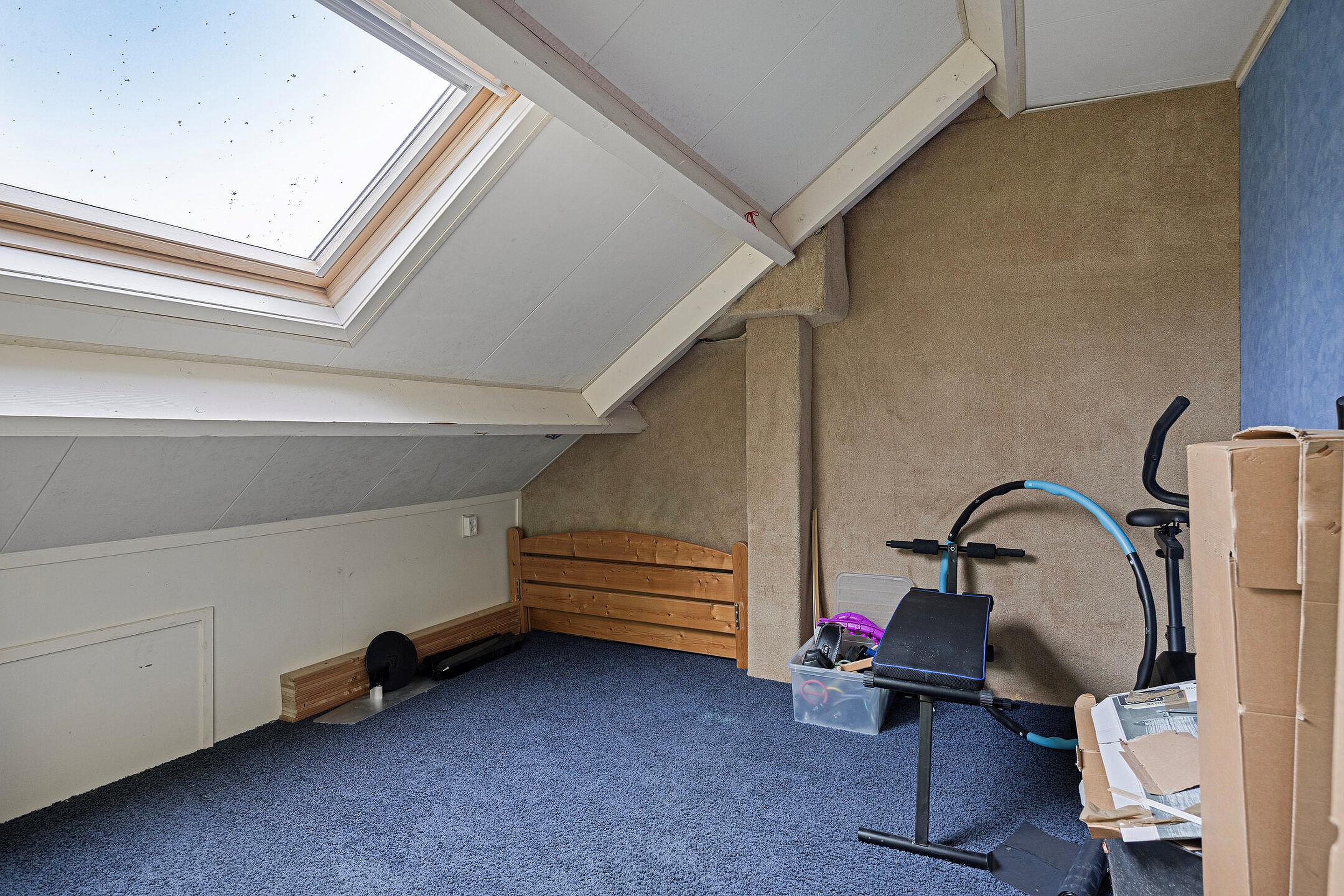 Overloop met dakraam en 2 slaapkamers, beide voorzien van een dakraam. Via de overloop is er een kleine vliering bereikbaar met losse trap.
