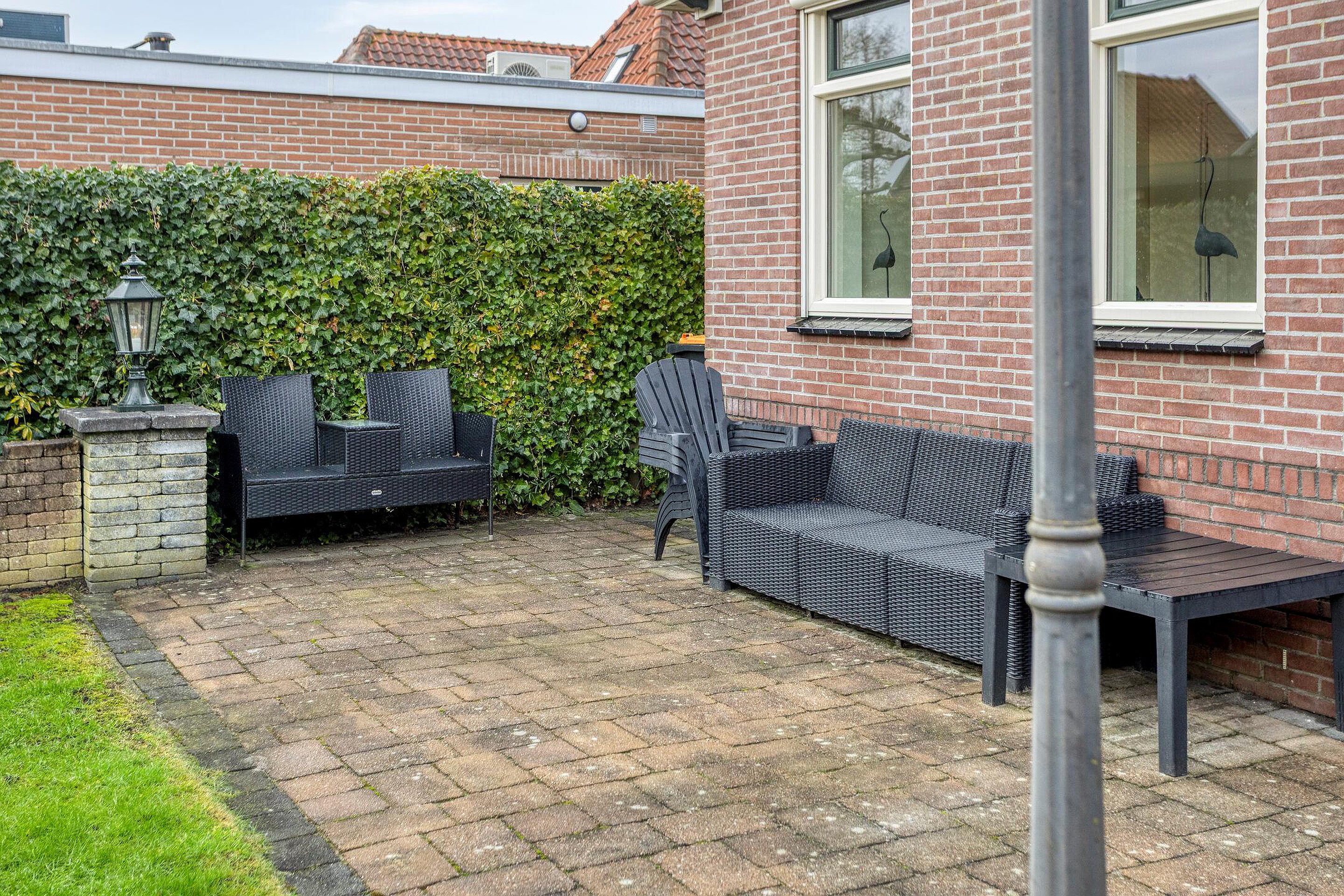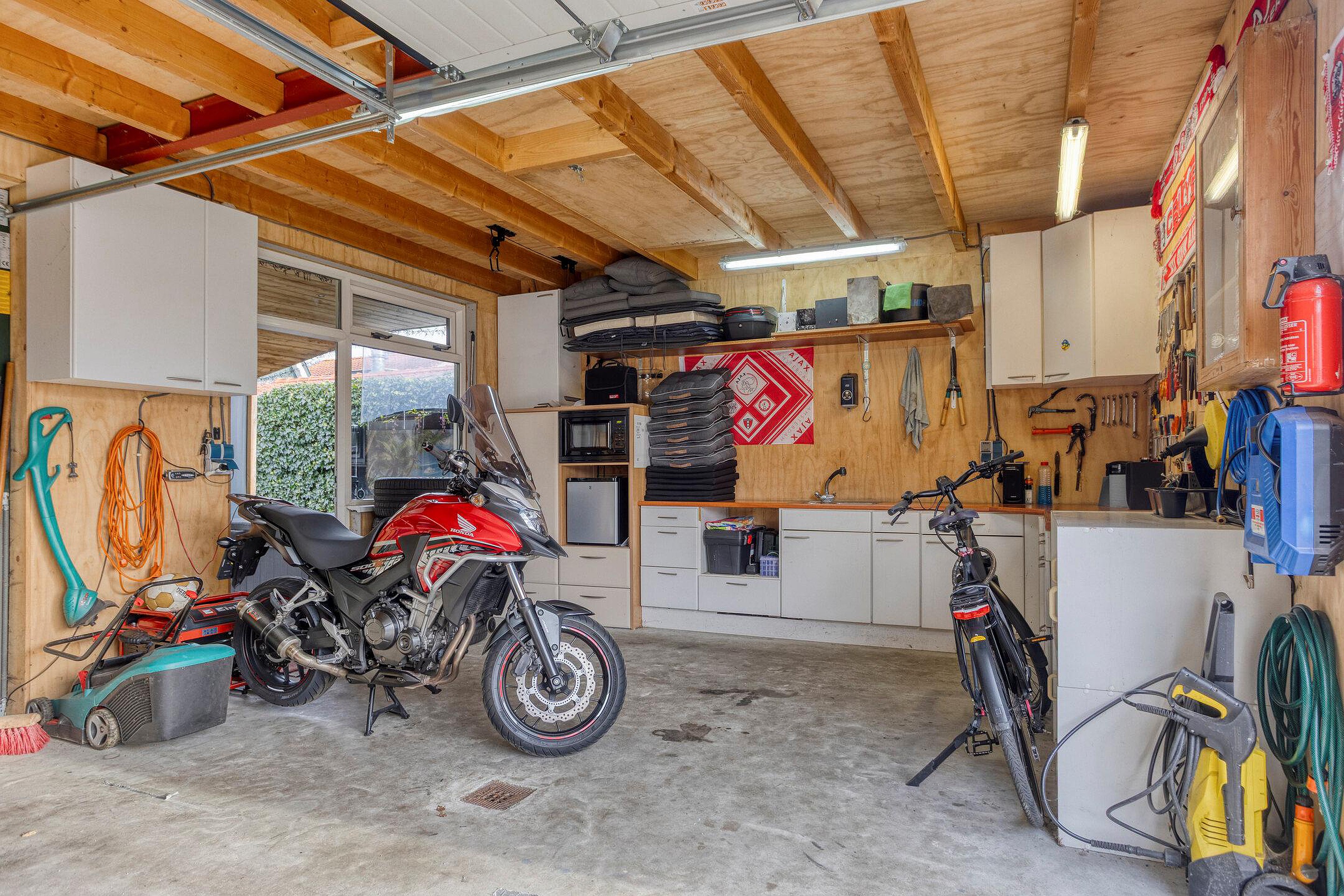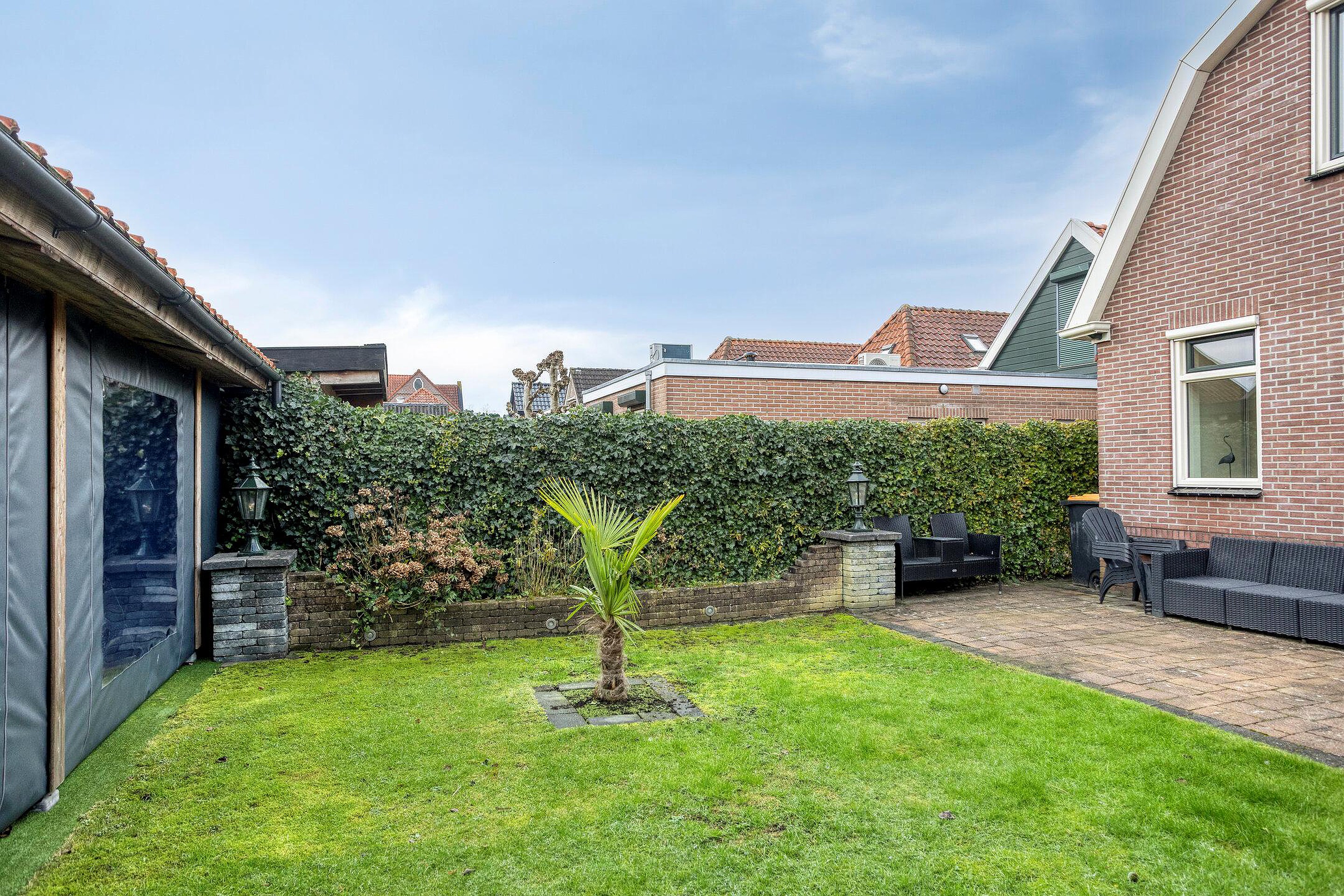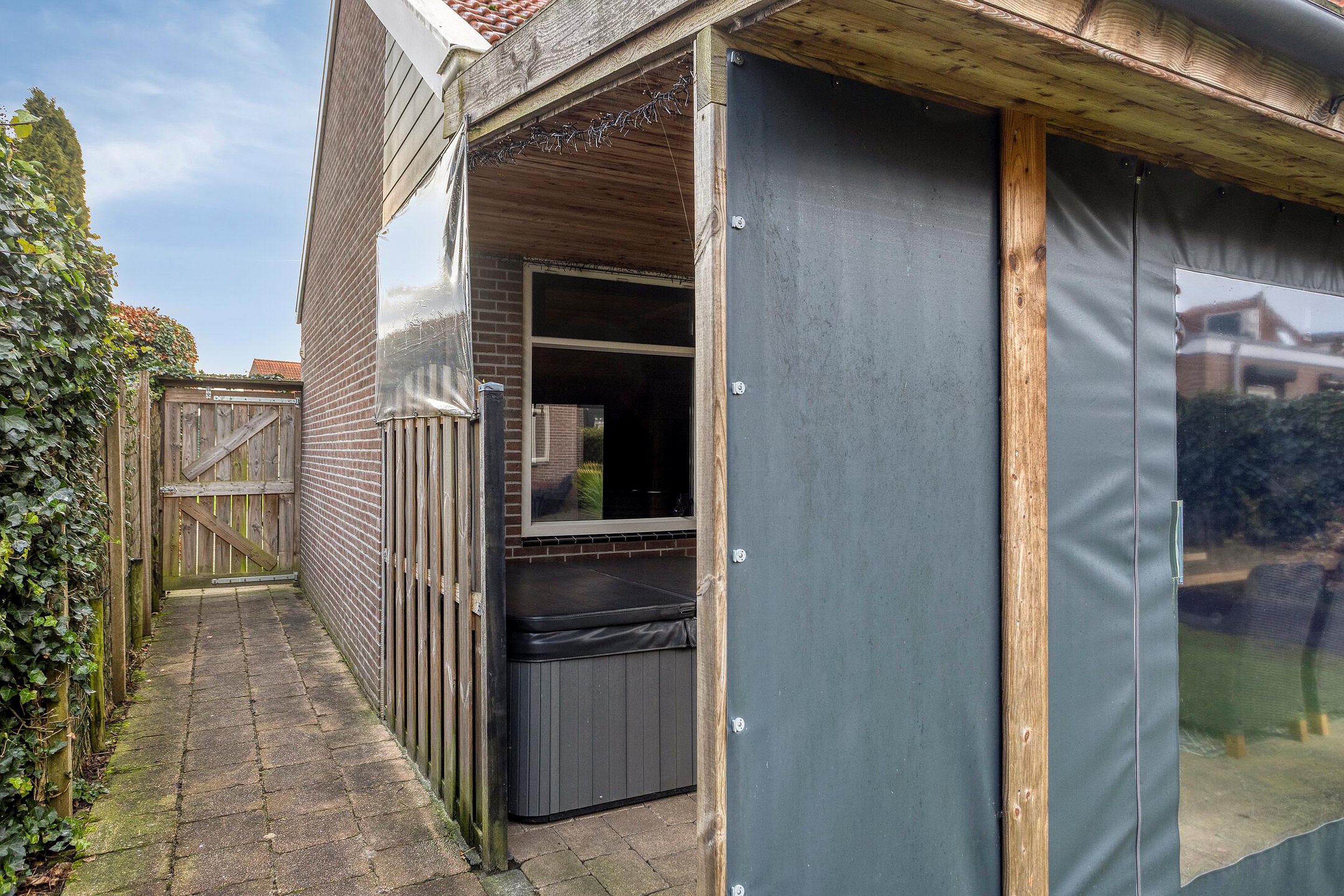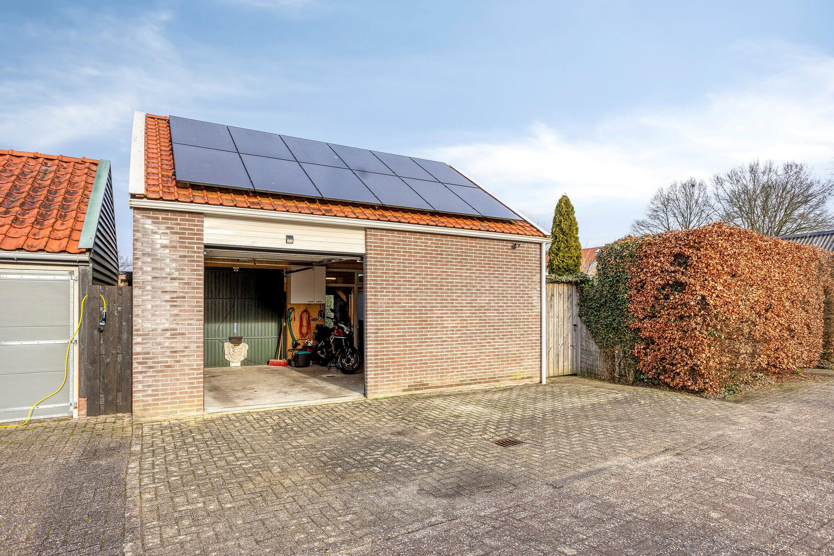 - De woning beschikt over een achtertuin met o.a. een overdekt terras, een achterom en een garage met zolder.